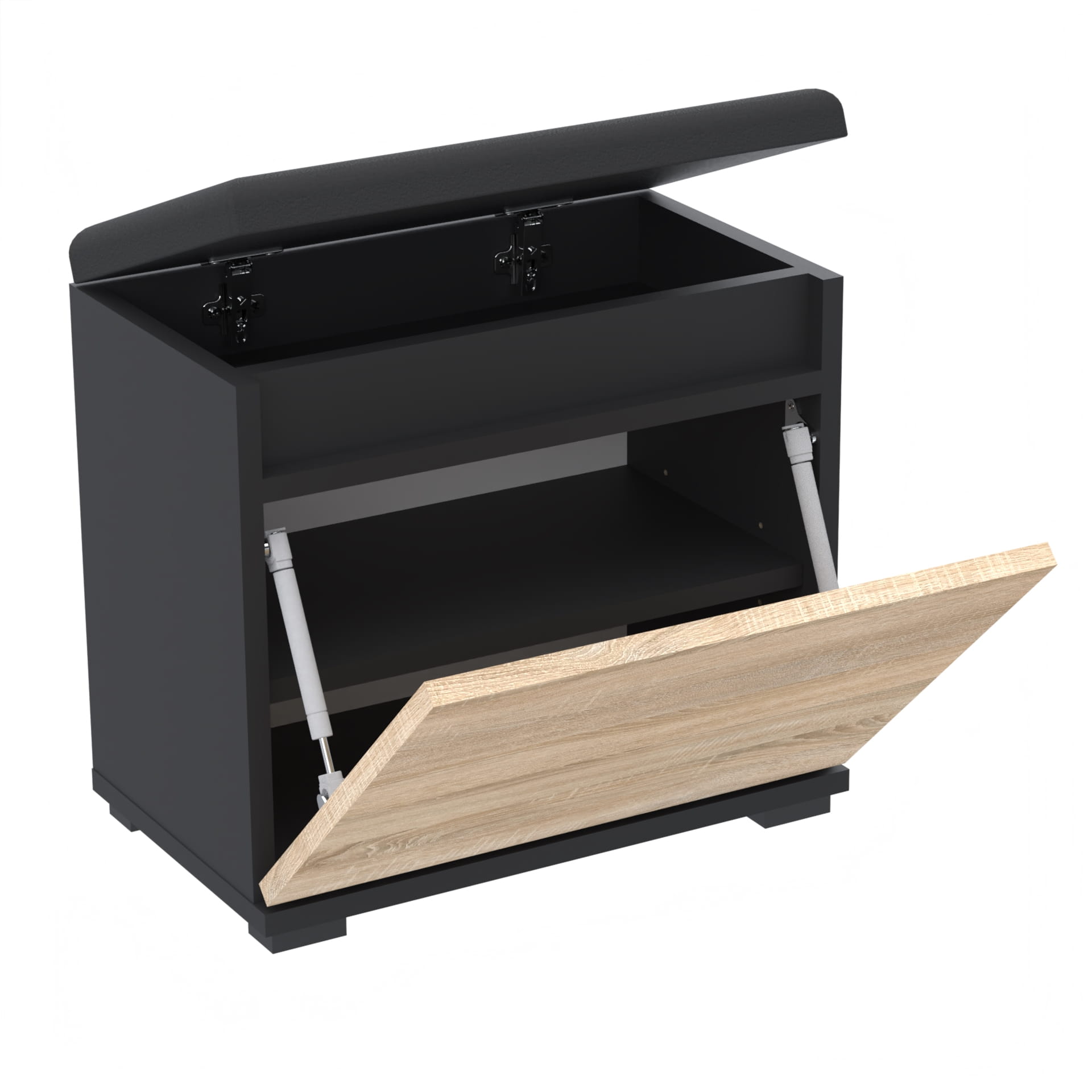 Szafka na buty z siedziskiem to doskonałe połączenie funkcjonalności i wygody. Wyprodukowana w Polsce, doskonale wpasuje się w styl każdego przedpokoju. Siedzisko, obite miękkim, wysokiej jakości materiałem, zapewnia komfort podczas zakładania butów.