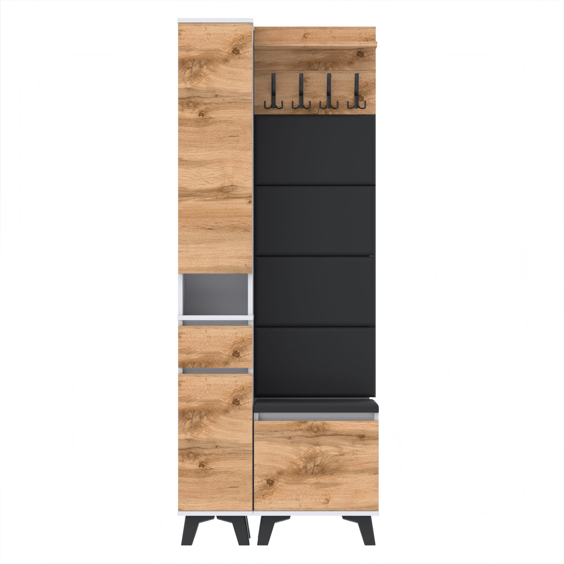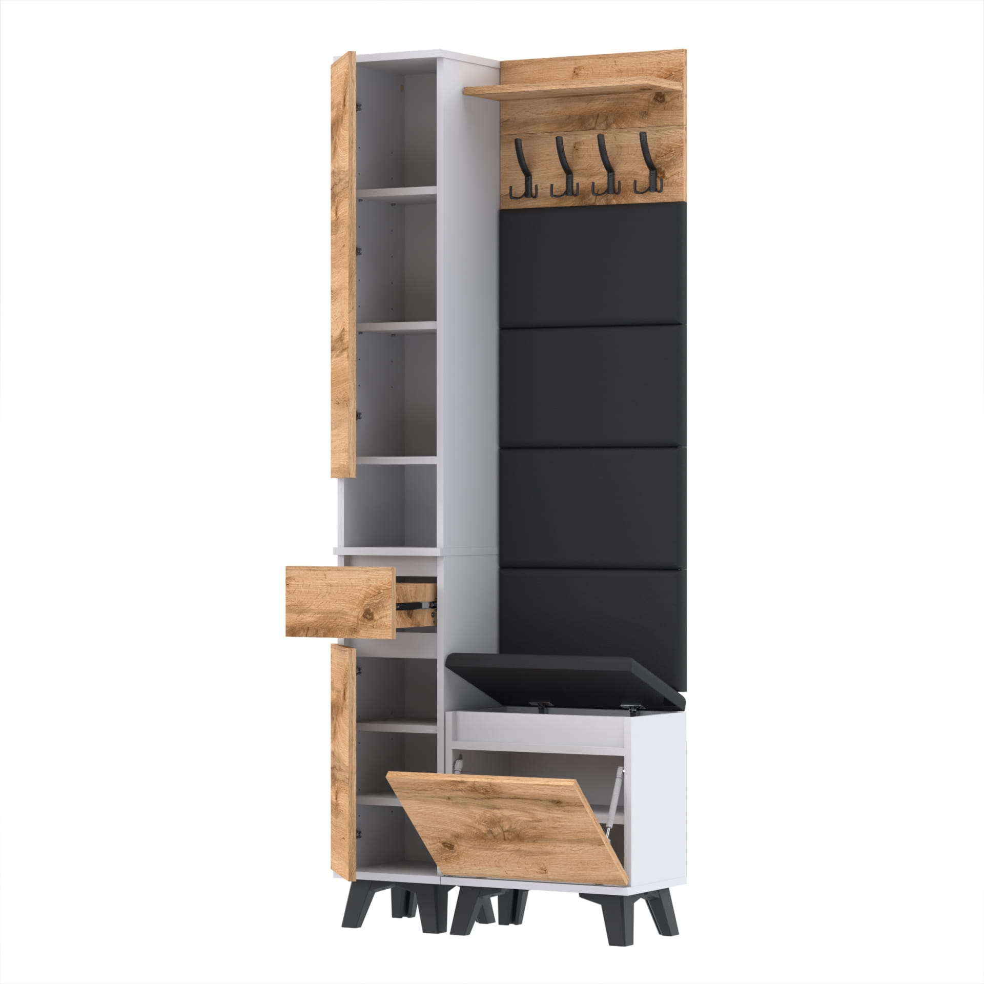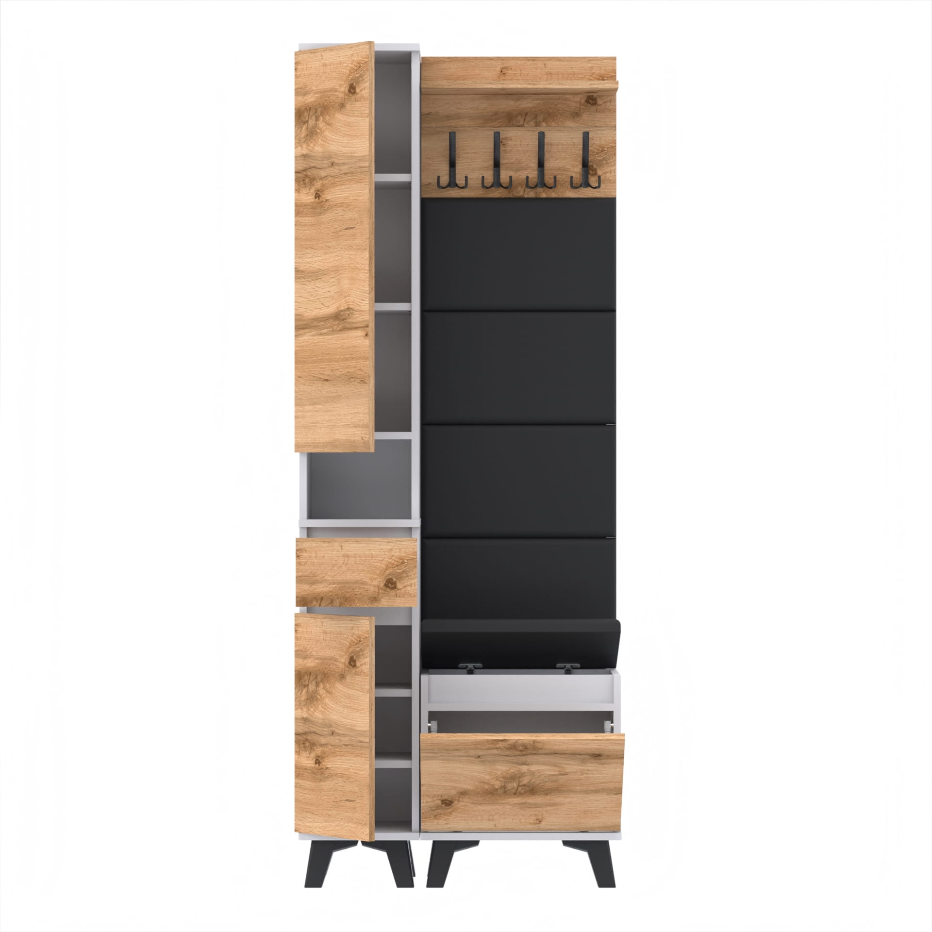 Szafka na buty jest nie tylko wygodna, ale także praktyczna - wewnątrz znajduje się półka, która pozwala na przechowywanie większej ilości obuwia. Dodatkowo, szafka jest wyposażona w schowek na przybory, dzięki czemu wszystko, czego potrzebujesz, jest zawsze pod ręką.