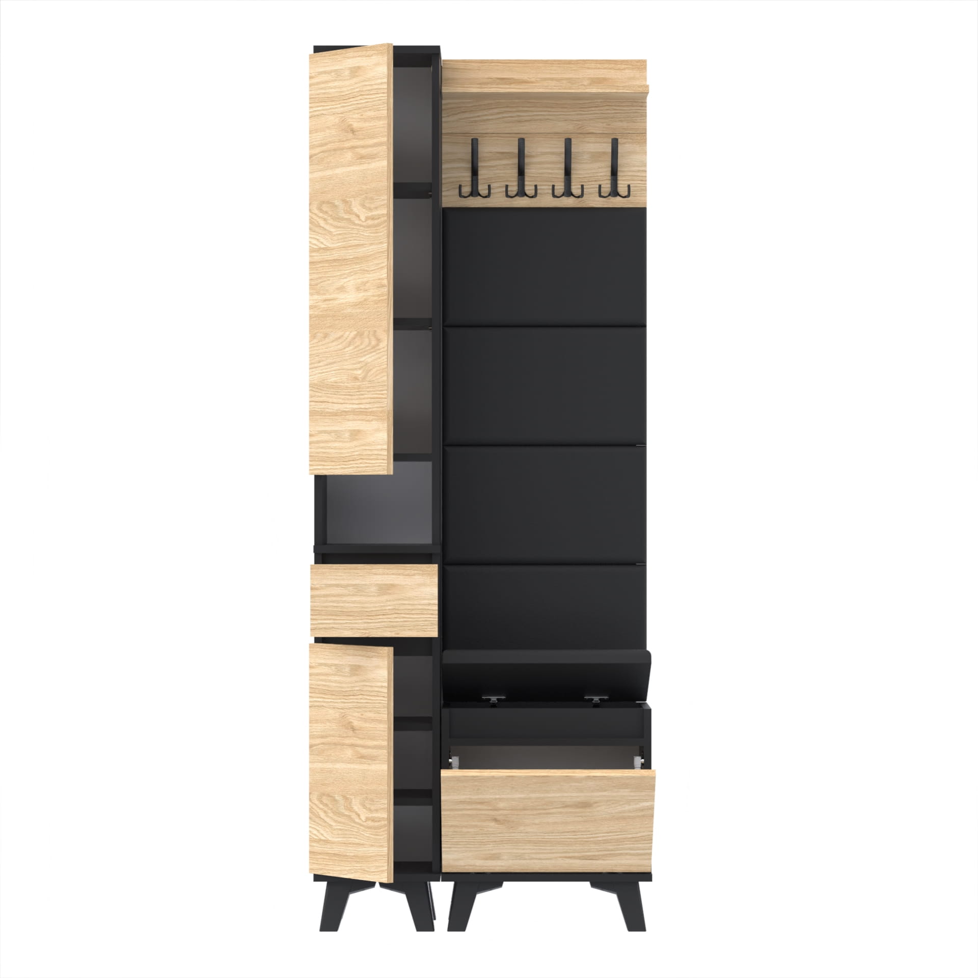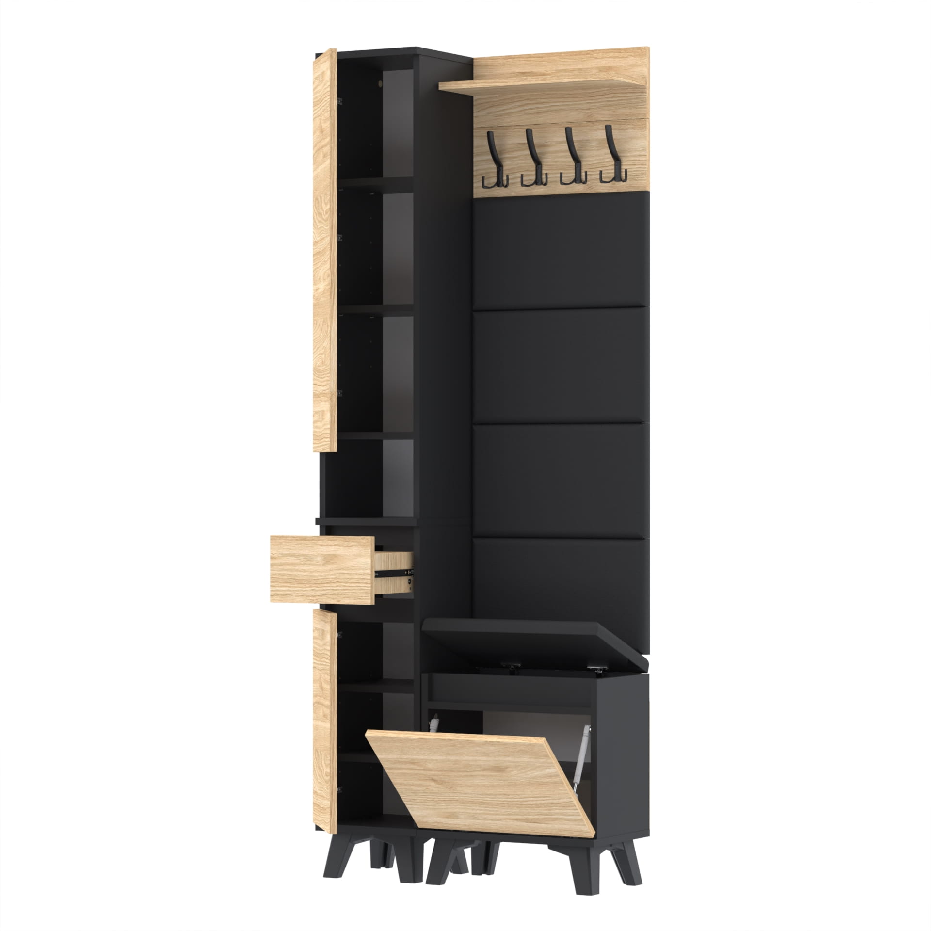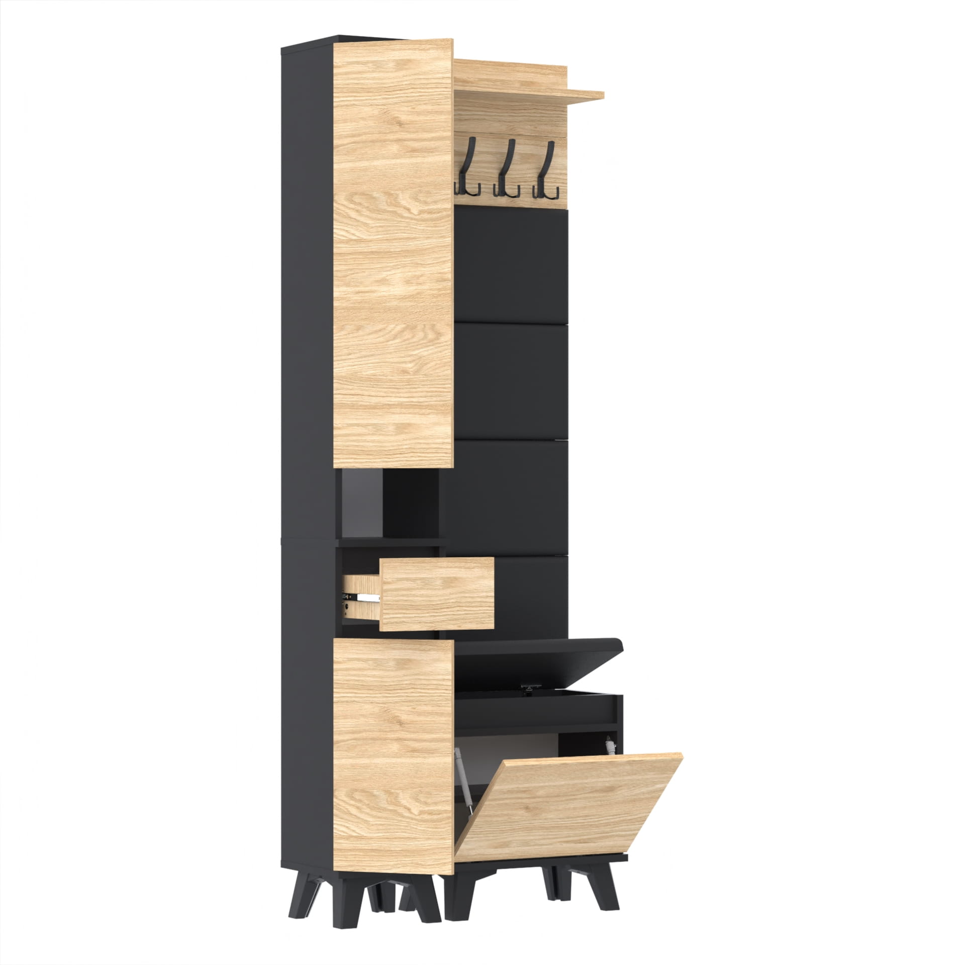 Szafka na buty jest nie tylko wygodna, ale także praktyczna - wewnątrz znajduje się półka, która pozwala na przechowywanie większej ilości obuwia. Dodatkowo, szafka jest wyposażona w schowek na przybory, dzięki czemu wszystko, czego potrzebujesz, jest zawsze pod ręką.