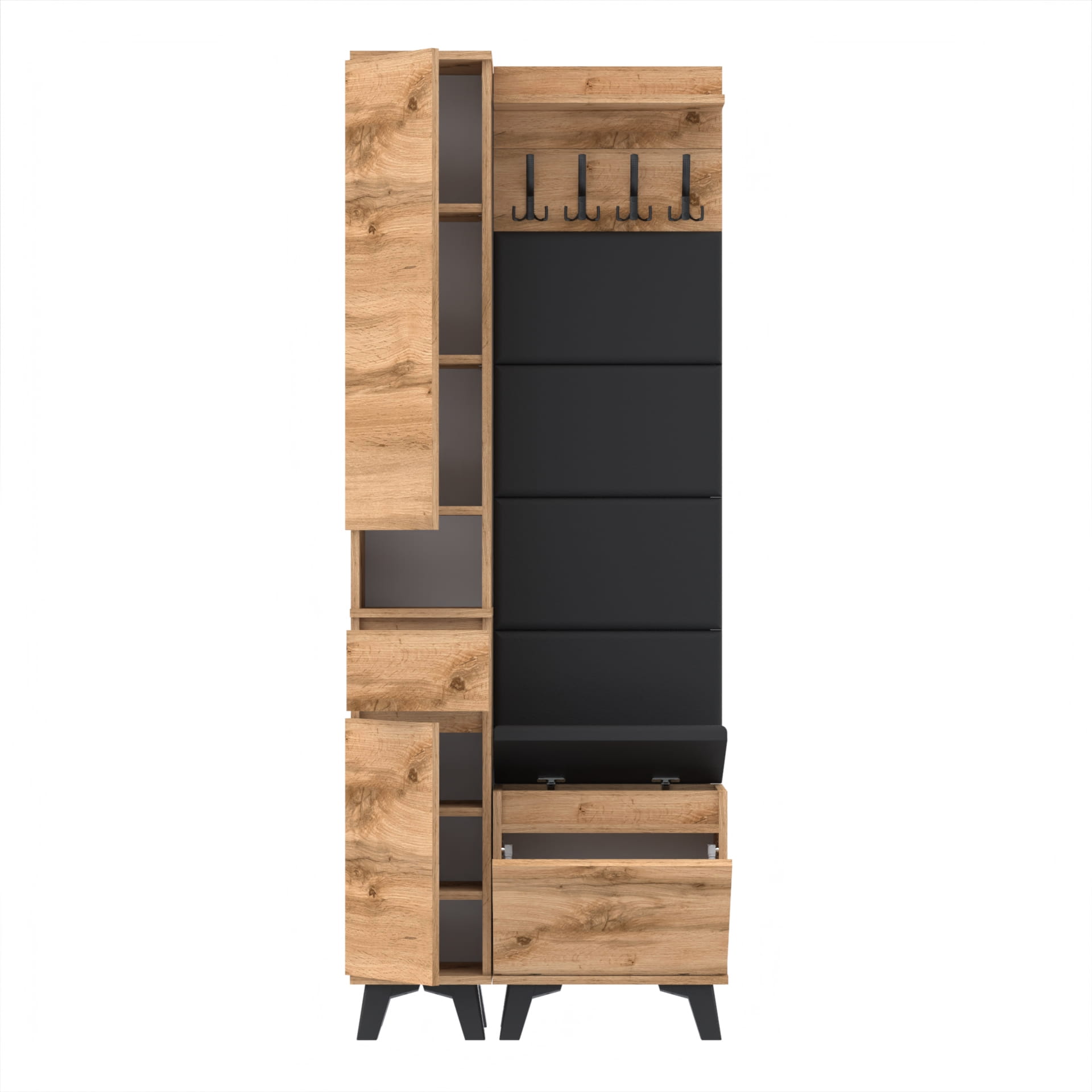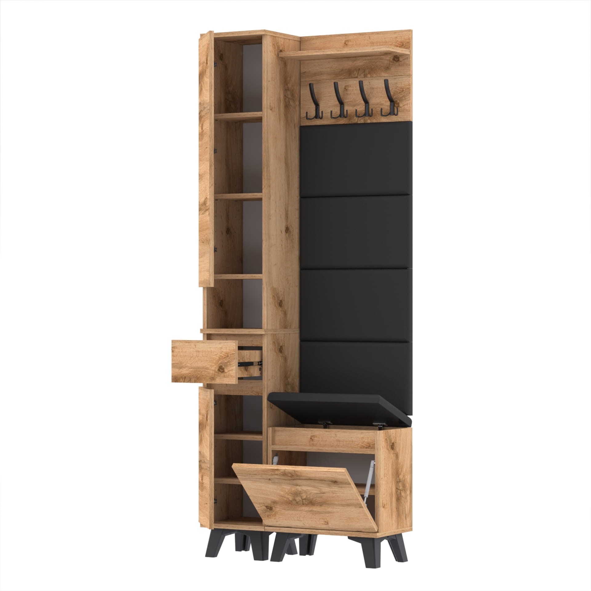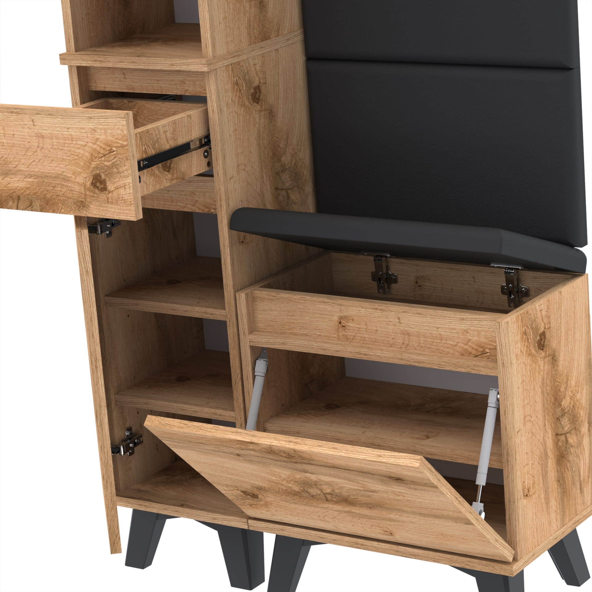 Szafka na buty jest nie tylko wygodna, ale także praktyczna - wewnątrz znajduje się półka, która pozwala na przechowywanie większej ilości obuwia. Dodatkowo, szafka jest wyposażona w schowek na przybory, dzięki czemu wszystko, czego potrzebujesz, jest zawsze pod ręką.