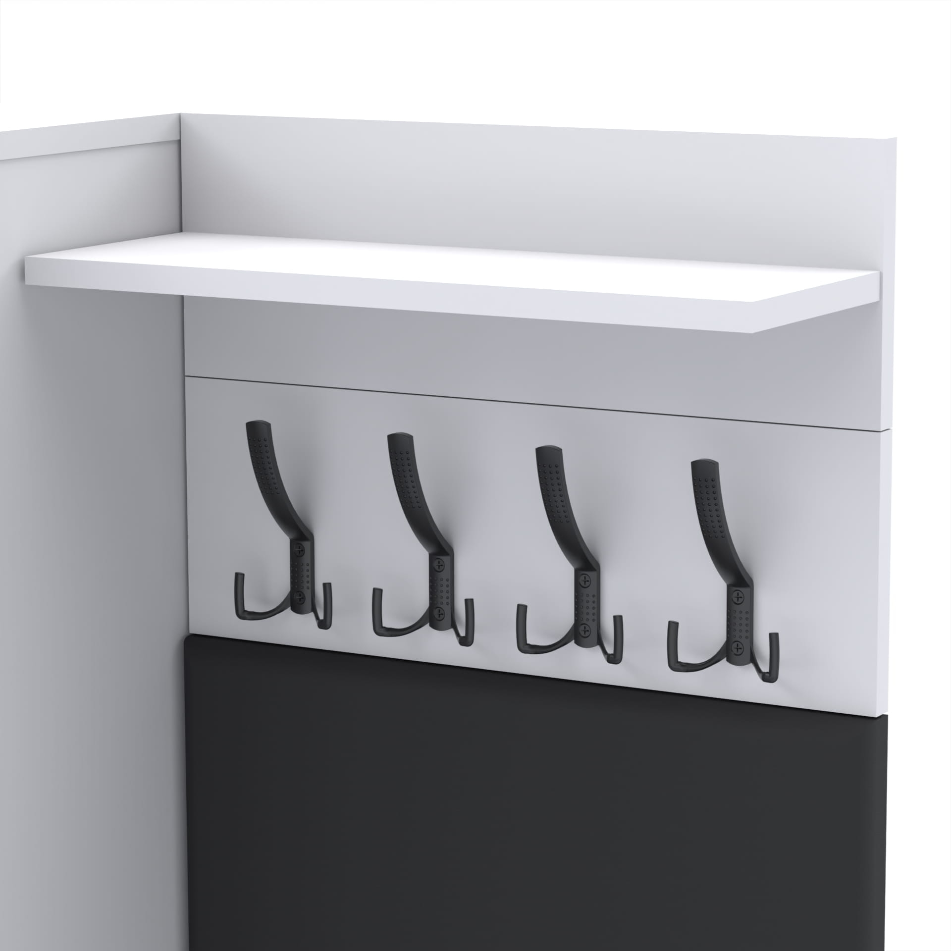 Wieszak składa się z 2 części: wieszak i półka. Płyta tylna wieszaka oraz półki mają po 18cm wysokości.