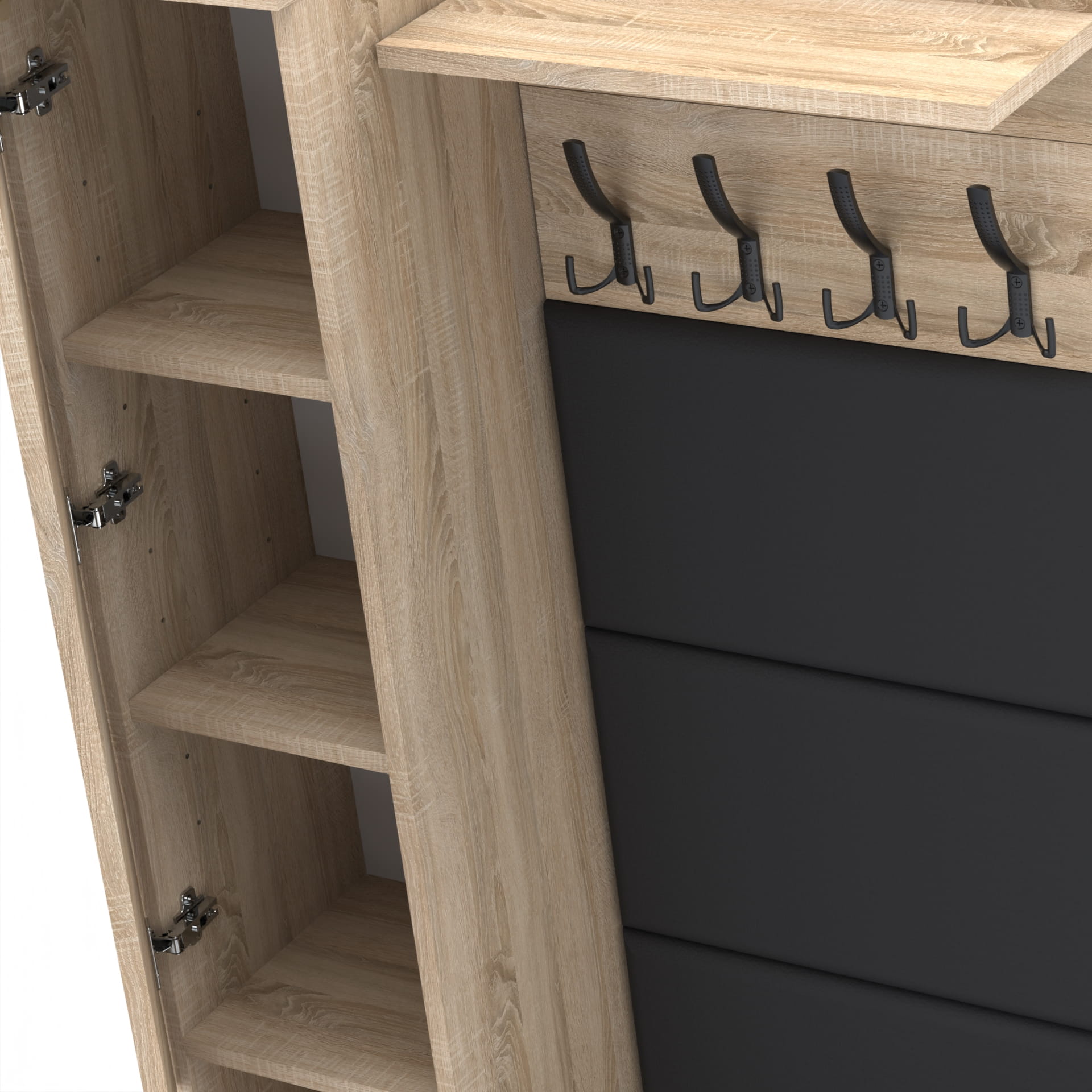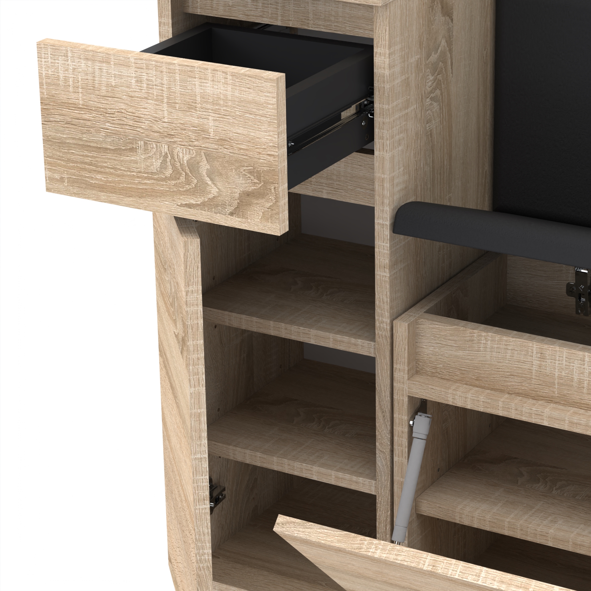 Szafka na buty jest nie tylko wygodna, ale także praktyczna - wewnątrz znajduje się półka, która pozwala na przechowywanie większej ilości obuwia. Dodatkowo, szafka jest wyposażona w schowek na przybory, dzięki czemu wszystko, czego potrzebujesz, jest zawsze pod ręką.