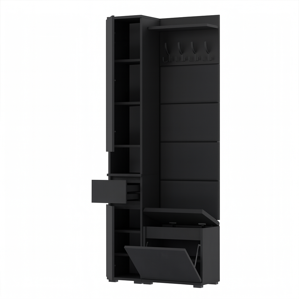 Szafka na buty jest nie tylko wygodna, ale także praktyczna - wewnątrz znajduje się półka, która pozwala na przechowywanie większej ilości obuwia. Dodatkowo, szafka jest wyposażona w schowek na przybory, dzięki czemu wszystko, czego potrzebujesz, jest zawsze pod ręką.