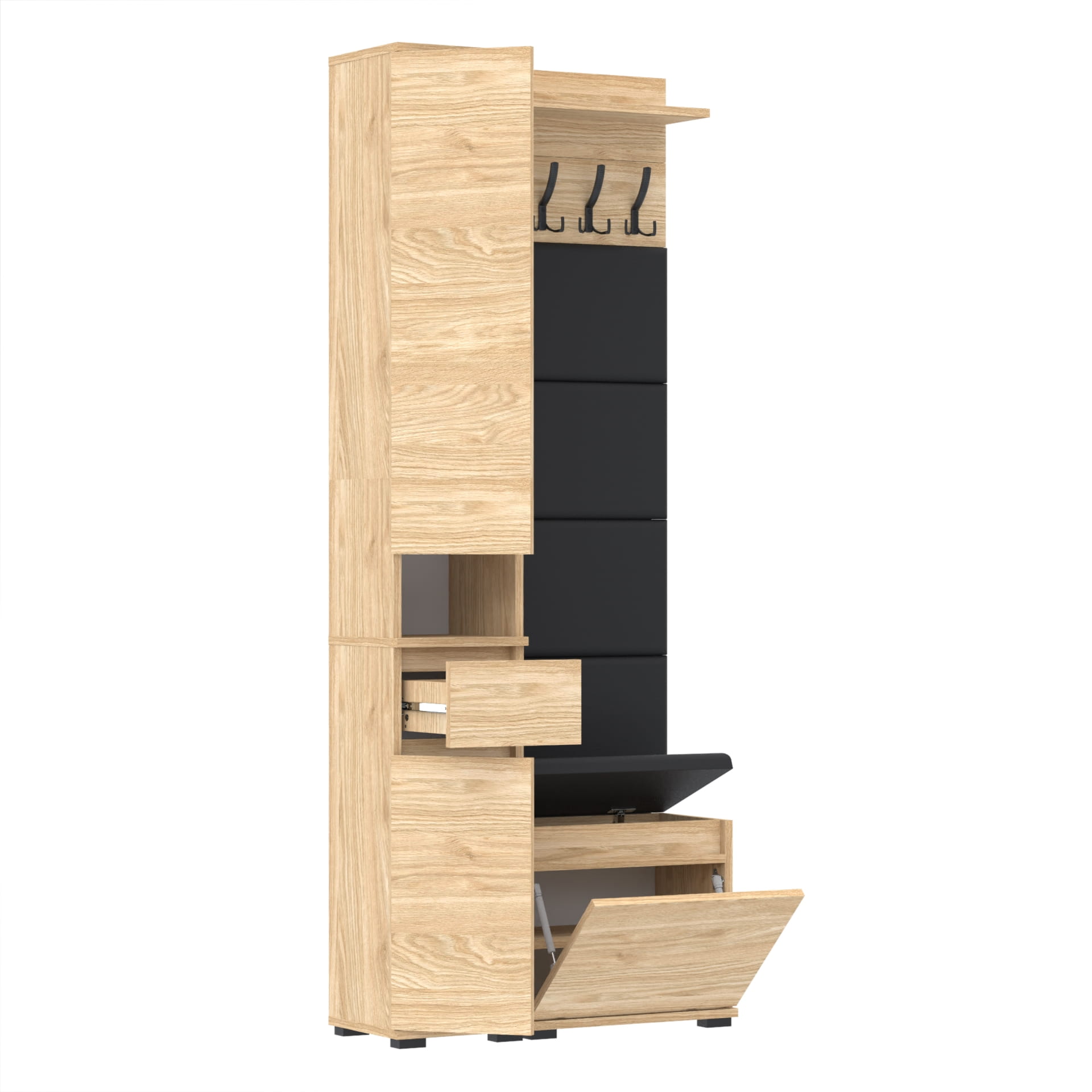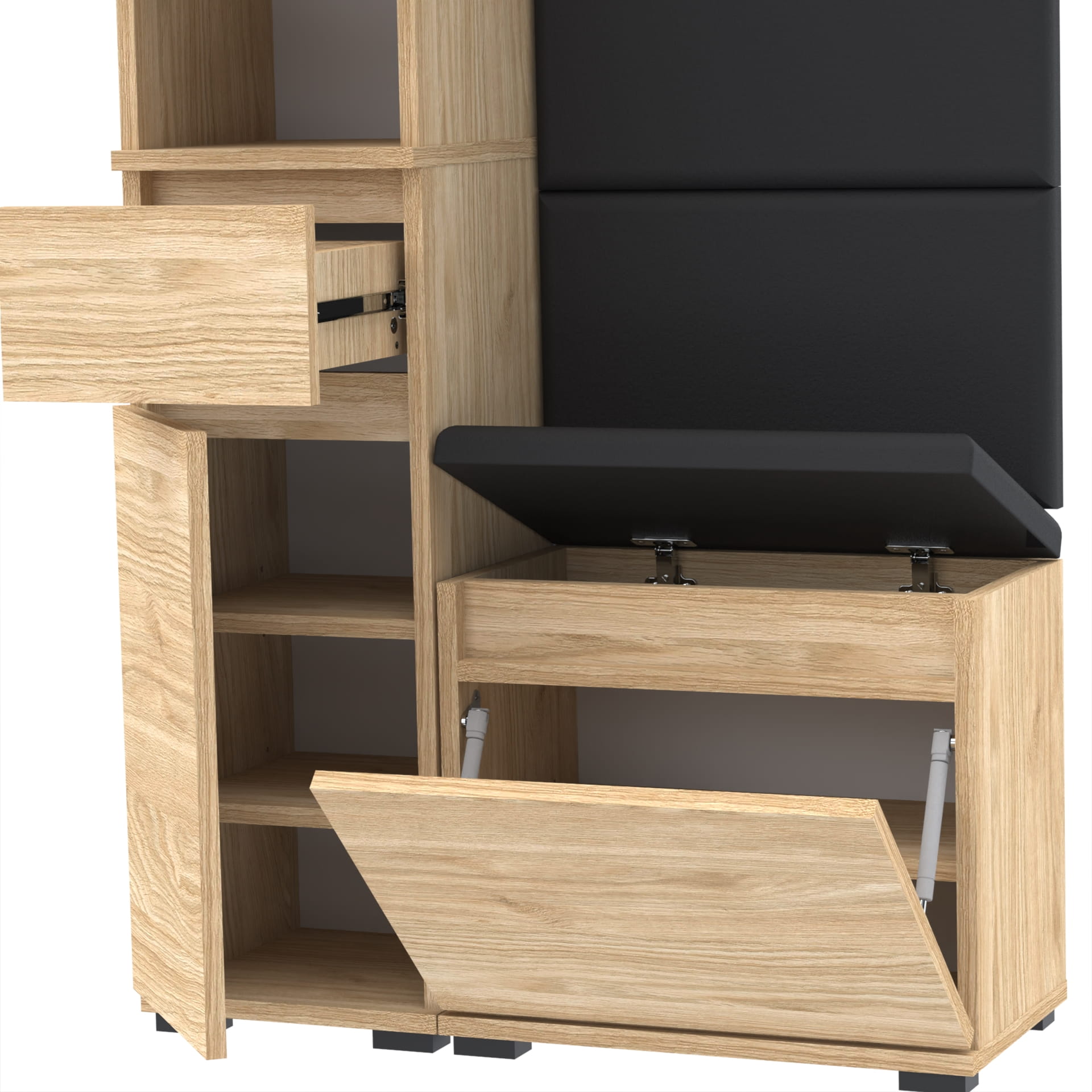 Szafka na buty jest nie tylko wygodna, ale także praktyczna - wewnątrz znajduje się półka, która pozwala na przechowywanie większej ilości obuwia. Dodatkowo, szafka jest wyposażona w schowek na przybory, dzięki czemu wszystko, czego potrzebujesz, jest zawsze pod ręką.
