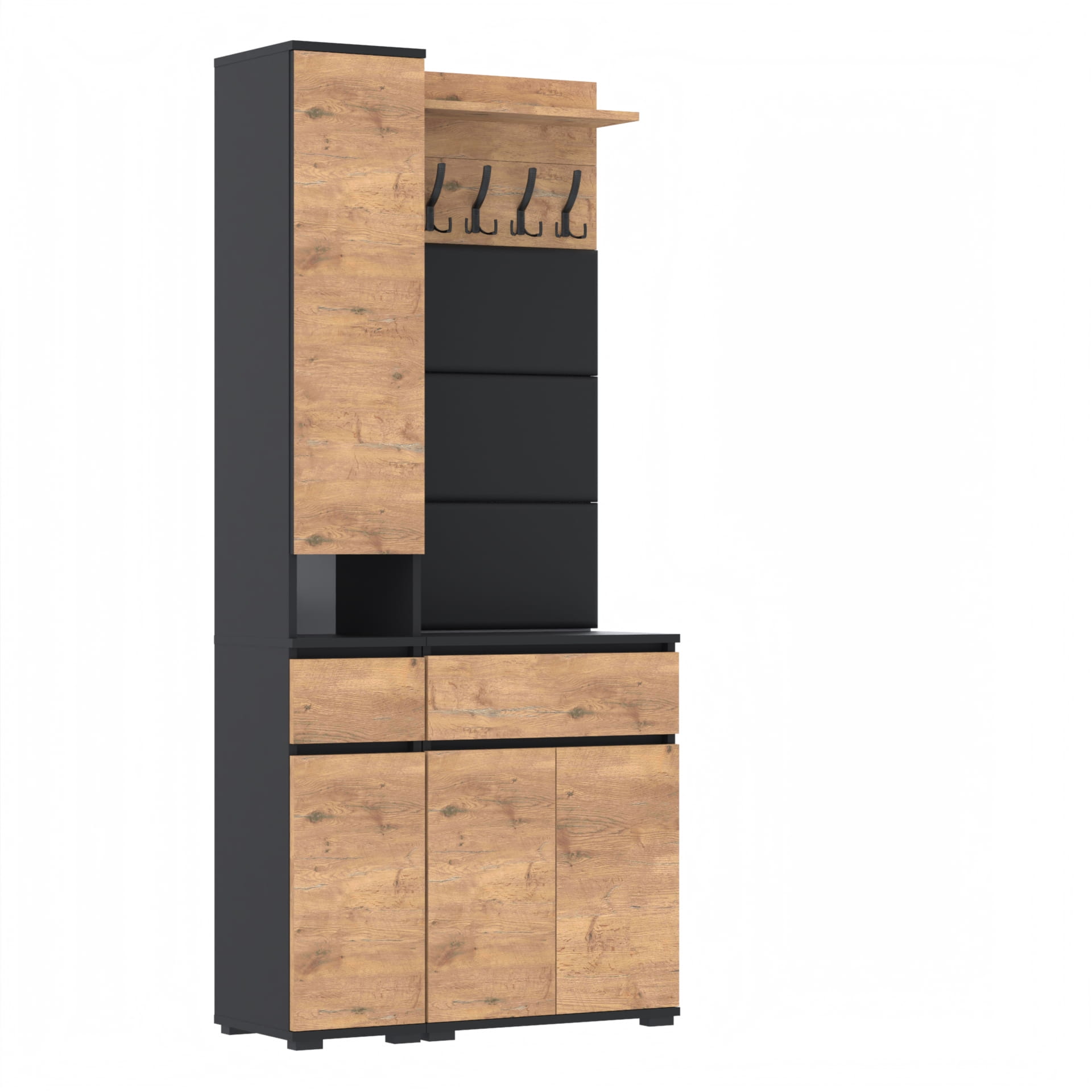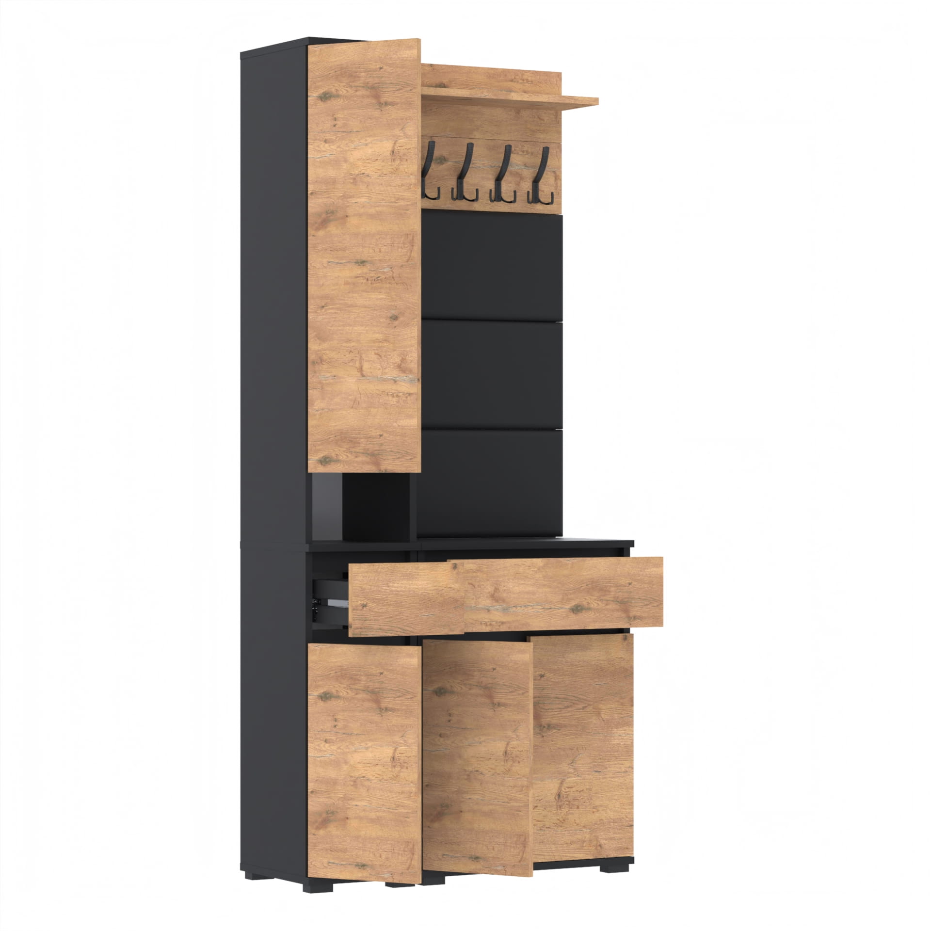 Ten unikalny zestaw mebli doskonale sprawdzi się w każdym przedpokoju. Wyprodukowany z najwyższą starannością w Polsce, łączy w sobie funkcjonalność, jakość i elegancki design.