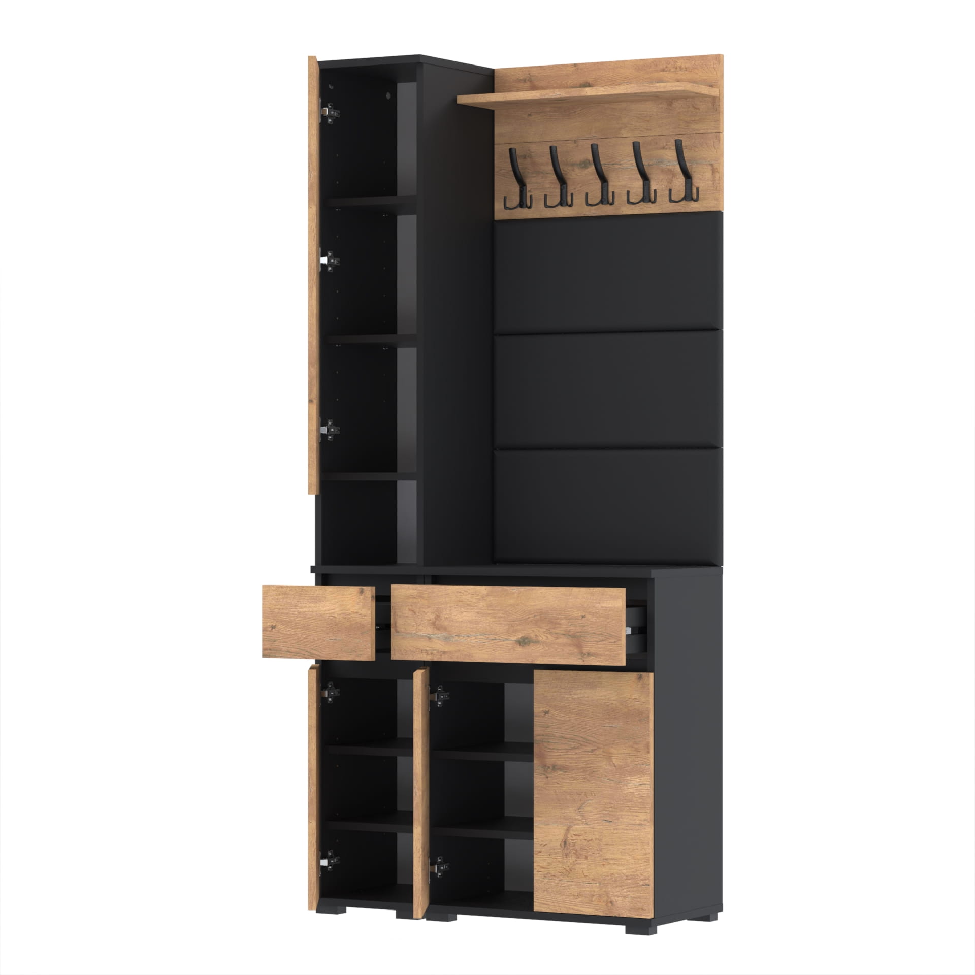 Ciesz się wygodą i stylem, który wprowadzi do Twojego domu ten kompleksowy zestaw mebli. Idealne do przechowywania ubrań, obuwia i innych przedmiotów codziennego użytku, te meble dodadzą elegancji i funkcjonalności każdemu przedpokoju.