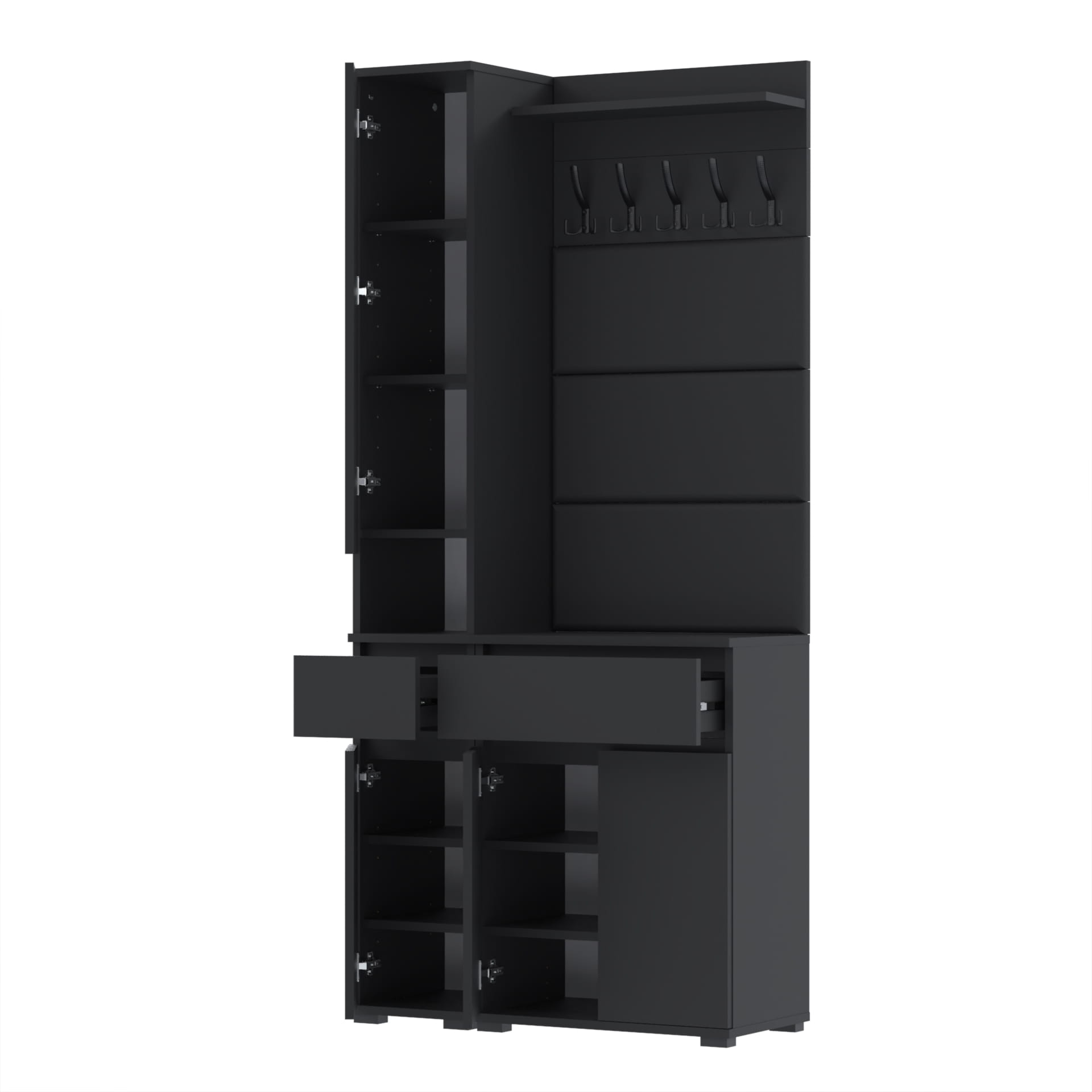 Ciesz się wygodą i stylem, który wprowadzi do Twojego domu ten kompleksowy zestaw mebli. Idealne do przechowywania ubrań, obuwia i innych przedmiotów codziennego użytku, te meble dodadzą elegancji i funkcjonalności każdemu przedpokoju.