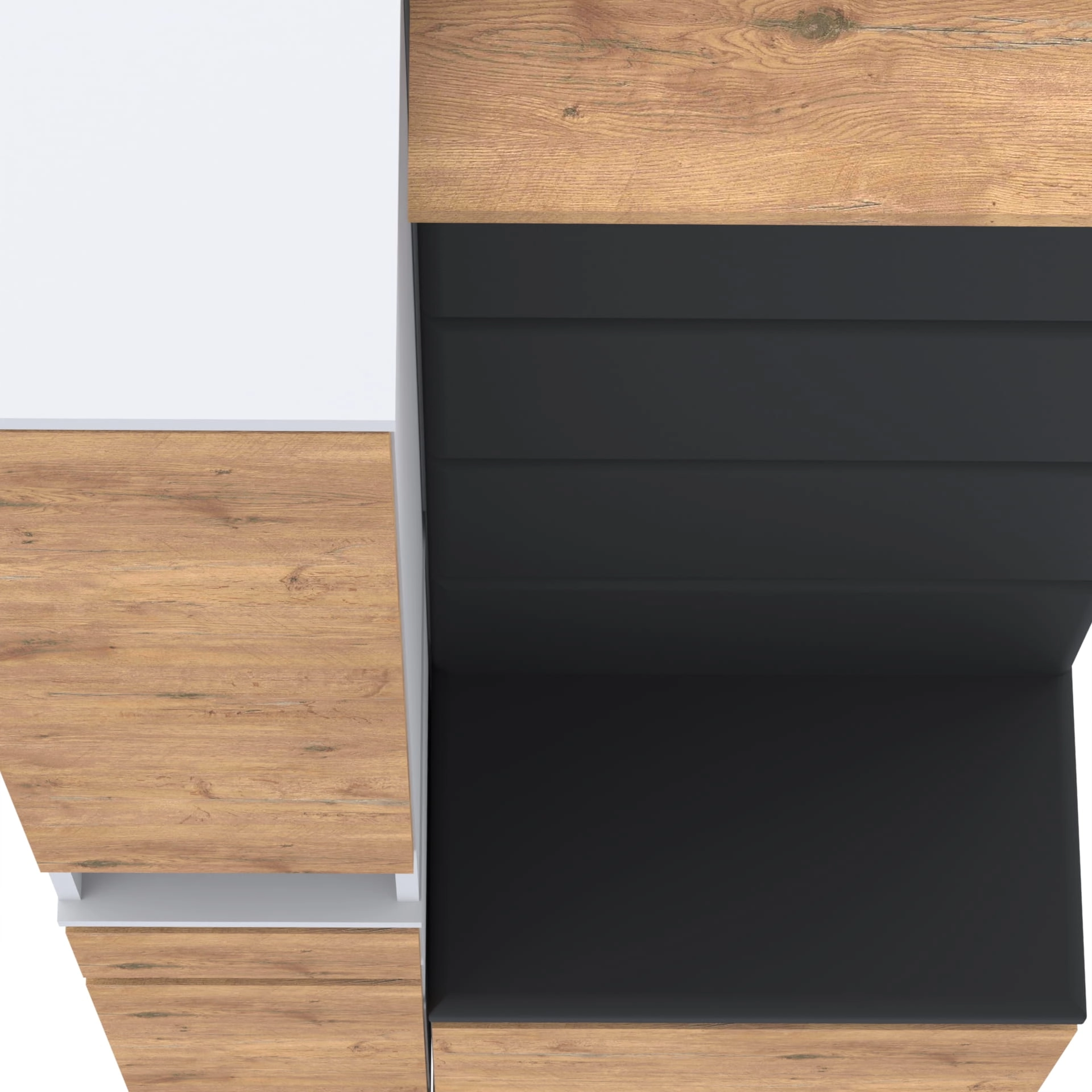 Wykonana jest z grubej, 18 mm płyty meblowej laminowanej, co gwarantuje jej trwałość i odporność na uszkodzenia. Brzegi szafki pokryte są twardym obrzeżem ABS, które jest odporne na uszkodzenia.