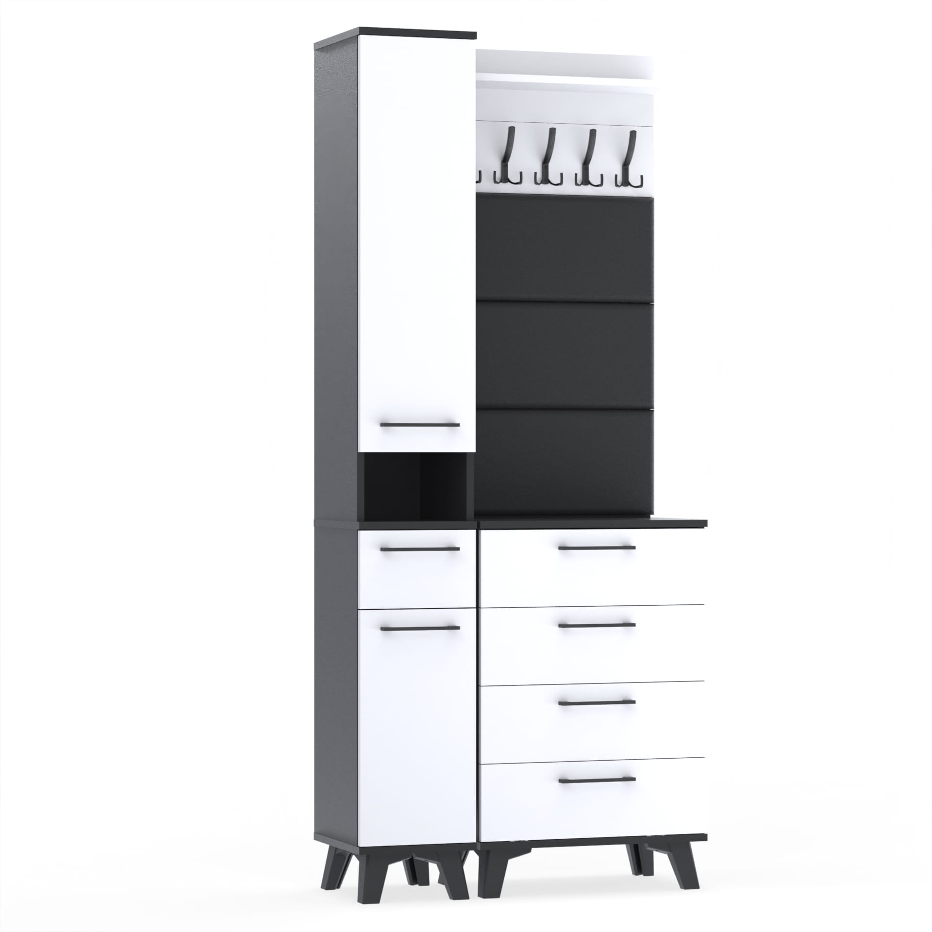 Ciesz się wygodą i stylem, który wprowadzi do Twojego domu ten kompleksowy zestaw mebli. Idealne do przechowywania ubrań, obuwia i innych przedmiotów codziennego użytku, te meble dodadzą elegancji i funkcjonalności każdemu przedpokoju.