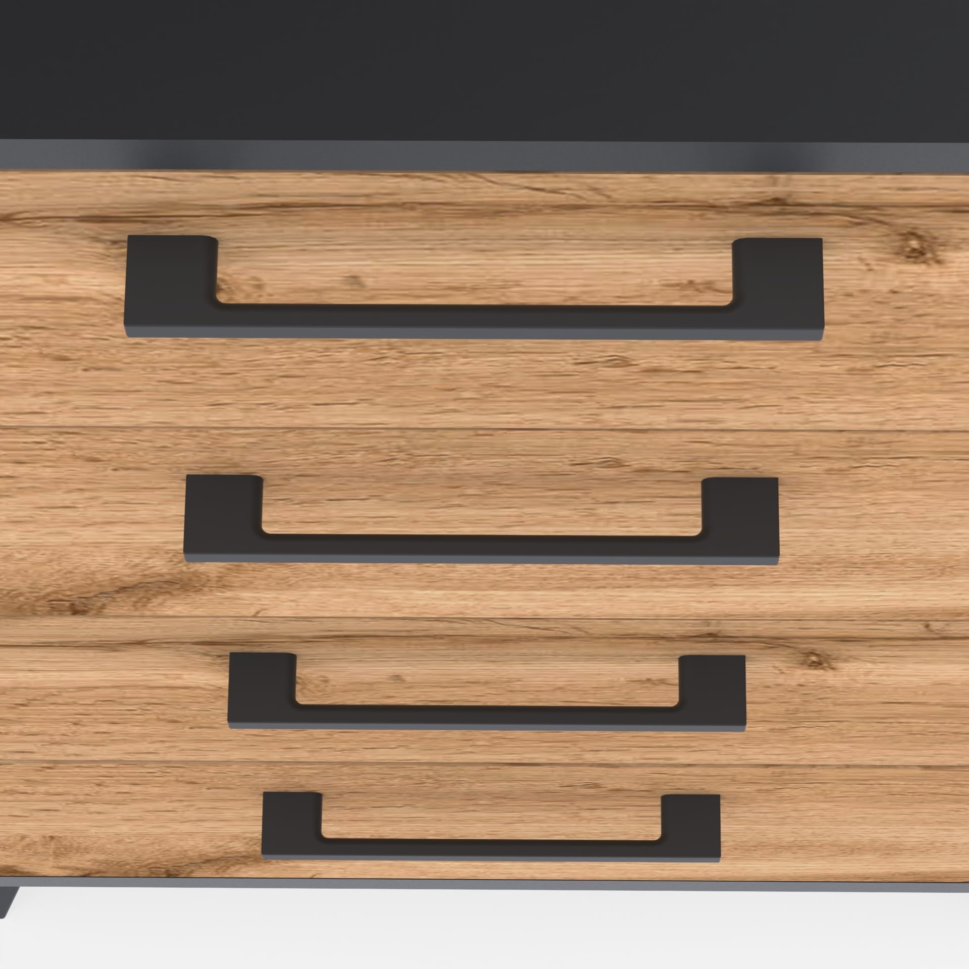 Co wyróżnia nasze meble? Szafki i komody z naszego zestawu posiadają szuflady z twardym dnem, które nie ugina się pod ciężarem przedmiotów. Dodatkowo, szuflady wyposażone są w prowadnice kulkowe, które są znacznie solidniejsze od standardowych prowadnic rolkowych.