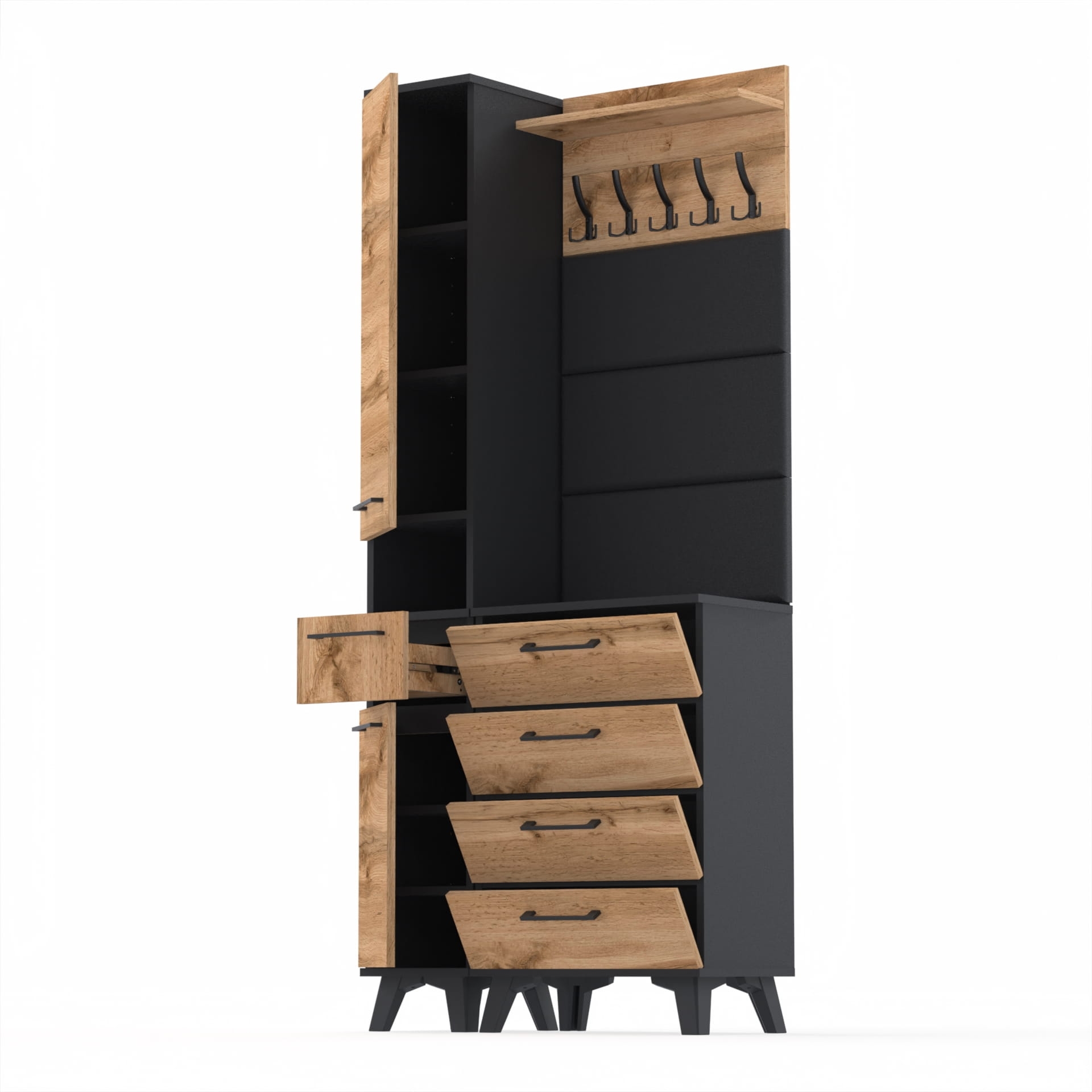 Ciesz się wygodą i stylem, który wprowadzi do Twojego domu ten kompleksowy zestaw mebli. Idealne do przechowywania ubrań, obuwia i innych przedmiotów codziennego użytku, te meble dodadzą elegancji i funkcjonalności każdemu przedpokoju.