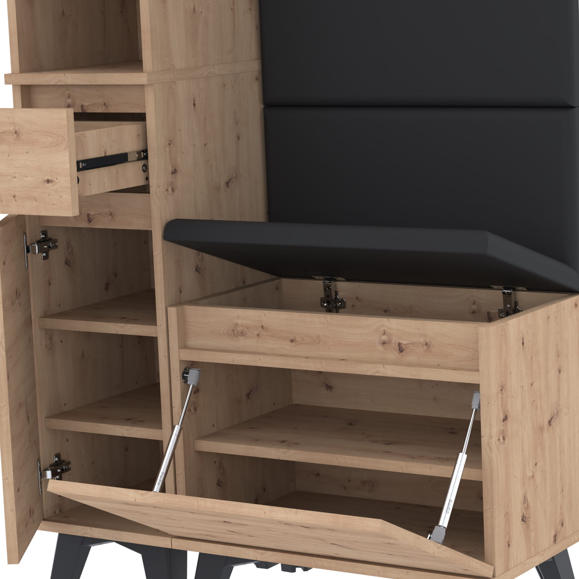 Szafka na buty z siedziskiem to doskonałe połączenie funkcjonalności i wygody. Wyprodukowana w Polsce, doskonale wpasuje się w styl każdego przedpokoju. Siedzisko, obite miękkim, wysokiej jakości materiałem, zapewnia komfort podczas zakładania butów.