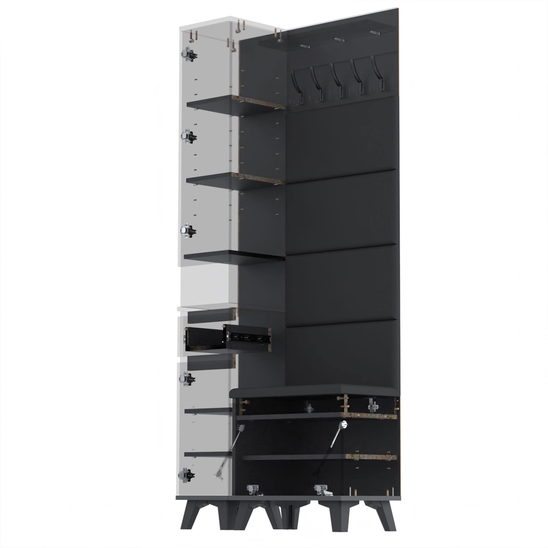 Szafka na buty jest nie tylko wygodna, ale także praktyczna - wewnątrz znajduje się półka, która pozwala na przechowywanie większej ilości obuwia. Dodatkowo, szafka jest wyposażona w schowek na przybory, dzięki czemu wszystko, czego potrzebujesz, jest zawsze pod ręką.