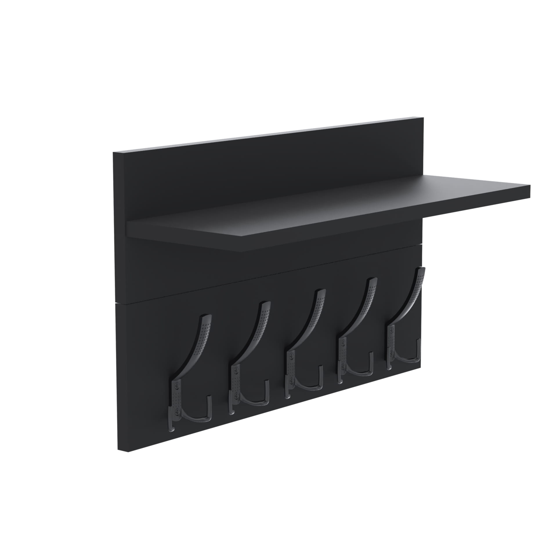 Na górze struktury znajduje się praktyczna półka o głębokości 18 cm, która jest idealna do przechowywania różnych przedmiotów. Półka nie tylko zapewnia dodatkową przestrzeń do przechowywania, ale także stanowi integralną część designu wieszaka, nadając mu ciekawy, nowoczesny wygląd.