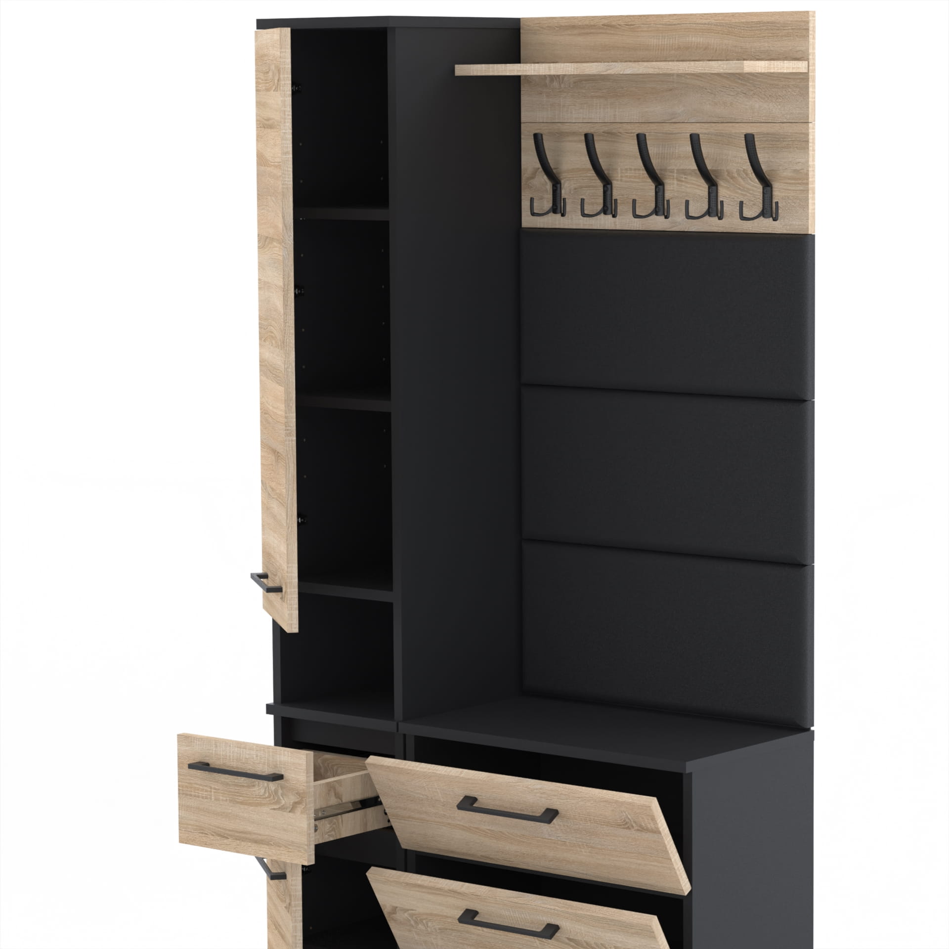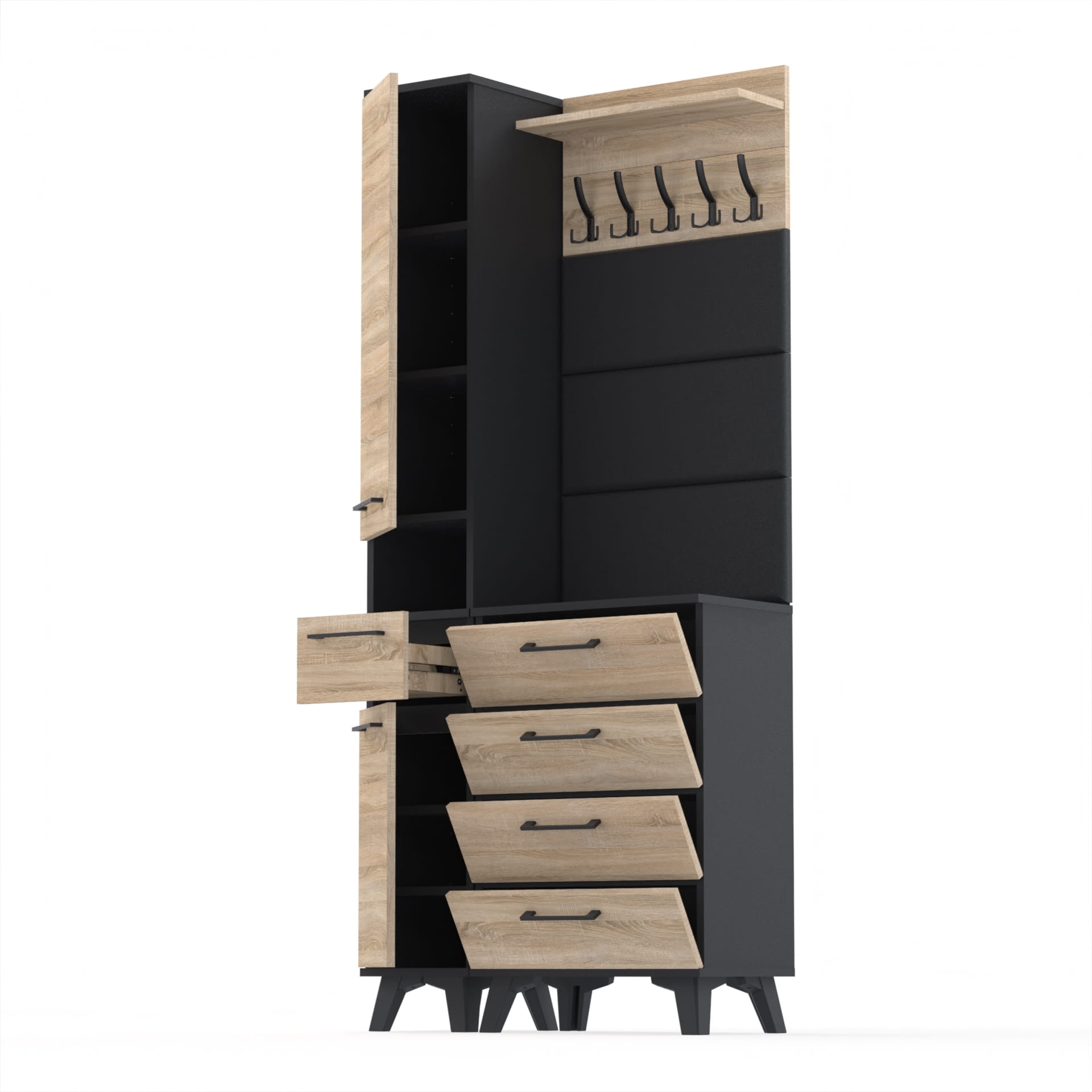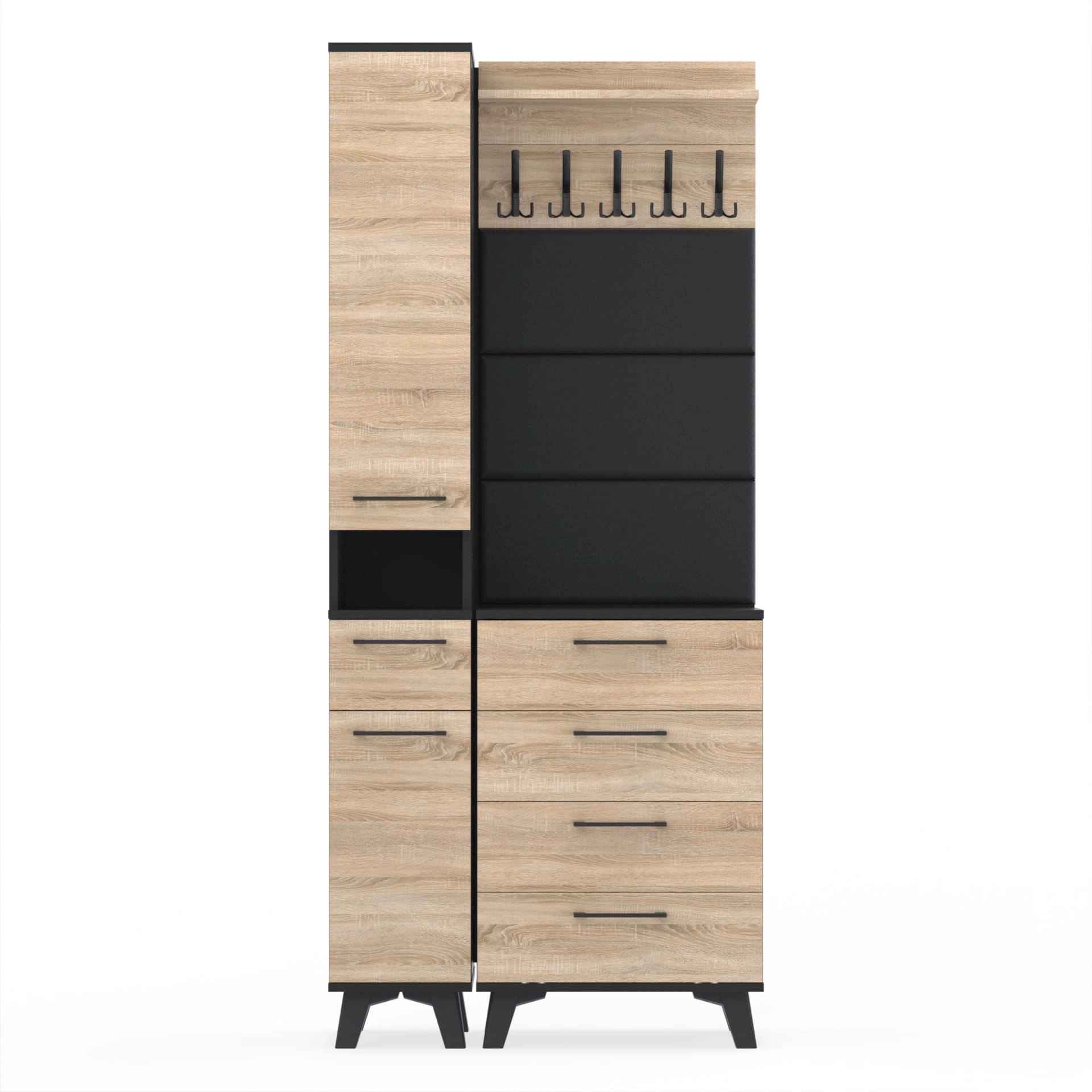 Ciesz się wygodą i stylem, który wprowadzi do Twojego domu ten kompleksowy zestaw mebli. Idealne do przechowywania ubrań, obuwia i innych przedmiotów codziennego użytku, te meble dodadzą elegancji i funkcjonalności każdemu przedpokoju.