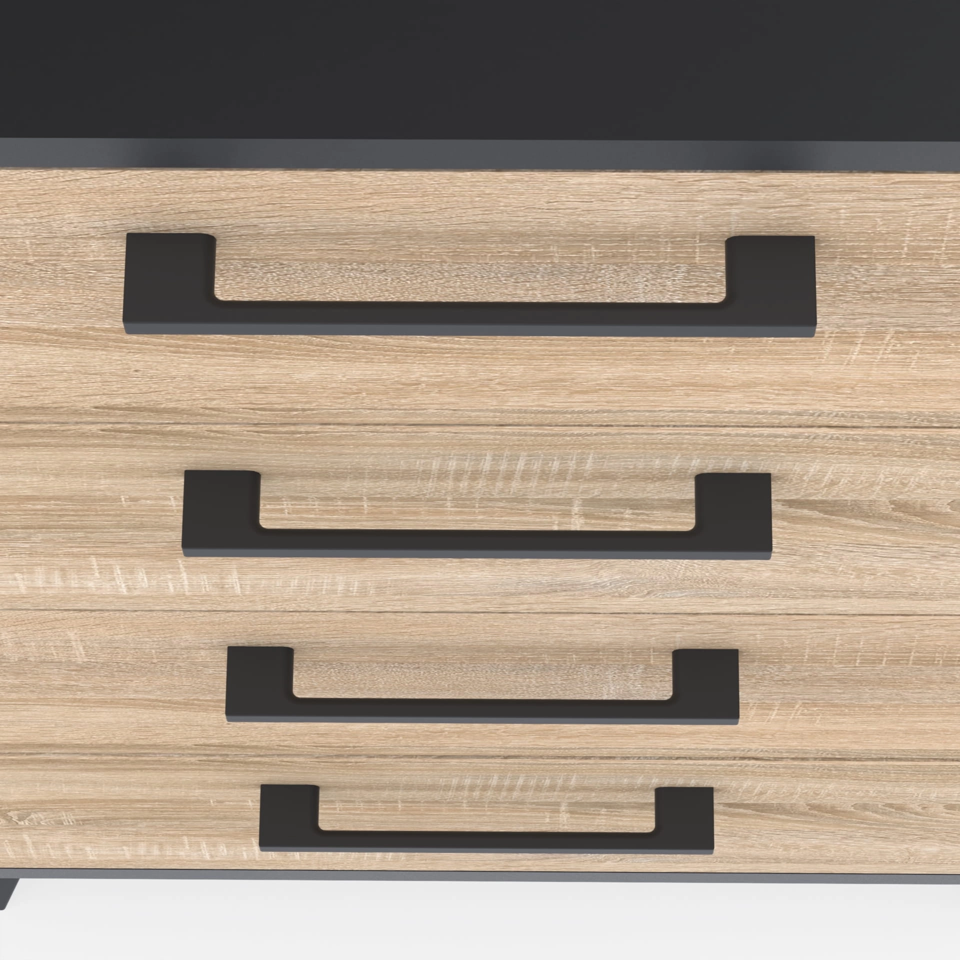 Co wyróżnia nasze meble? Szafki i komody z naszego zestawu posiadają szuflady z twardym dnem, które nie ugina się pod ciężarem przedmiotów. Dodatkowo, szuflady wyposażone są w prowadnice kulkowe, które są znacznie solidniejsze od standardowych prowadnic rolkowych.
