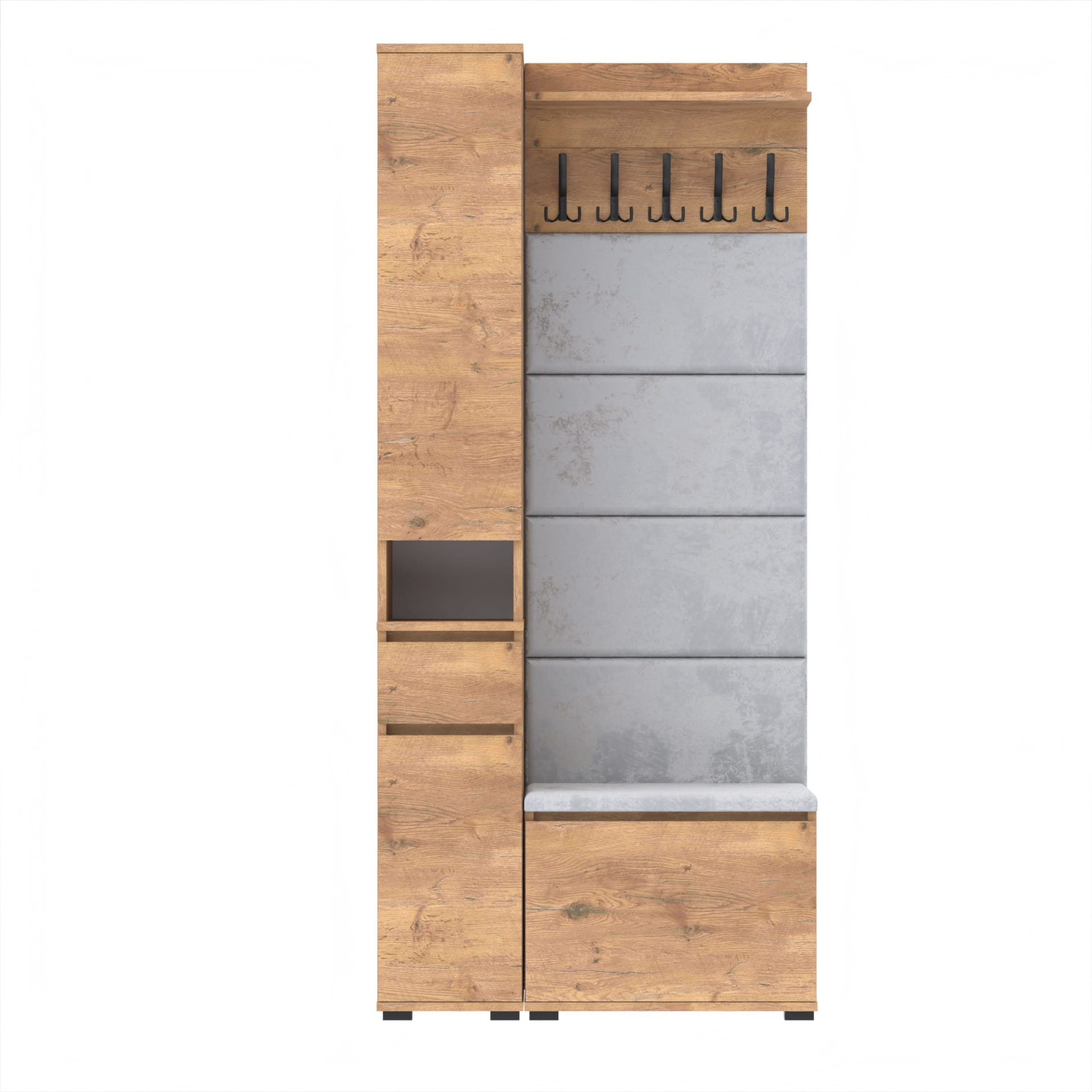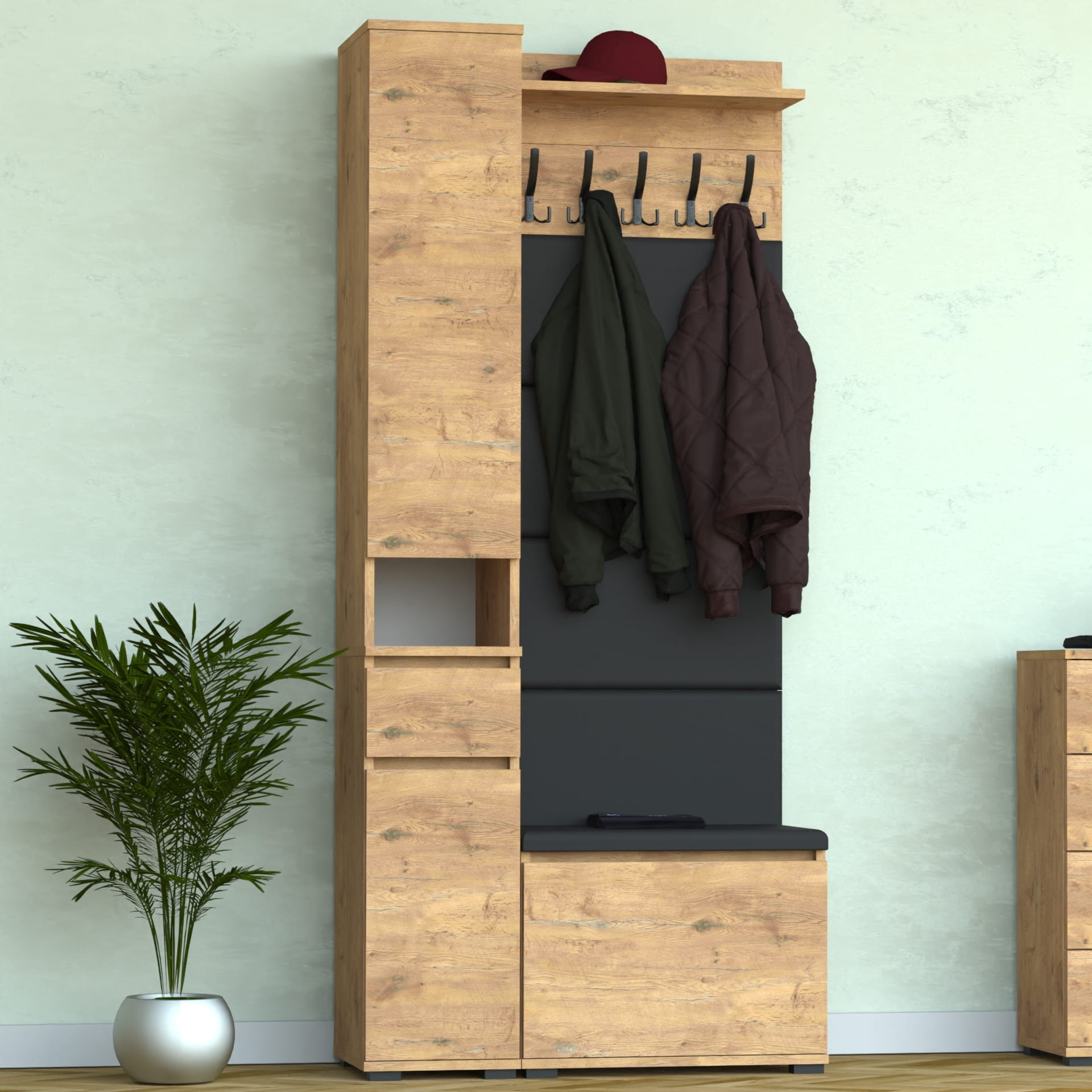 Zestaw szafka na buty z siedziskiem, Komoda Tres z nadstawką SUPRA, Panele ścienne, Wieszak