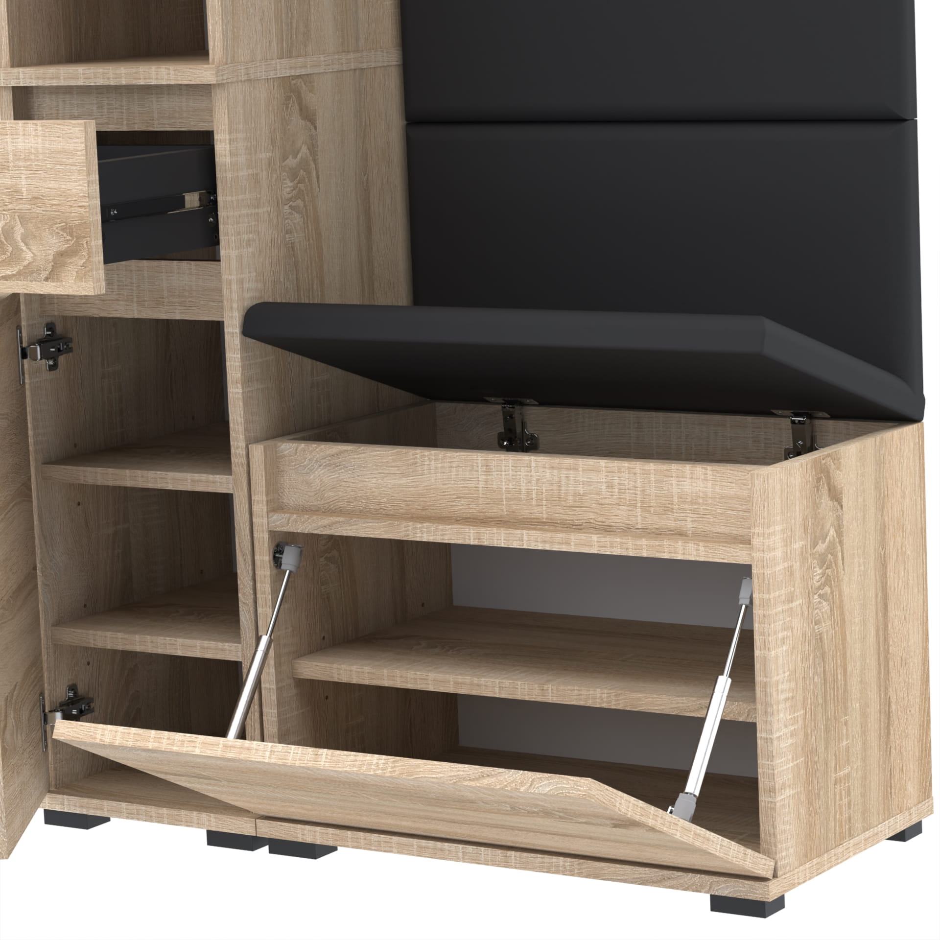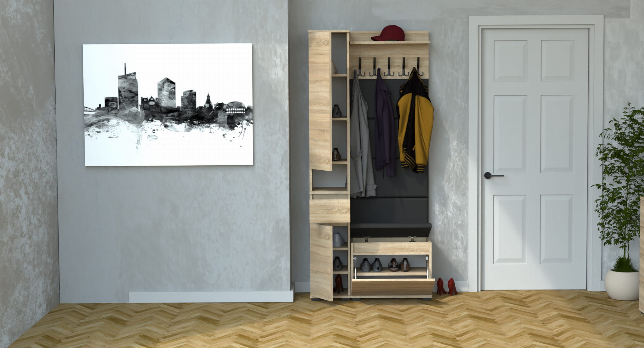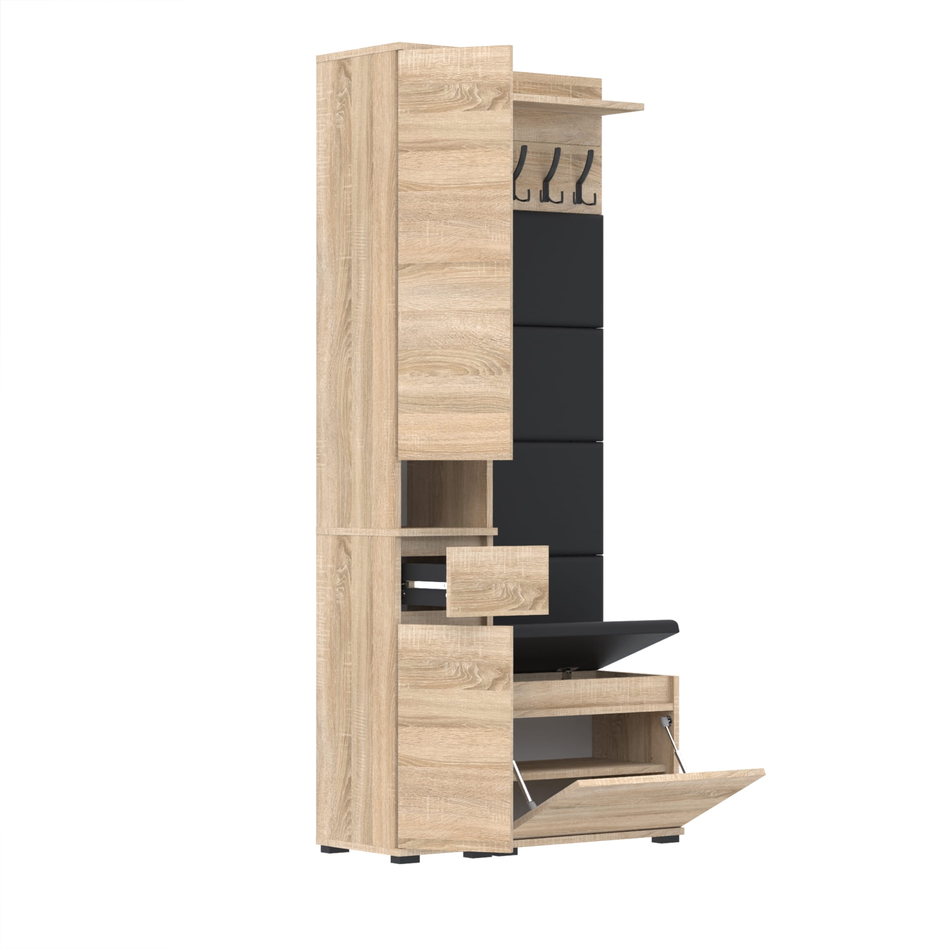 Meble wyprodukowane w Polsce, przeznaczone do przedpokoju. Doskonałe do przechowywania ubrań, obuwia i innych przedmiotów codziennego użytku. Wykonane z wysokiej jakości płyt meblowych renomowanych producentów, posiadają niezbędne certyfikaty i atesty higieniczne.