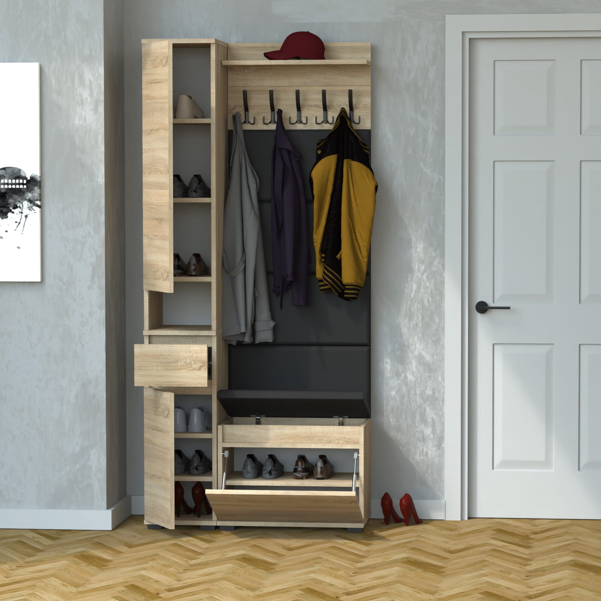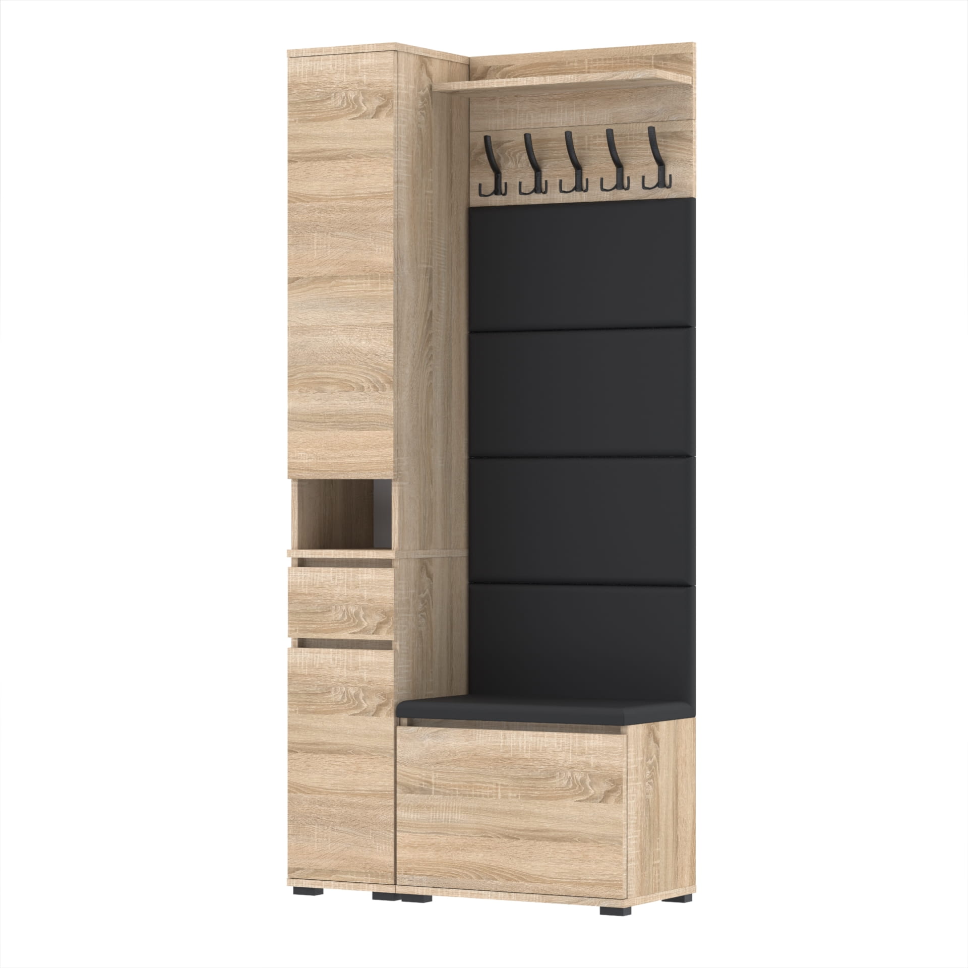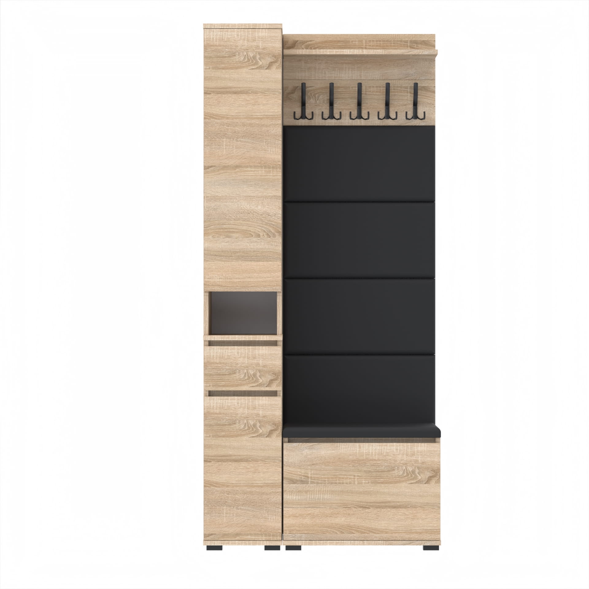 Zestaw szafka na buty z siedziskiem, Komoda Tres z nadstawką SUPRA, Panele ścienne, Wieszak