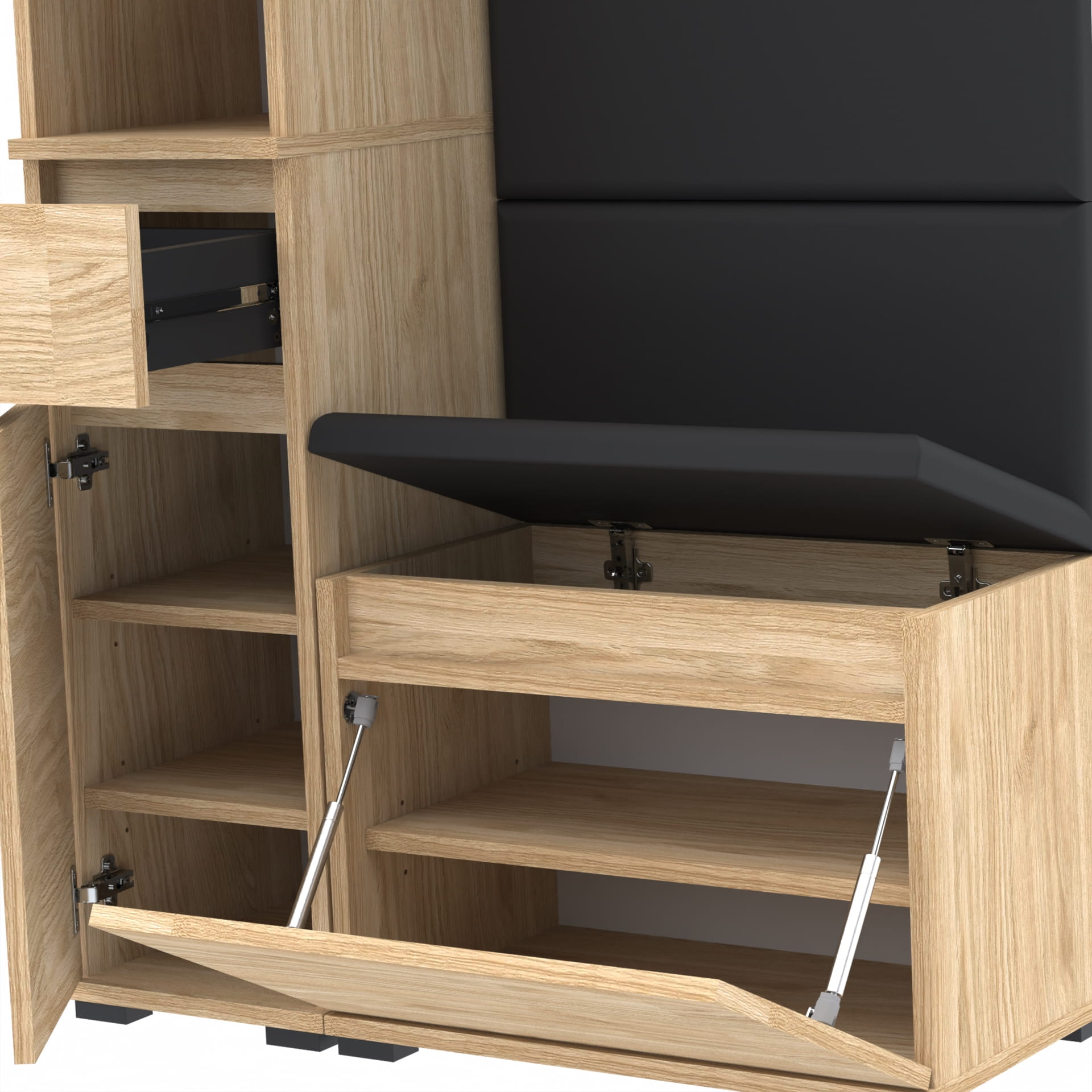 Szafka na buty jest nie tylko wygodna, ale także praktyczna - wewnątrz znajduje się półka, która pozwala na przechowywanie większej ilości obuwia. Dodatkowo, szafka jest wyposażona w schowek na przybory, dzięki czemu wszystko, czego potrzebujesz, jest zawsze pod ręką.