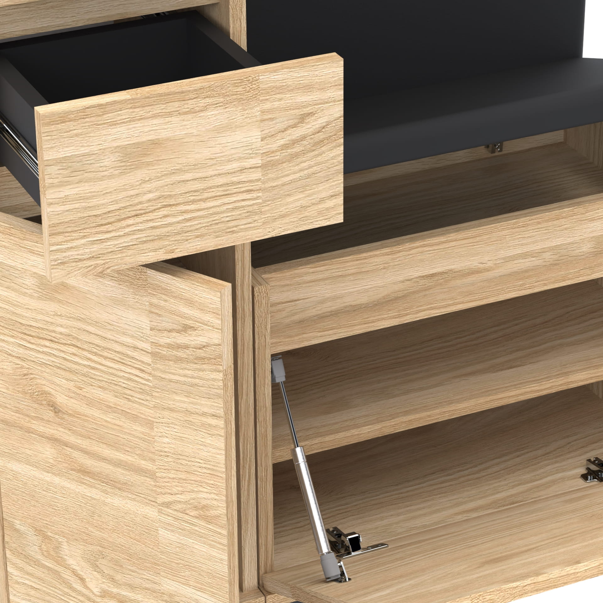 Szafka na buty z siedziskiem to doskonałe połączenie funkcjonalności i wygody. Wyprodukowana w Polsce, doskonale wpasuje się w styl każdego przedpokoju. Siedzisko, obite miękkim, wysokiej jakości materiałem, zapewnia komfort podczas zakładania butów.