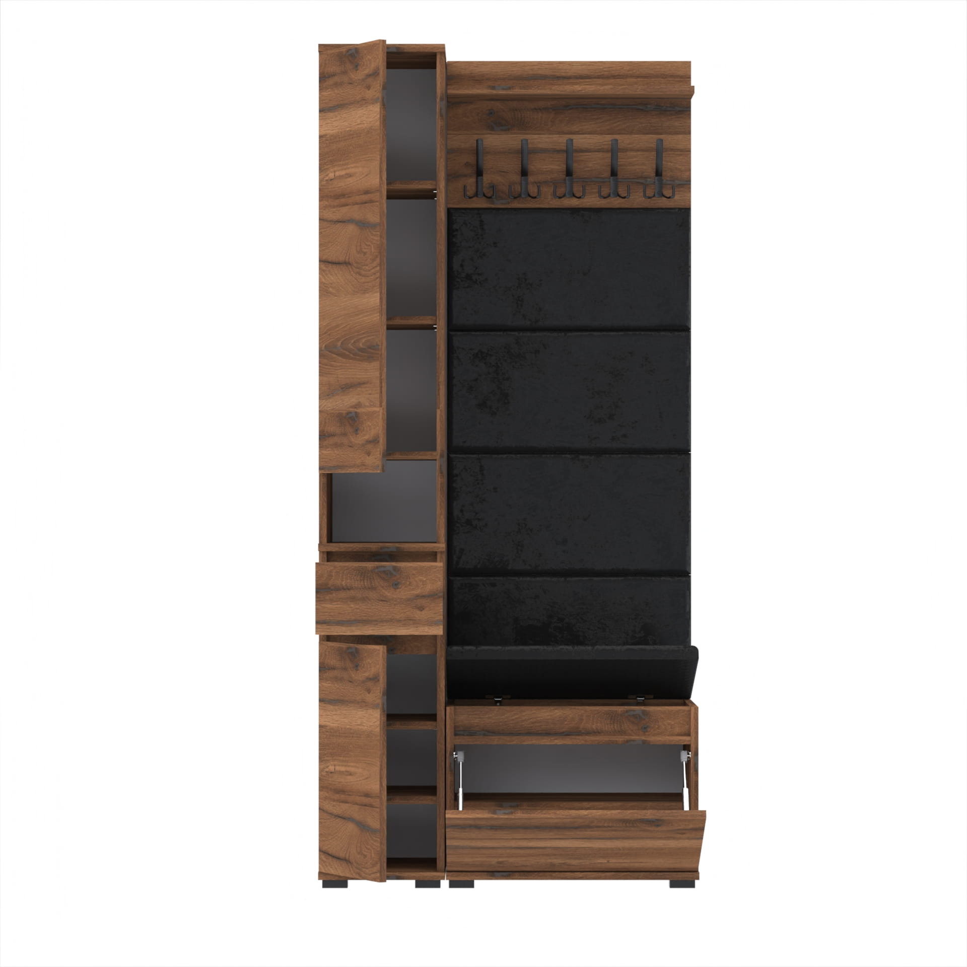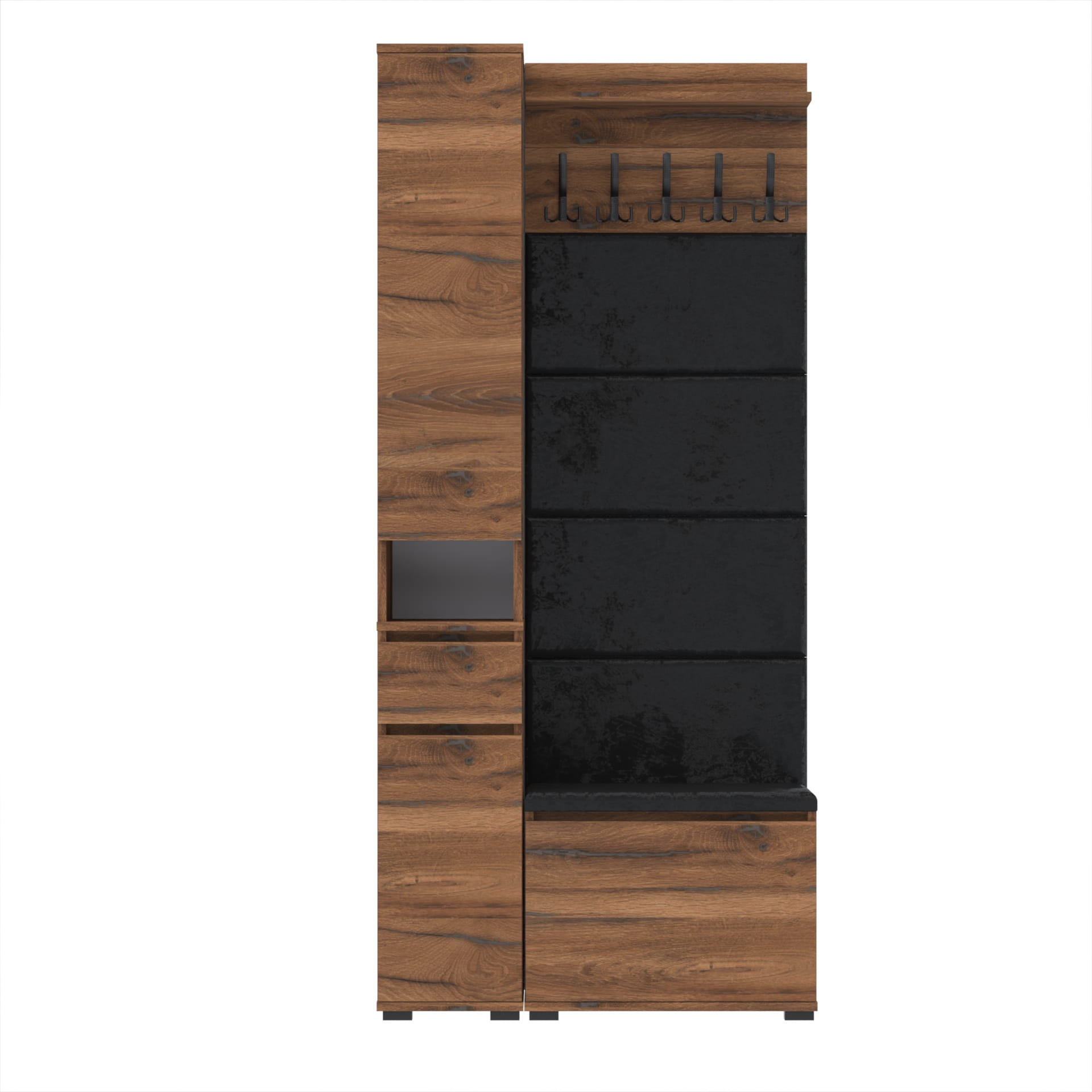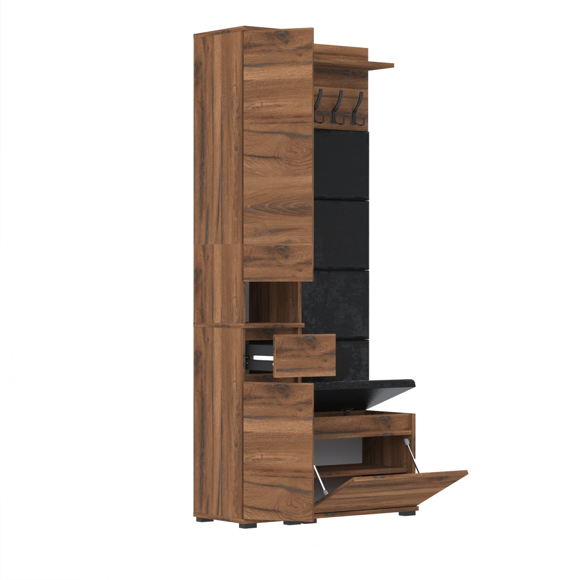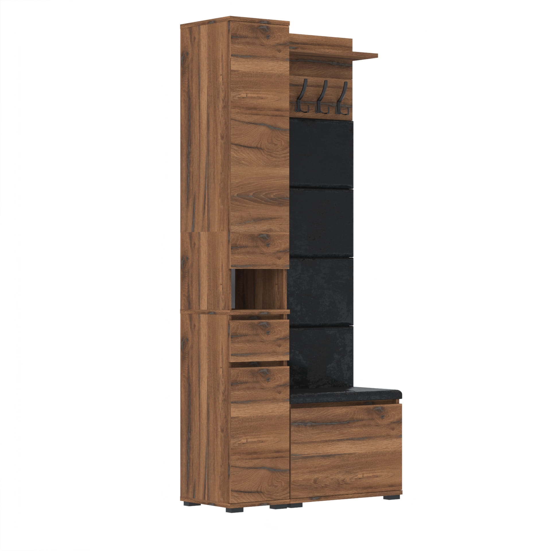Zestaw składający się z eleganckiej szafki na buty z wygodnym siedziskiem, funkcjonalnej komody Tres z nadstawką SUPRA, stylowych paneli ściennych oraz praktycznego wieszaka tworzy kompletną i harmonijną aranżację przedpokoju. Każdy element jest starannie zaprojektowany, aby łączyć estetykę z funkcjonalnością, zapewniając porządek i komfort od samego wejścia. To doskonałe rozwiązanie, które wprowadza do wnętrza spójny styl i wygodę na co dzień.