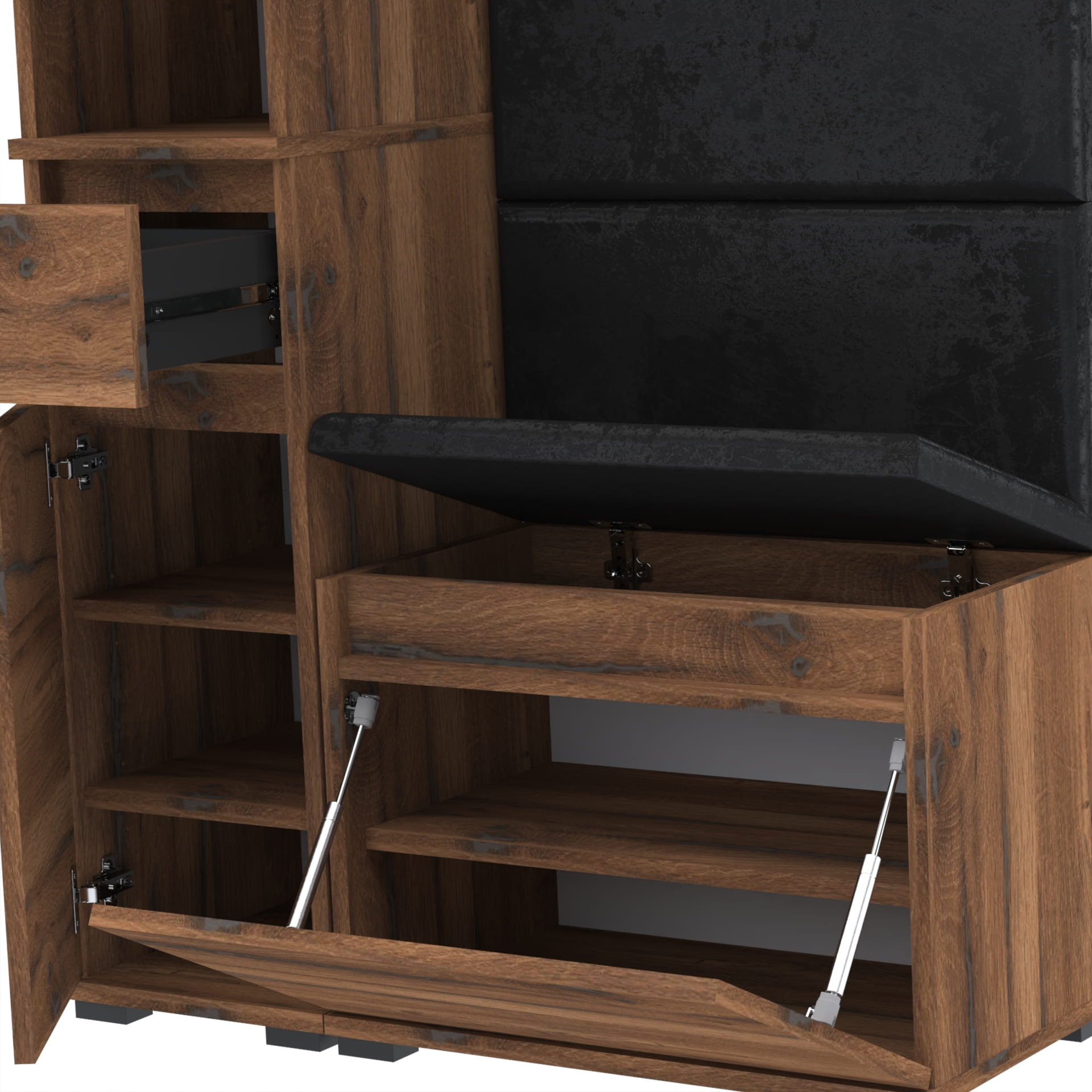Meble wyprodukowane w Polsce, przeznaczone do przedpokoju. Doskonałe do przechowywania ubrań, obuwia i innych przedmiotów codziennego użytku. Wykonane z wysokiej jakości płyt meblowych renomowanych producentów, posiadają niezbędne certyfikaty i atesty higieniczne.