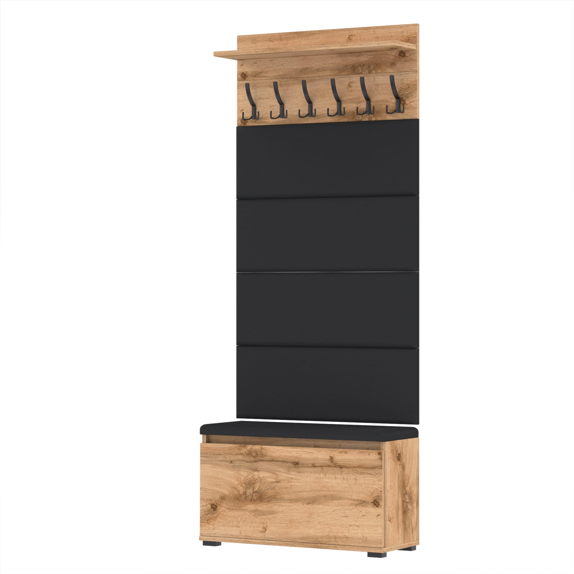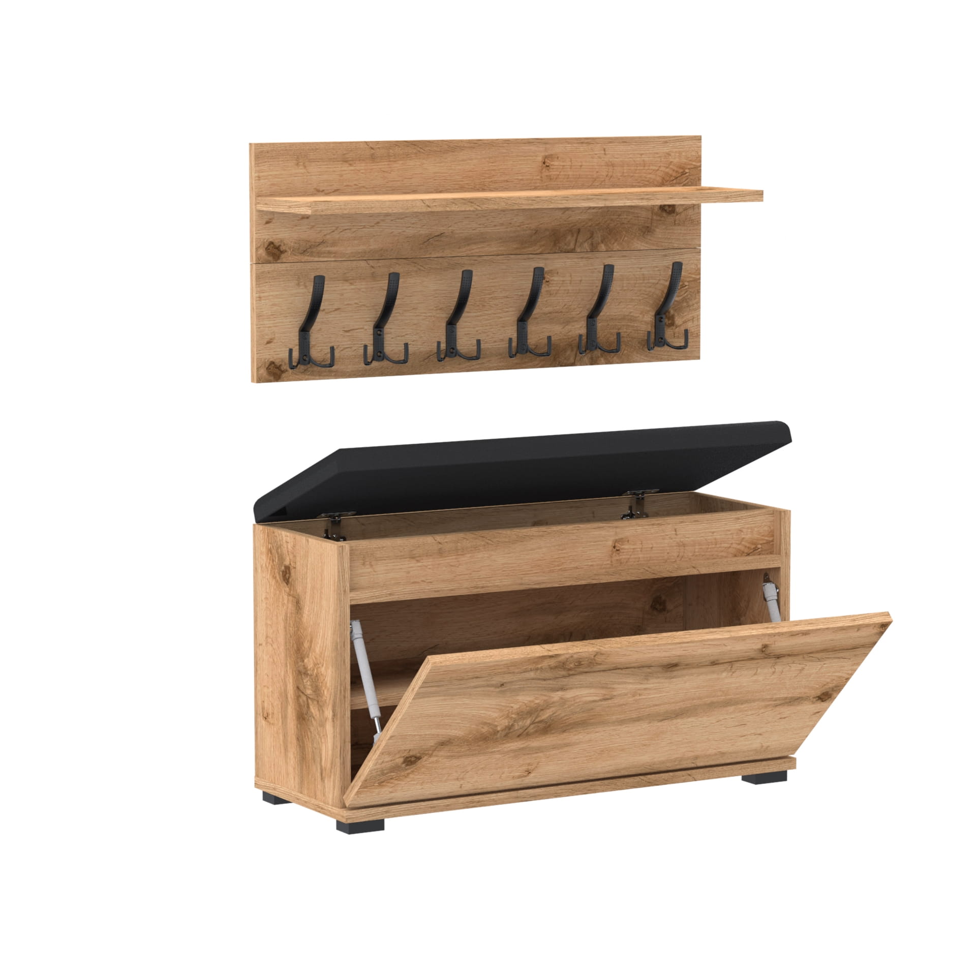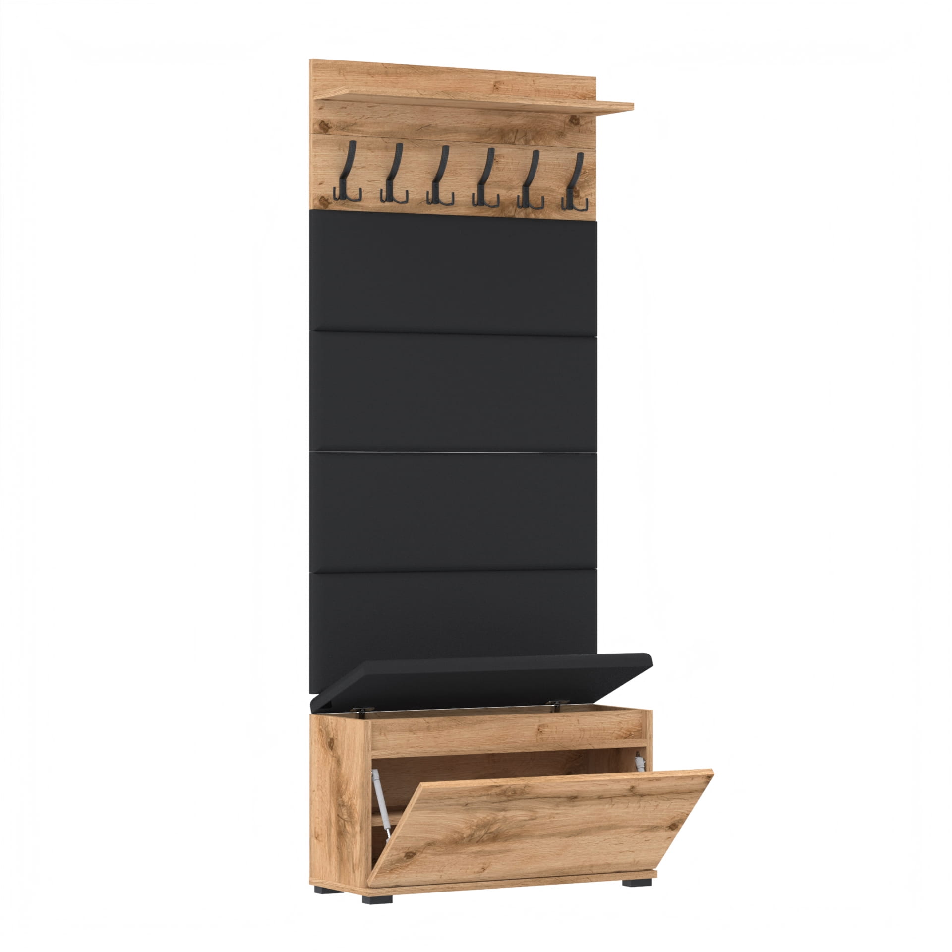 Zestaw - szafka na buty ze schowkiem, wieszak ścienny, półka, 4 panele tapicerowane.