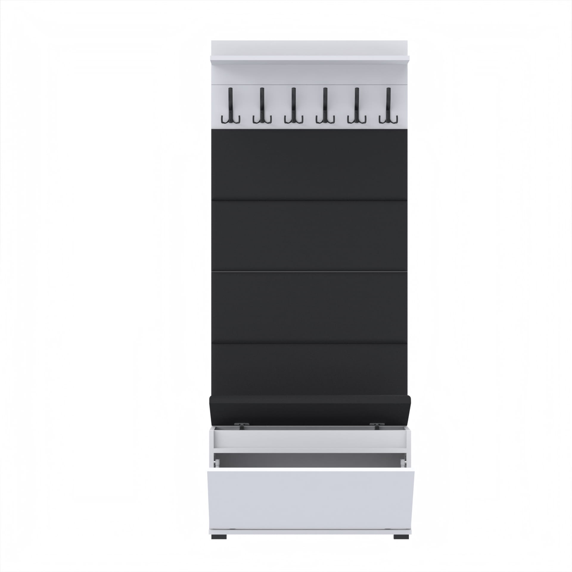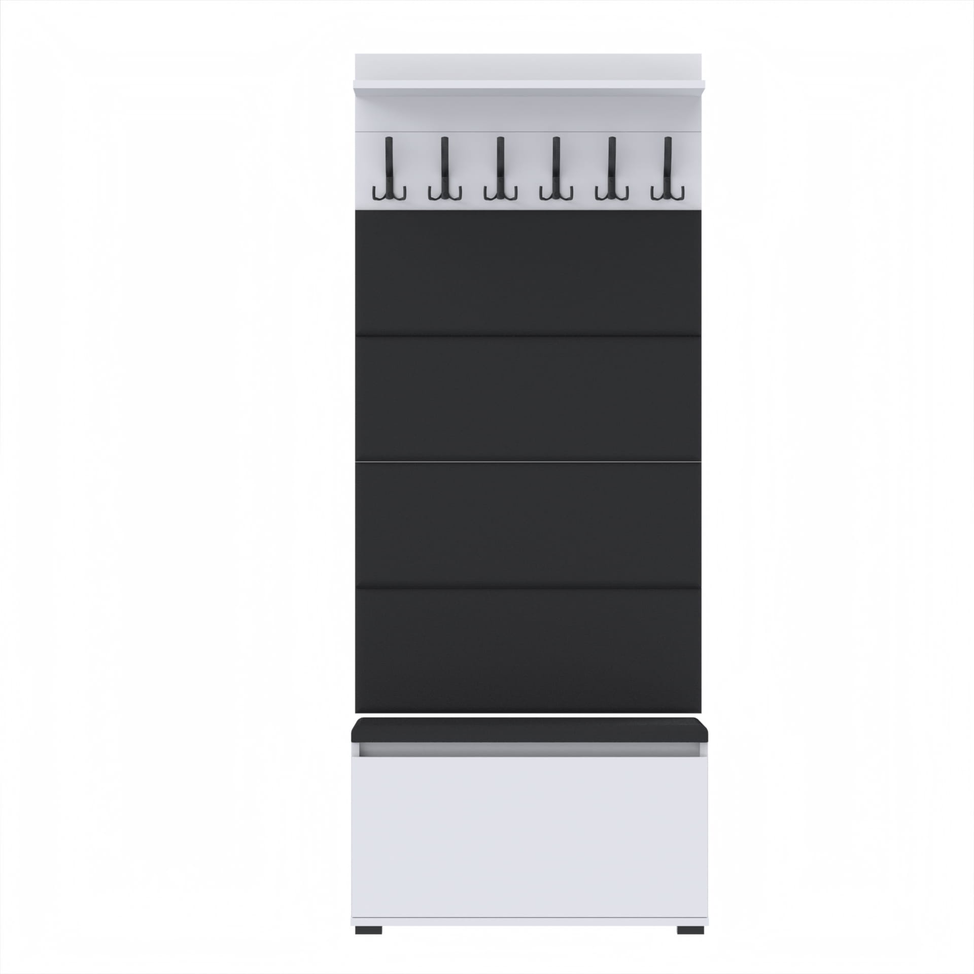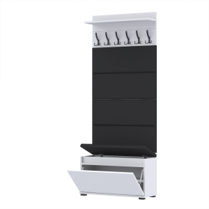 Materiał: Płyta meblowa 18mm, obrzeże ABS, okucia metalowe, stopki tworzywo sztuczne, haki wieszka metalowe.