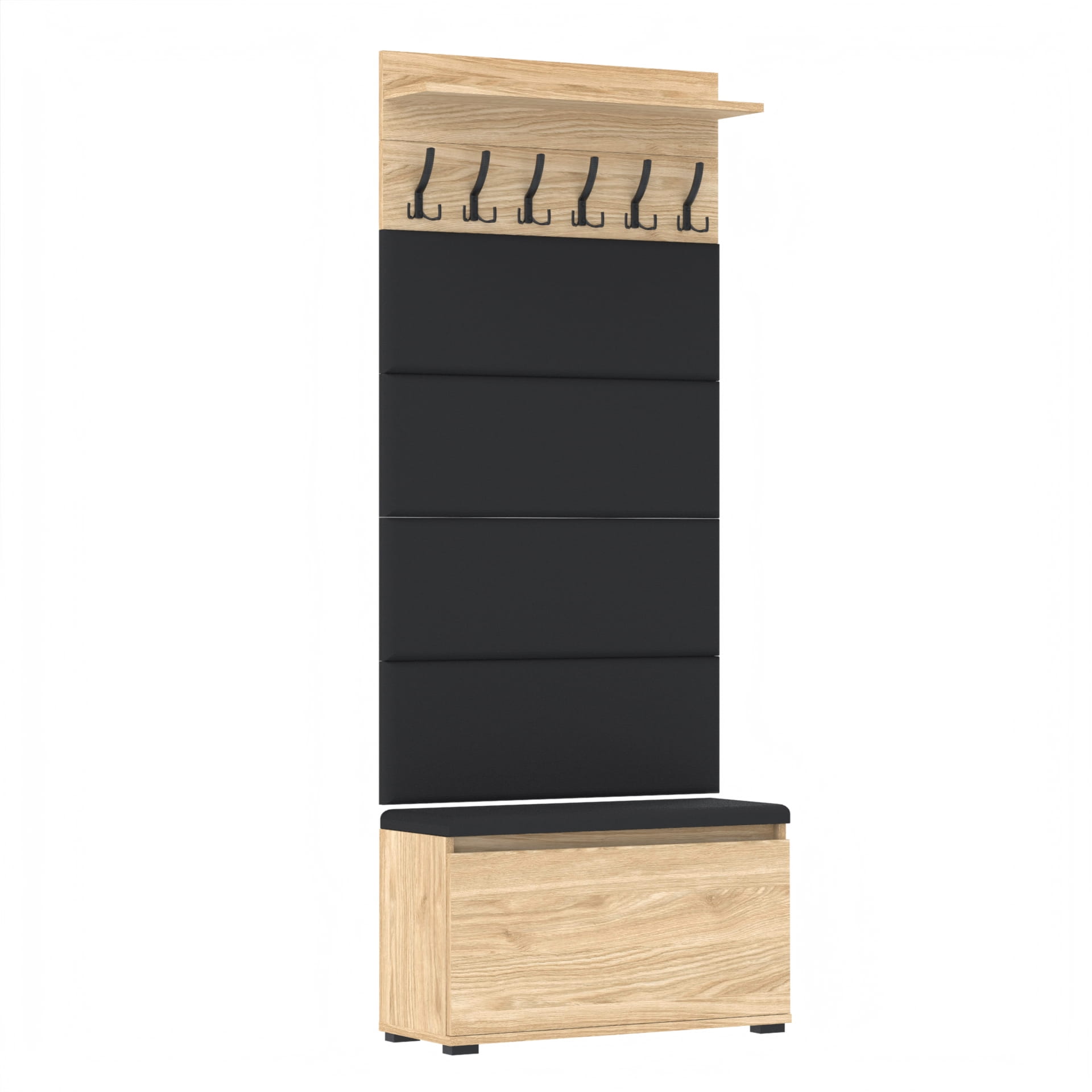 Materiał: Płyta meblowa 18mm, obrzeże ABS, okucia metalowe, stopki tworzywo sztuczne, haki wieszka metalowe.