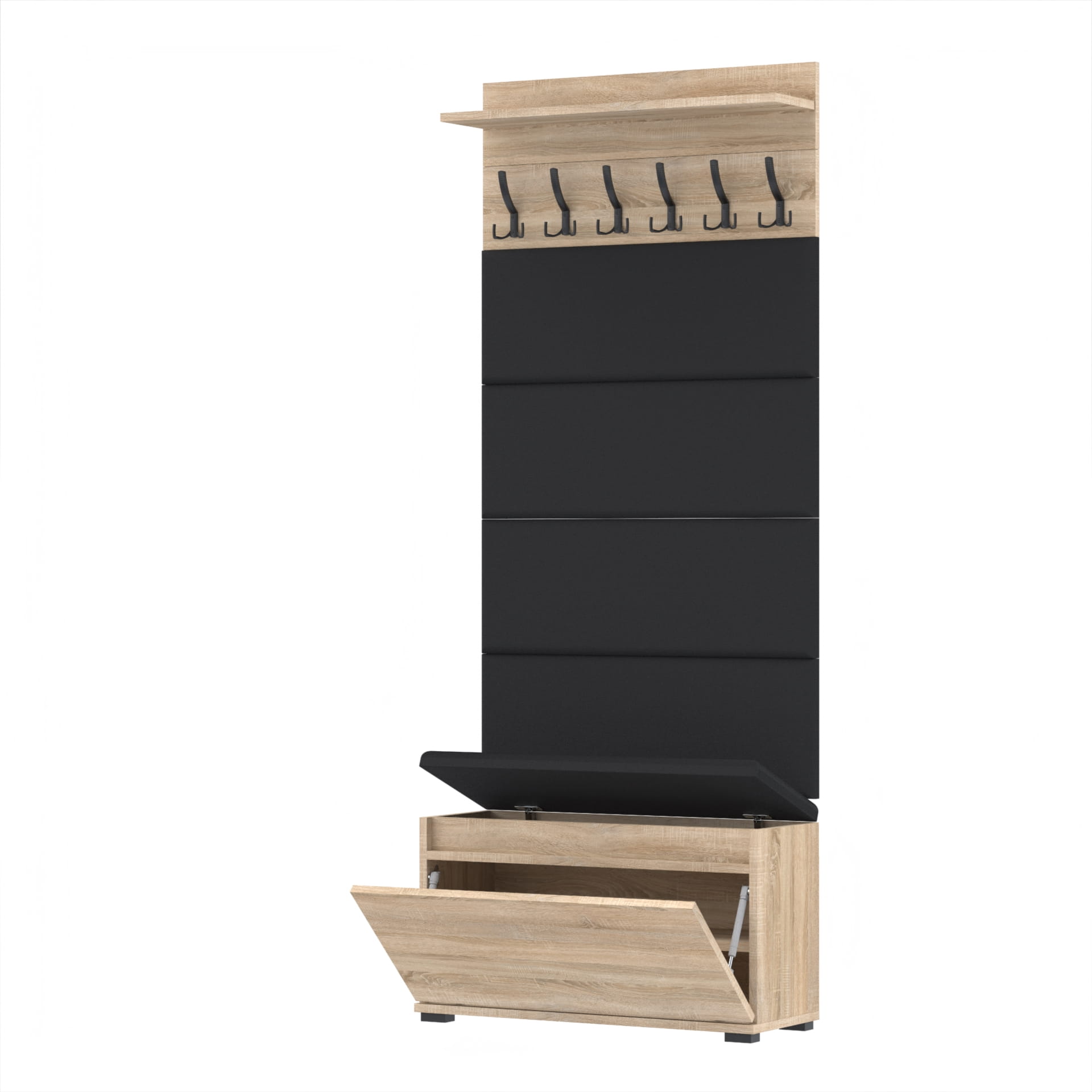 Materiał: Płyta meblowa 18mm, obrzeże ABS, okucia metalowe, stopki tworzywo sztuczne, haki wieszka metalowe.