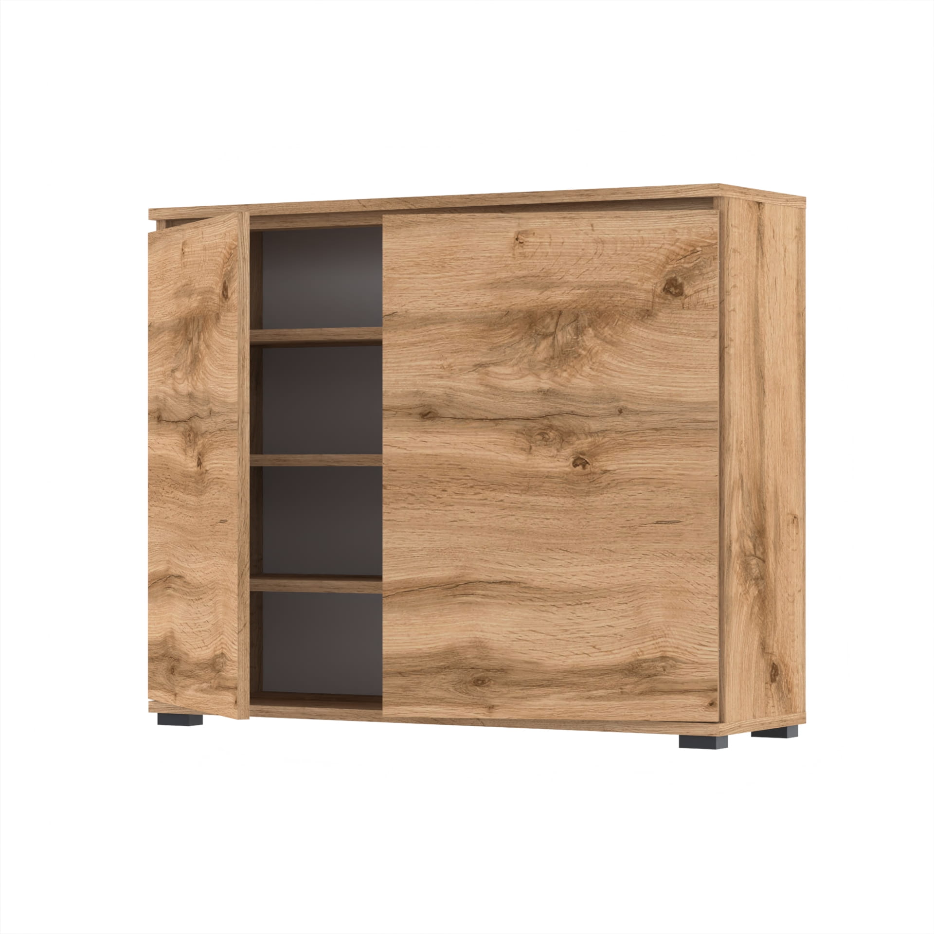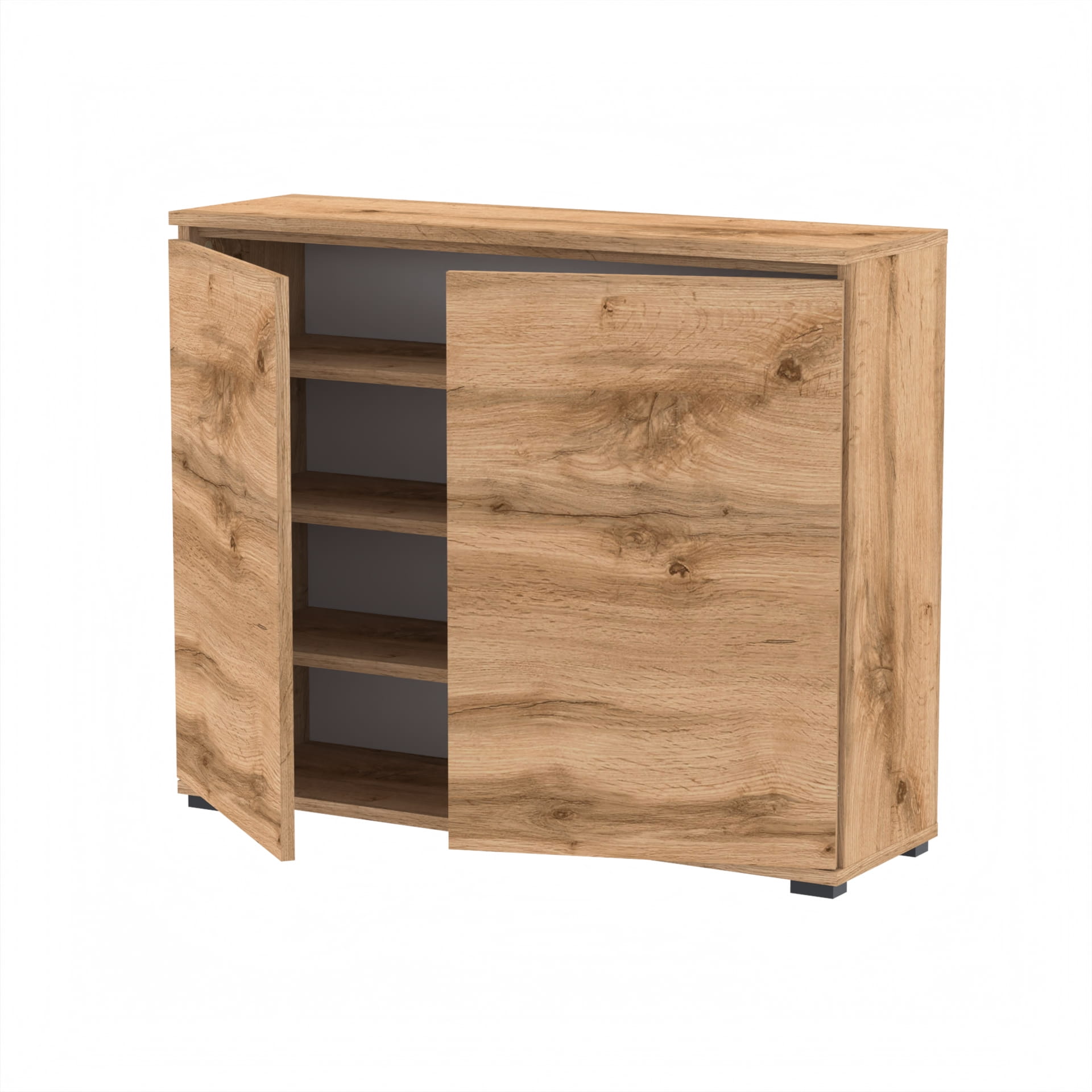 Elegancka i funkcjonalna szafka na buty, zaprojektowana z myślą o nowoczesnych wnętrzach. Dzięki swojej kompaktowej, ale pojemnej konstrukcji, jest doskonałym rozwiązaniem do przechowywania butów w przedpokoju.