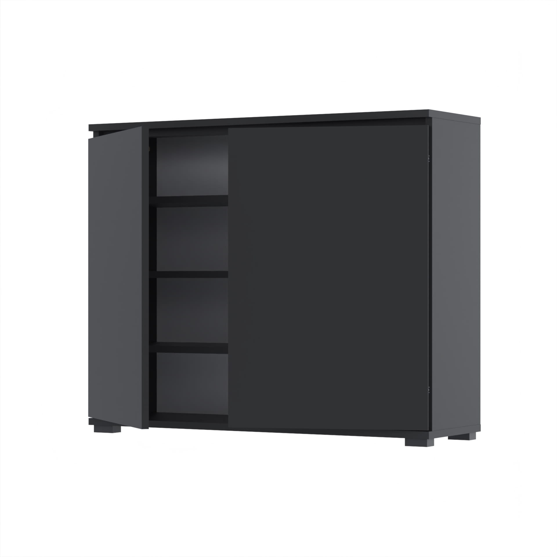 - Szafka wyposażona w dwoje drzwi, które otwierają się na boki, umożliwiając łatwy dostęp do całej zawartości.