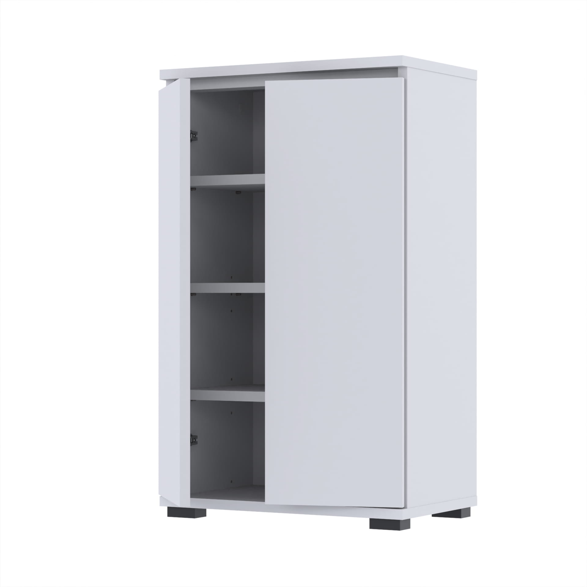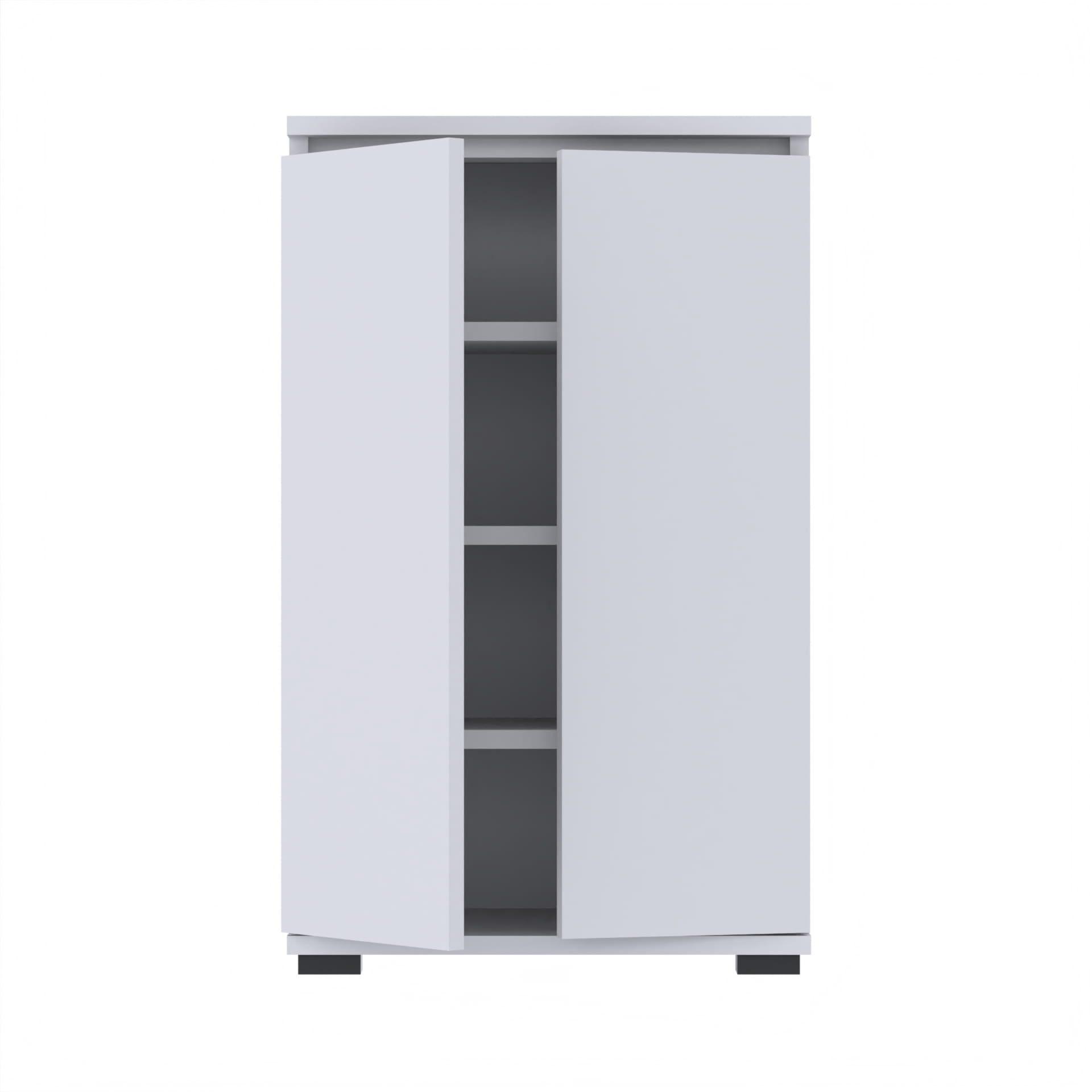 - Szafka wyposażona w dwoje drzwi, które otwierają się na boki, umożliwiając łatwy dostęp do całej zawartości.