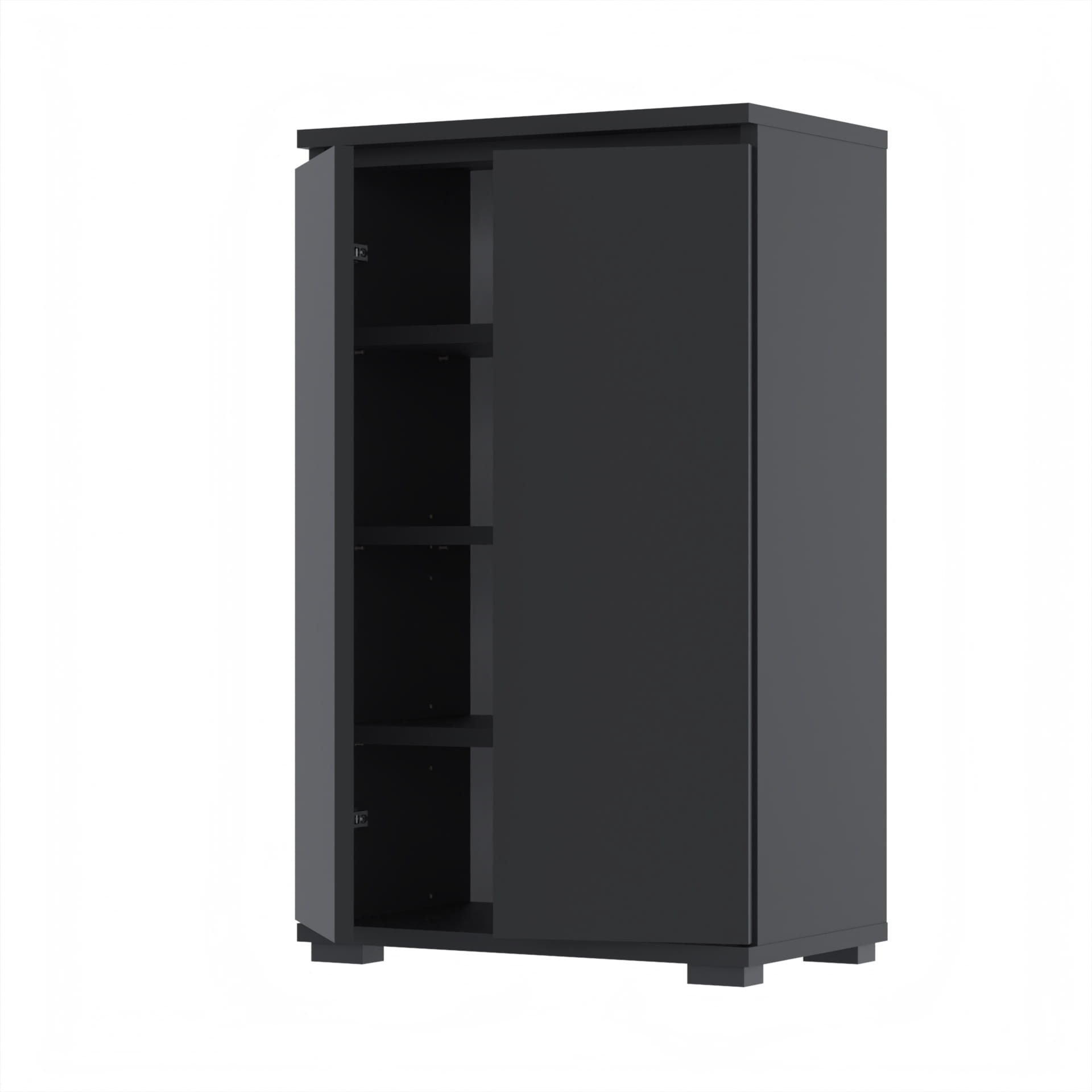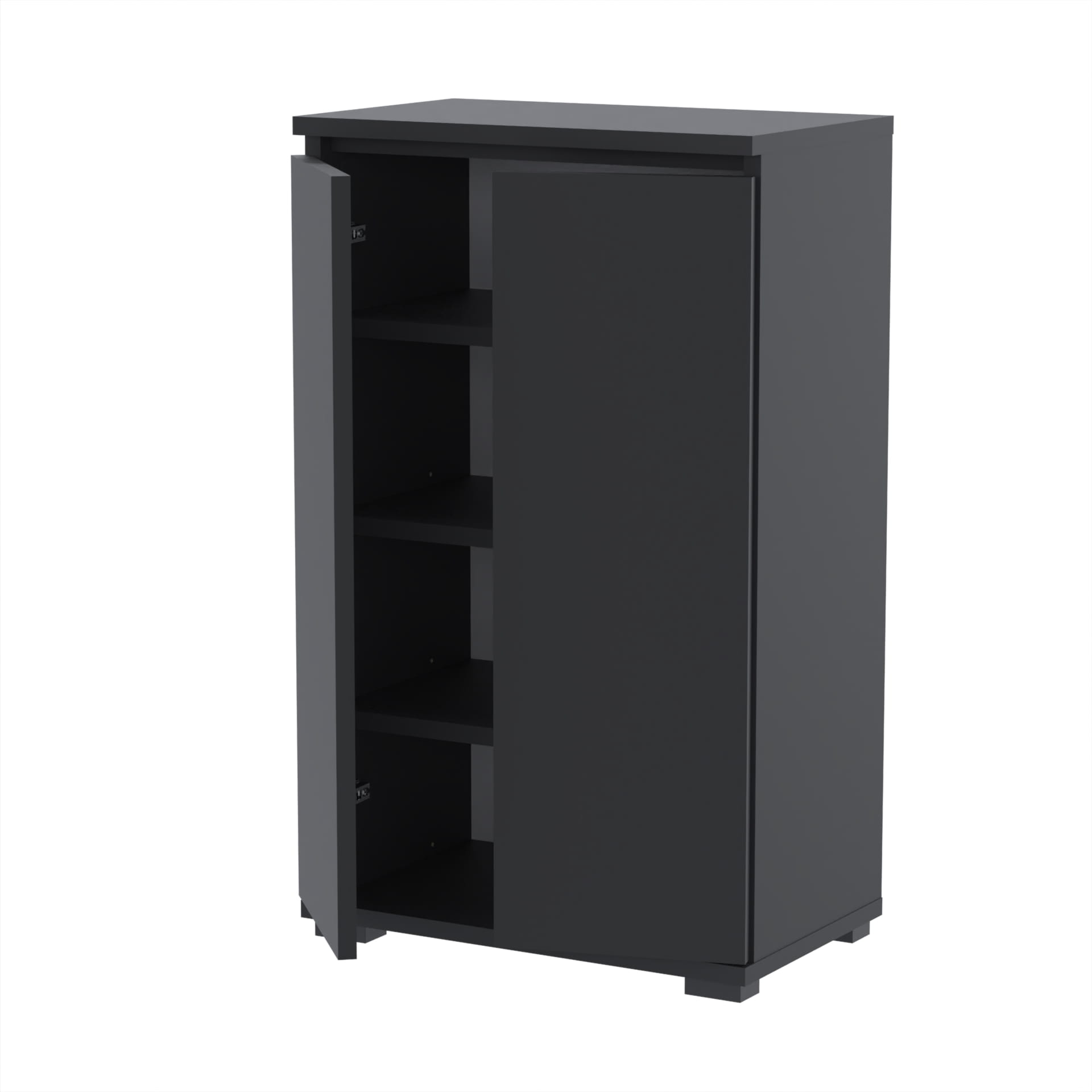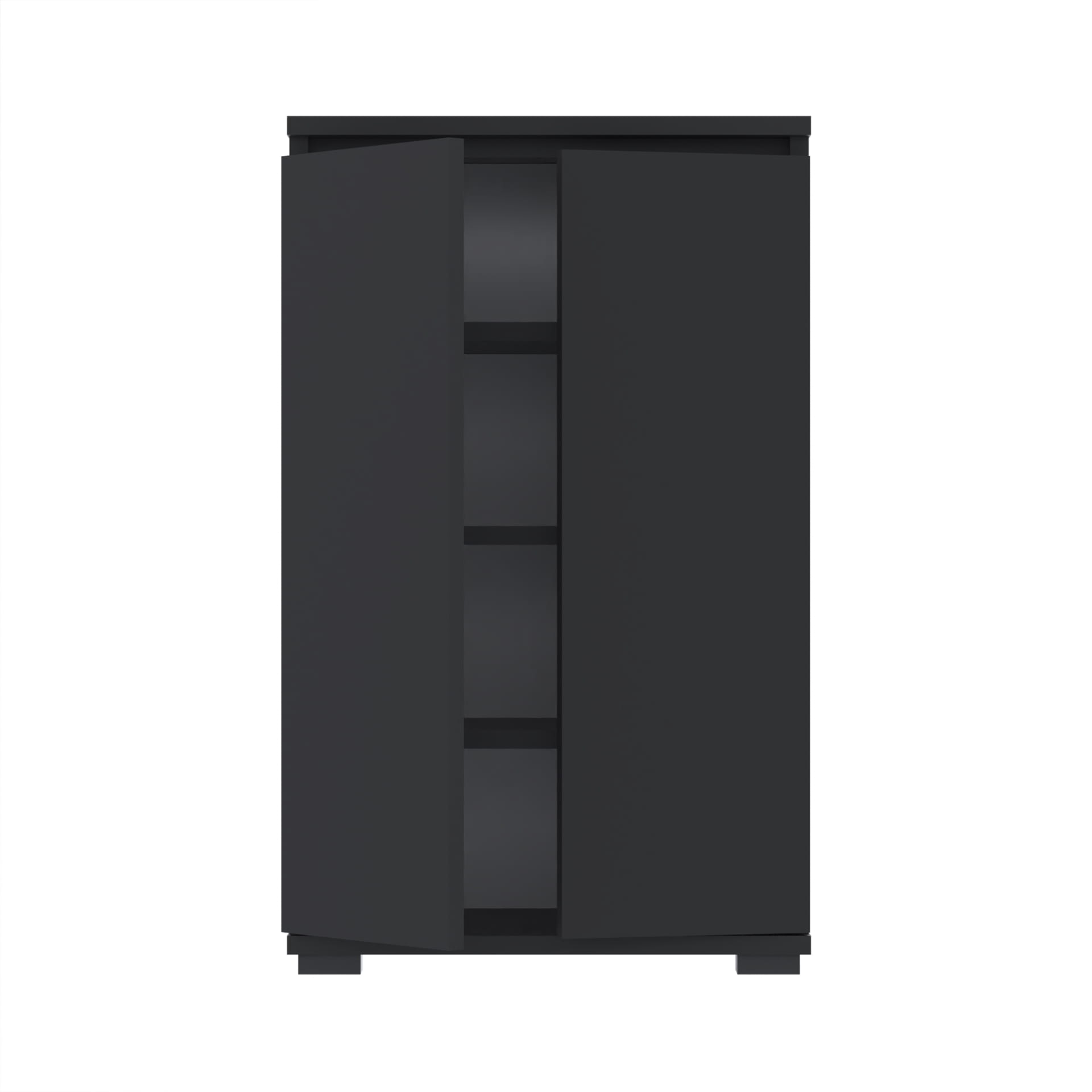 - Szafka wyposażona w dwoje drzwi, które otwierają się na boki, umożliwiając łatwy dostęp do całej zawartości.
