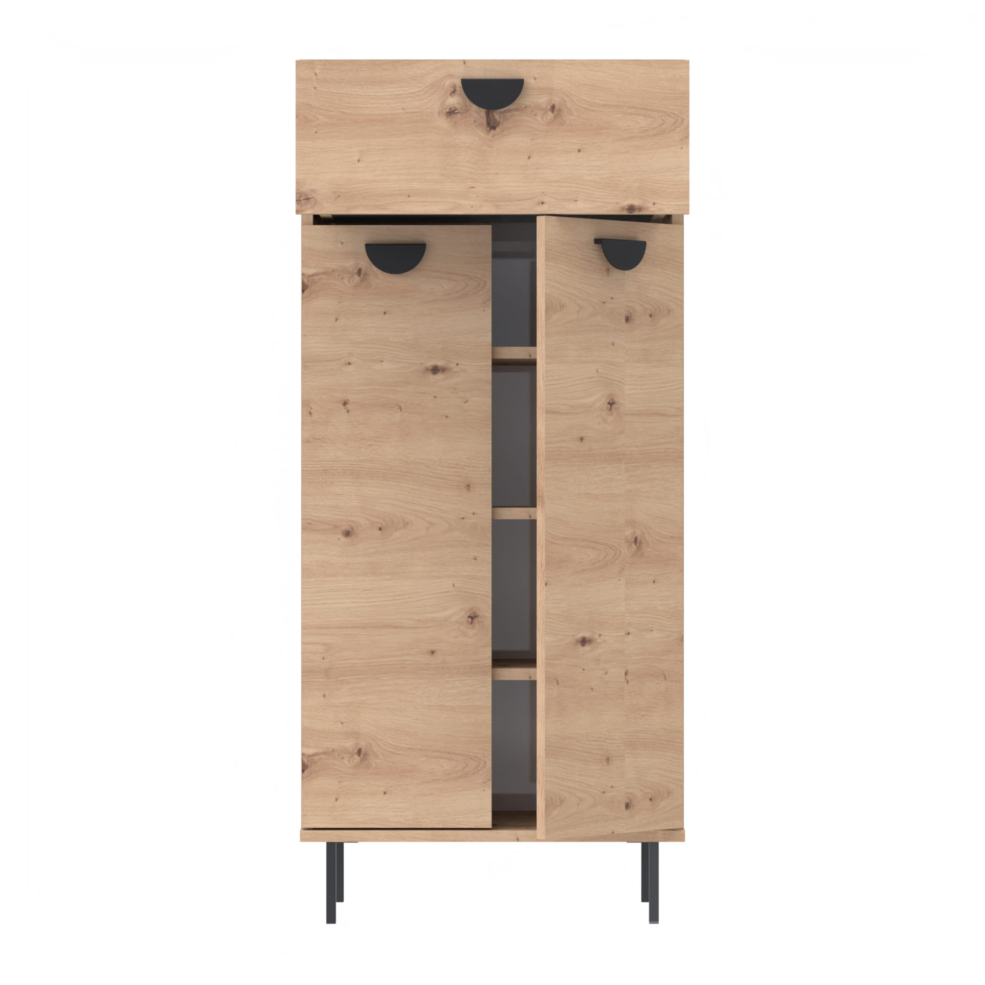 Dla osób potrzebujących więcej miejsca dla większych rozmiarów obuwia, nasza szafka o głębokości 36 cm stanowi doskonały wybór. Przestronna i praktyczna, została zaprojektowana, aby bez problemu pomieścić buty do europejskiego rozmiaru 46. To rozwiązanie idealne dla tych, którzy cenią sobie komfort przechowywania również większego obuwia, w tym butów sportowych czy roboczych.