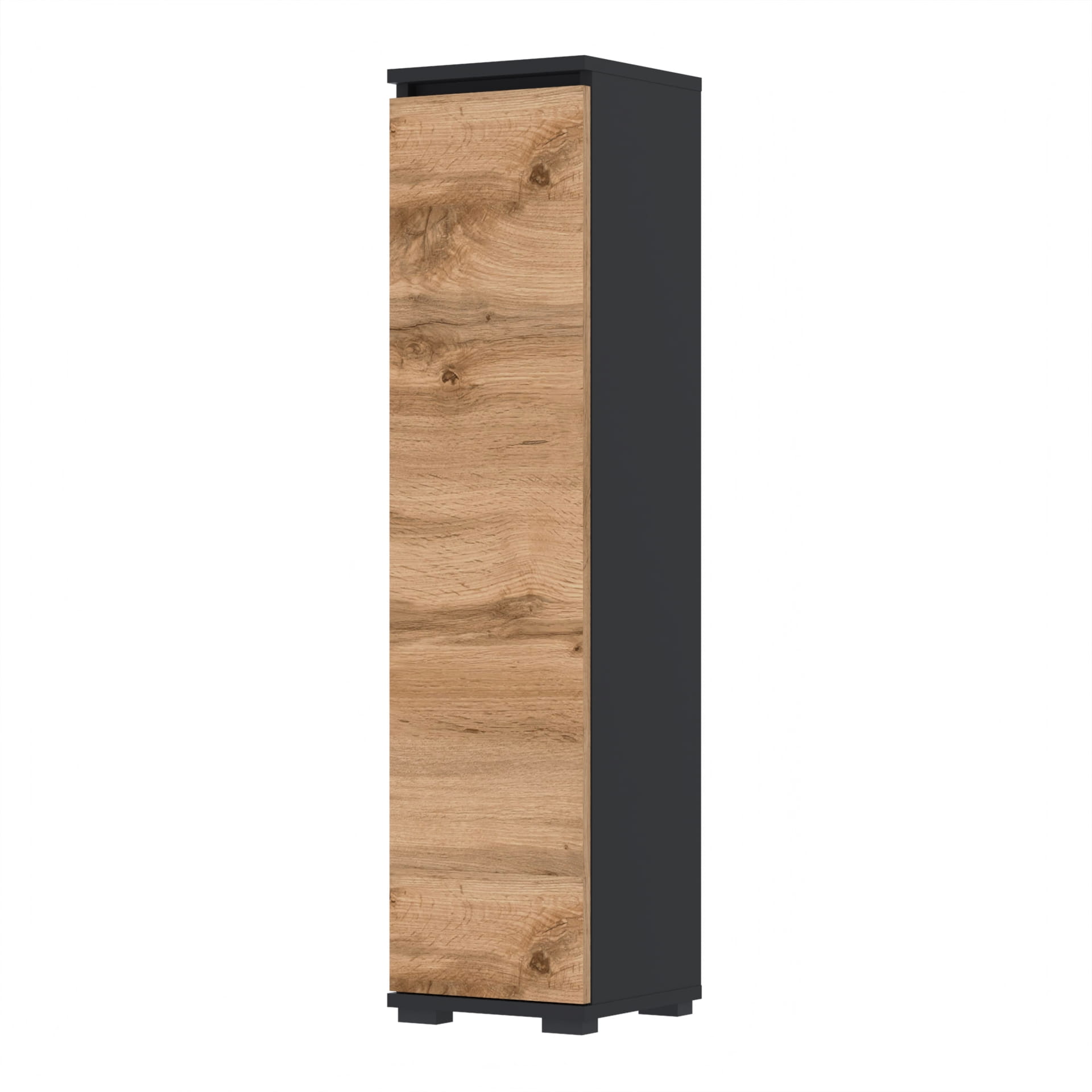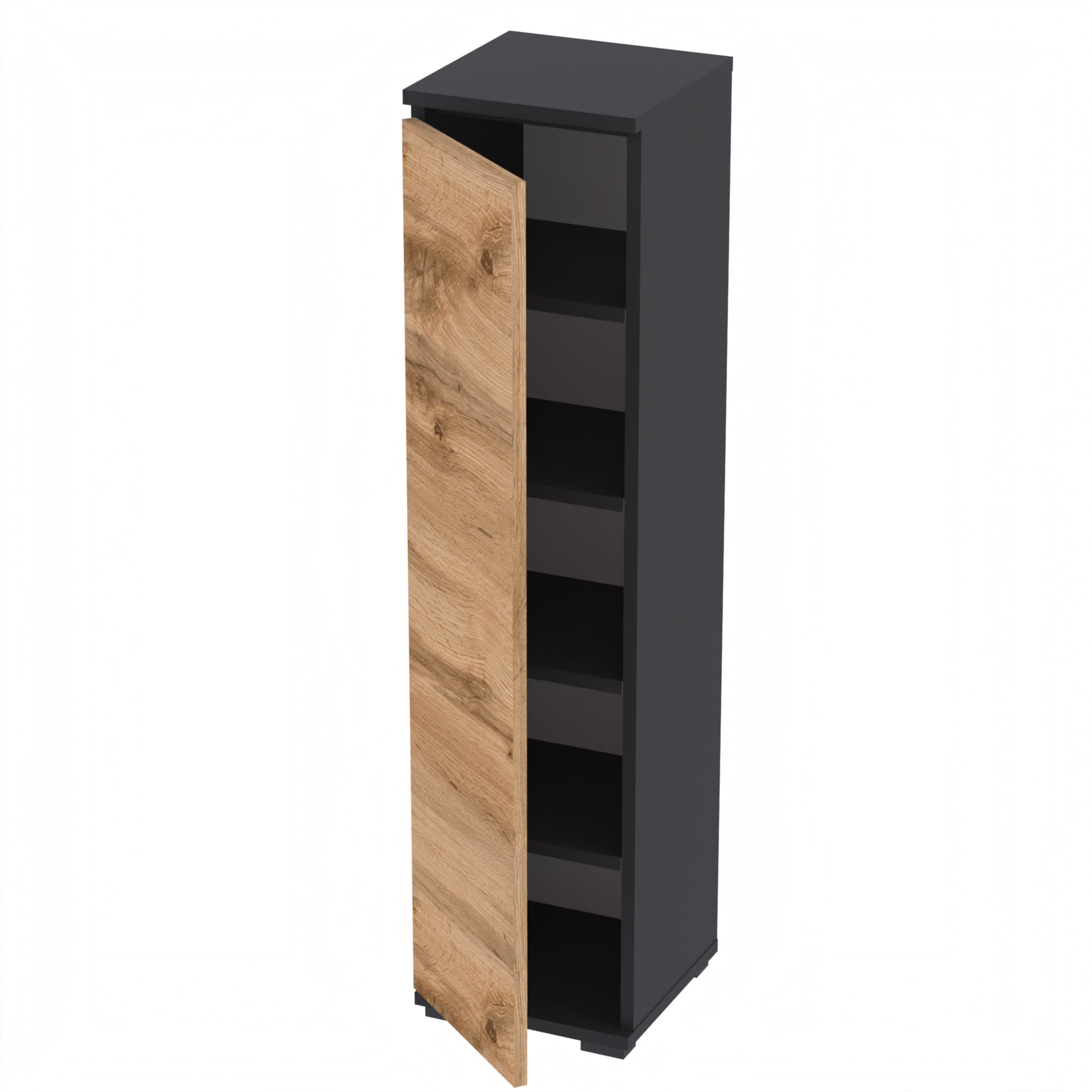 Praktyczna i stylowa szafka na buty, idealna do każdego przedpokoju czy garderoby. Jej smukły, pionowy kształt sprawia, że doskonale wpasowuje się w wąskie przestrzenie, oferując jednocześnie dużą pojemność na obuwie.