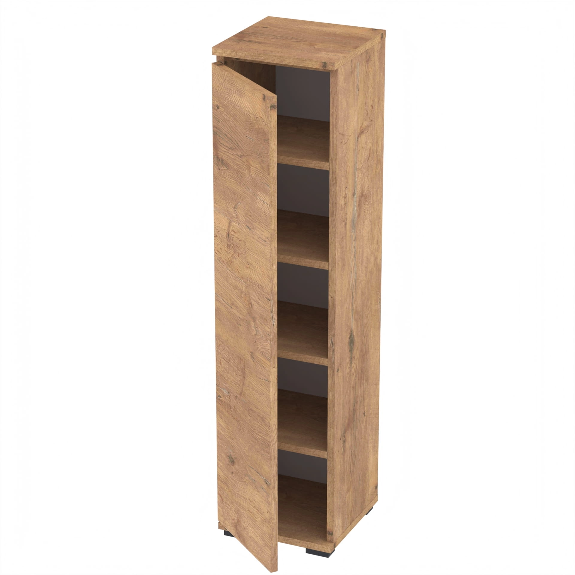 Praktyczna i stylowa szafka na buty, idealna do każdego przedpokoju czy garderoby. Jej smukły, pionowy kształt sprawia, że doskonale wpasowuje się w wąskie przestrzenie, oferując jednocześnie dużą pojemność na obuwie.