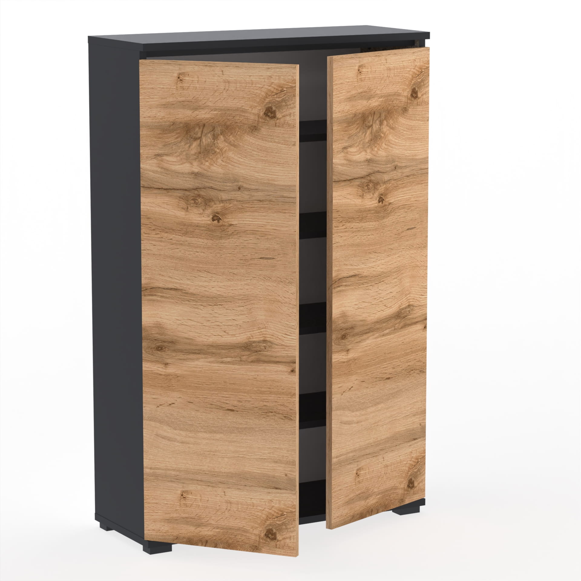 Elegancka i funkcjonalna szafka na buty, zaprojektowana z myślą o nowoczesnych wnętrzach. Dzięki swojej kompaktowej, ale pojemnej konstrukcji, jest doskonałym rozwiązaniem do przechowywania butów w przedpokoju.