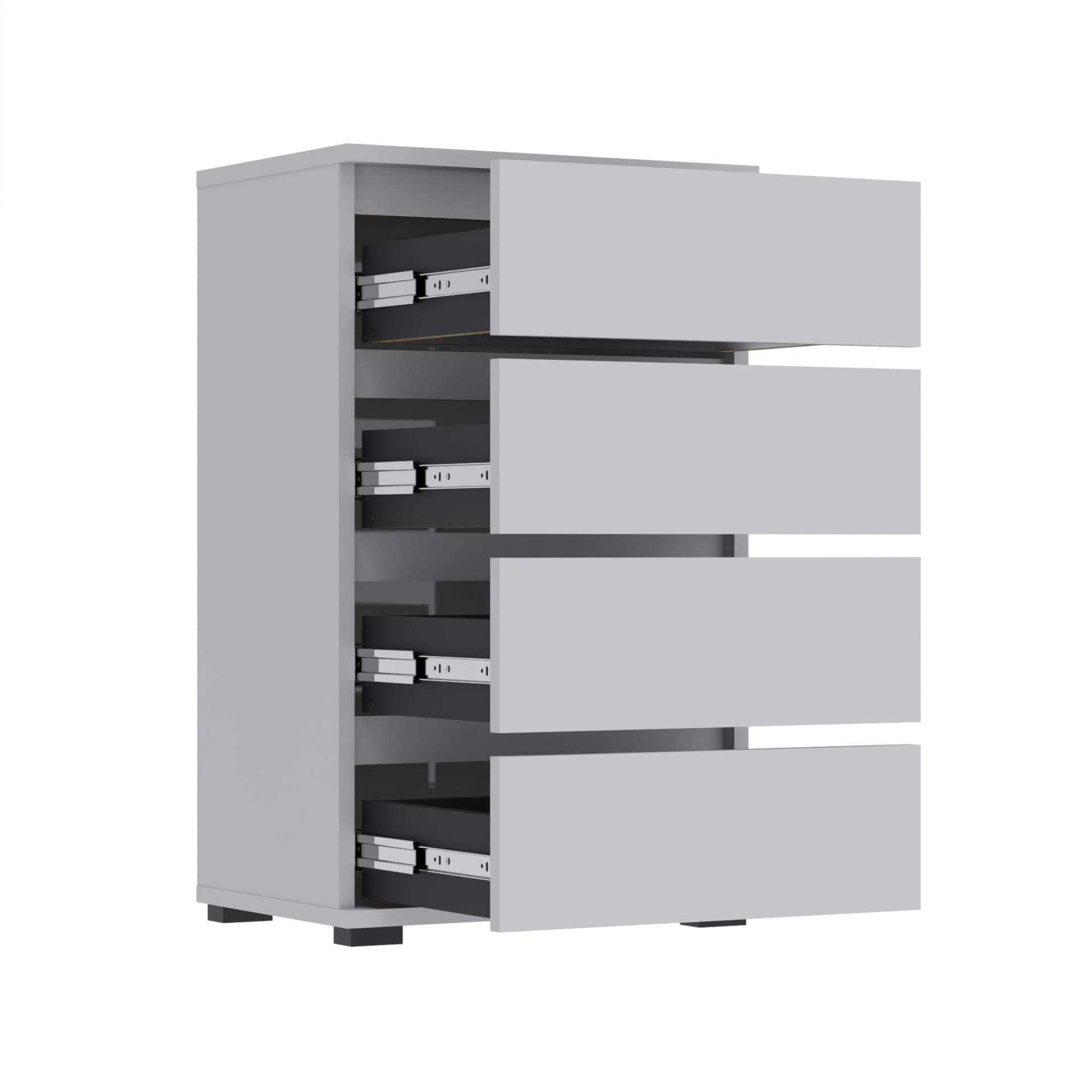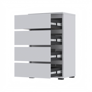 Komoda zawiera 4 szuflady z twardym 18mm dnem który nie ugina się pod ciężarem przedmiotów.