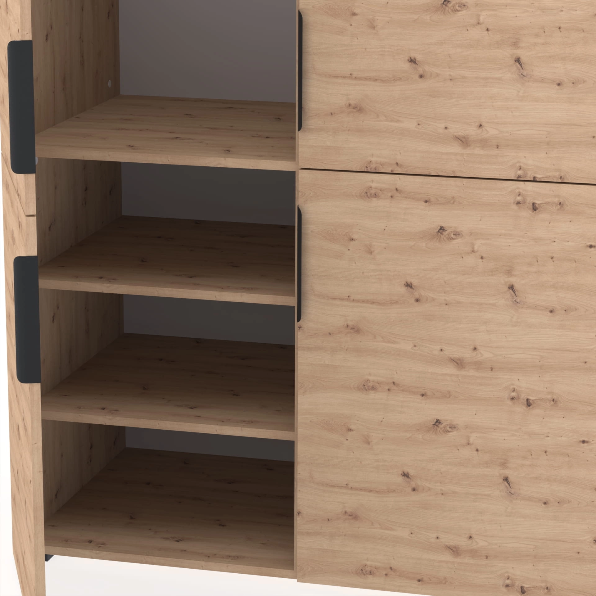 Korpus i fronty: płyta laminowana o grubości 18 mm w dekorze Dąb Artisan