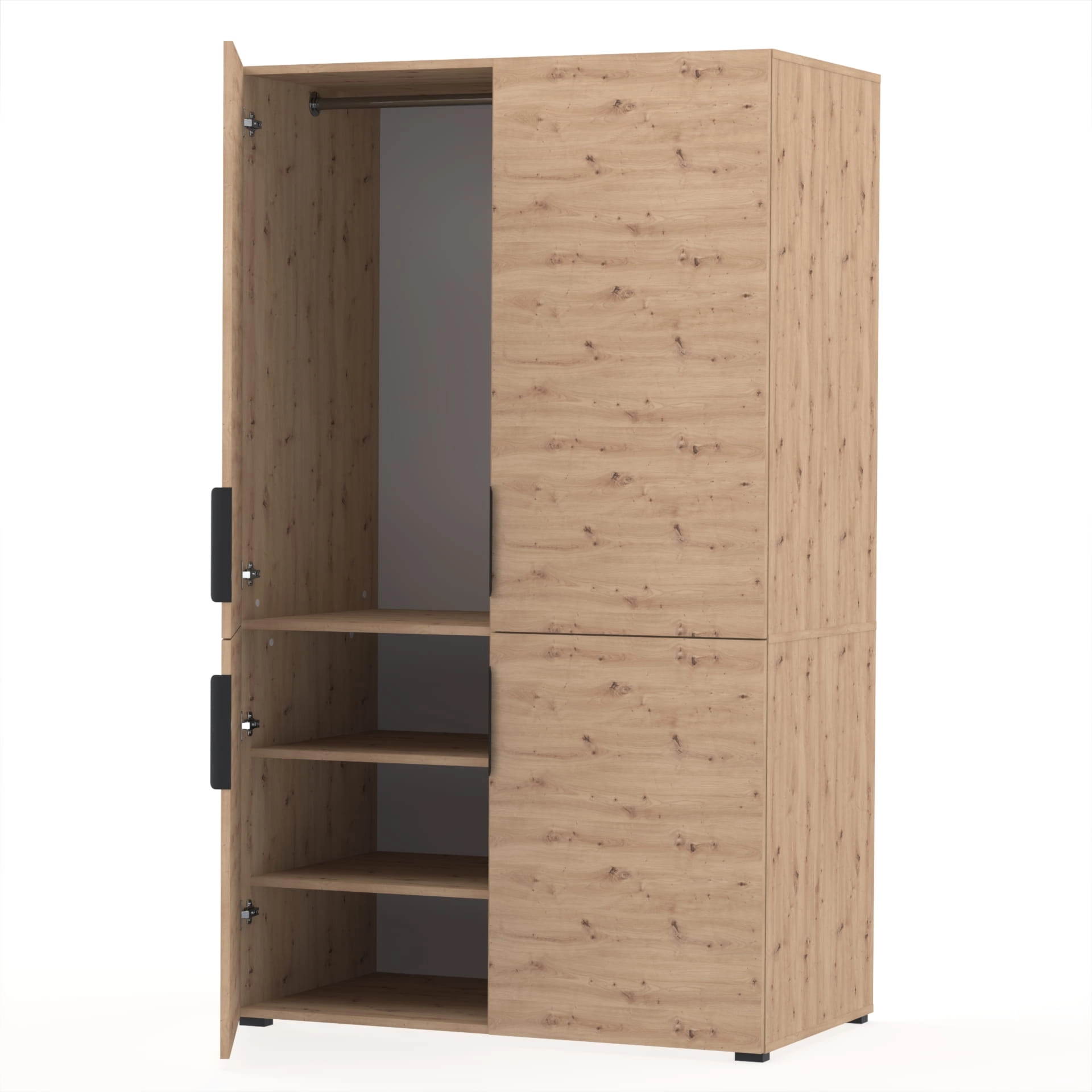 Szafa Silva została zaprojektowana z myślą o maksymalnym wykorzystaniu przestrzeni. Dzięki praktycznemu podziałowi na część z drążkiem i półkami, łatwo zorganizujesz zarówno ubrania wiszące, jak i złożone.