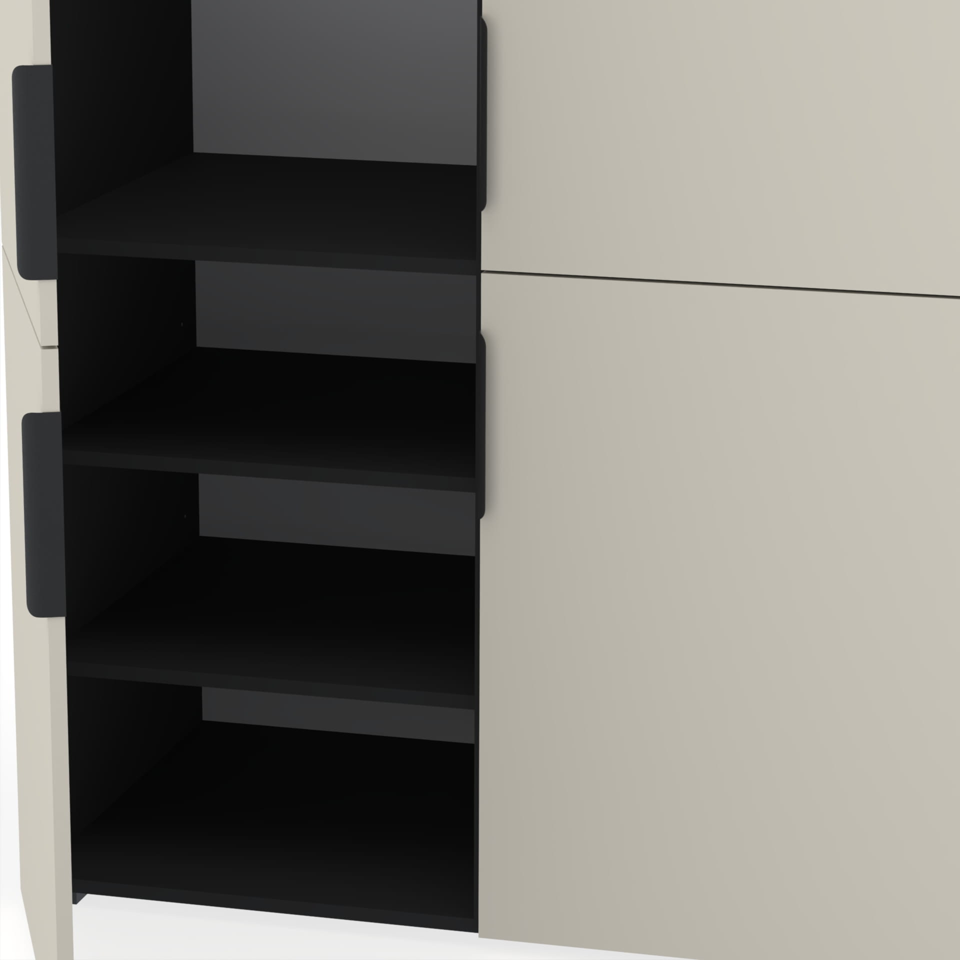 Dolna część: cztery pojemne półki z możliwością regulacji wysokości