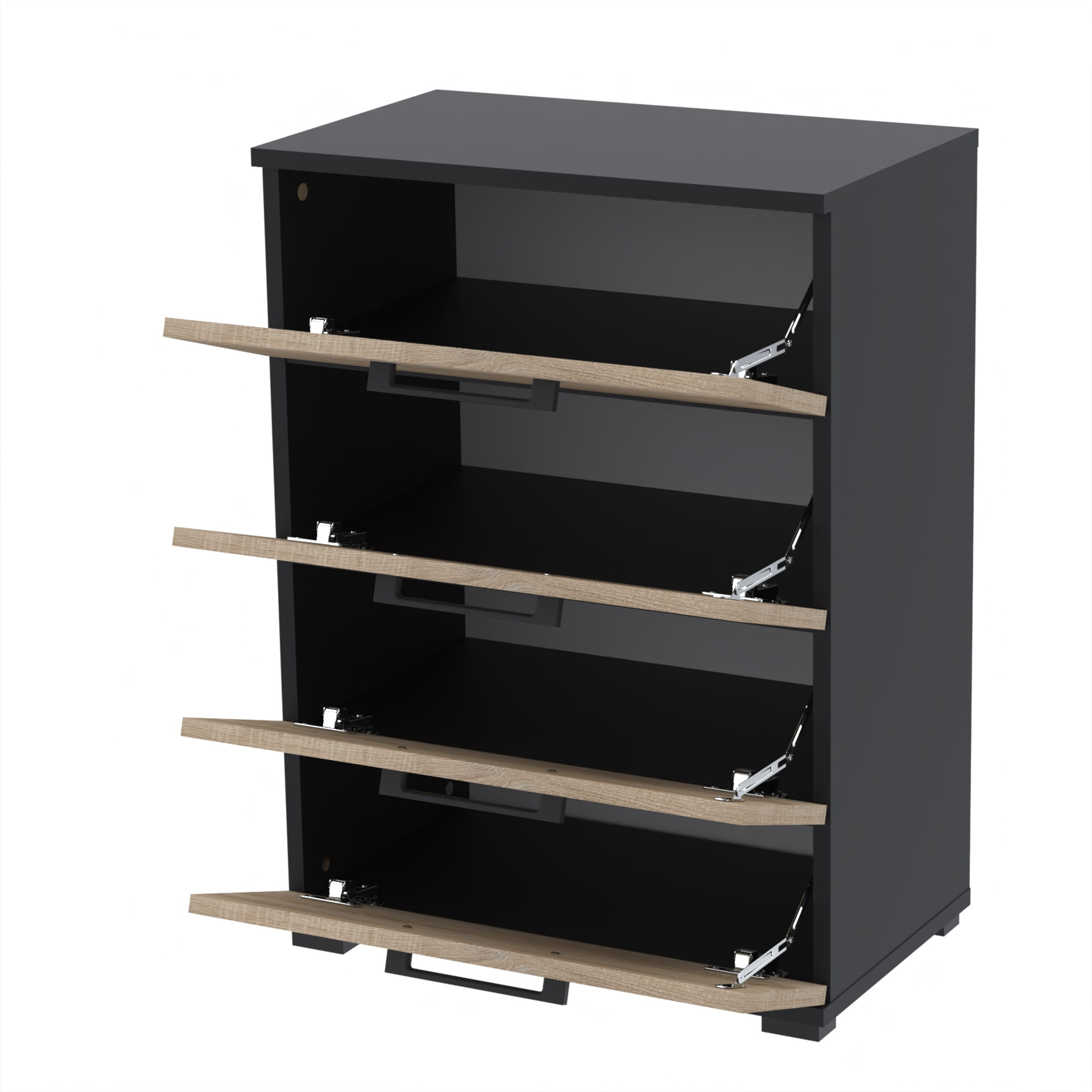 - Pojemność i Praktyczność: Wyposażona w cztery przestronne półki, szafka pomieści dużą liczbę par butów, utrzymując porządek i łatwy dostęp.