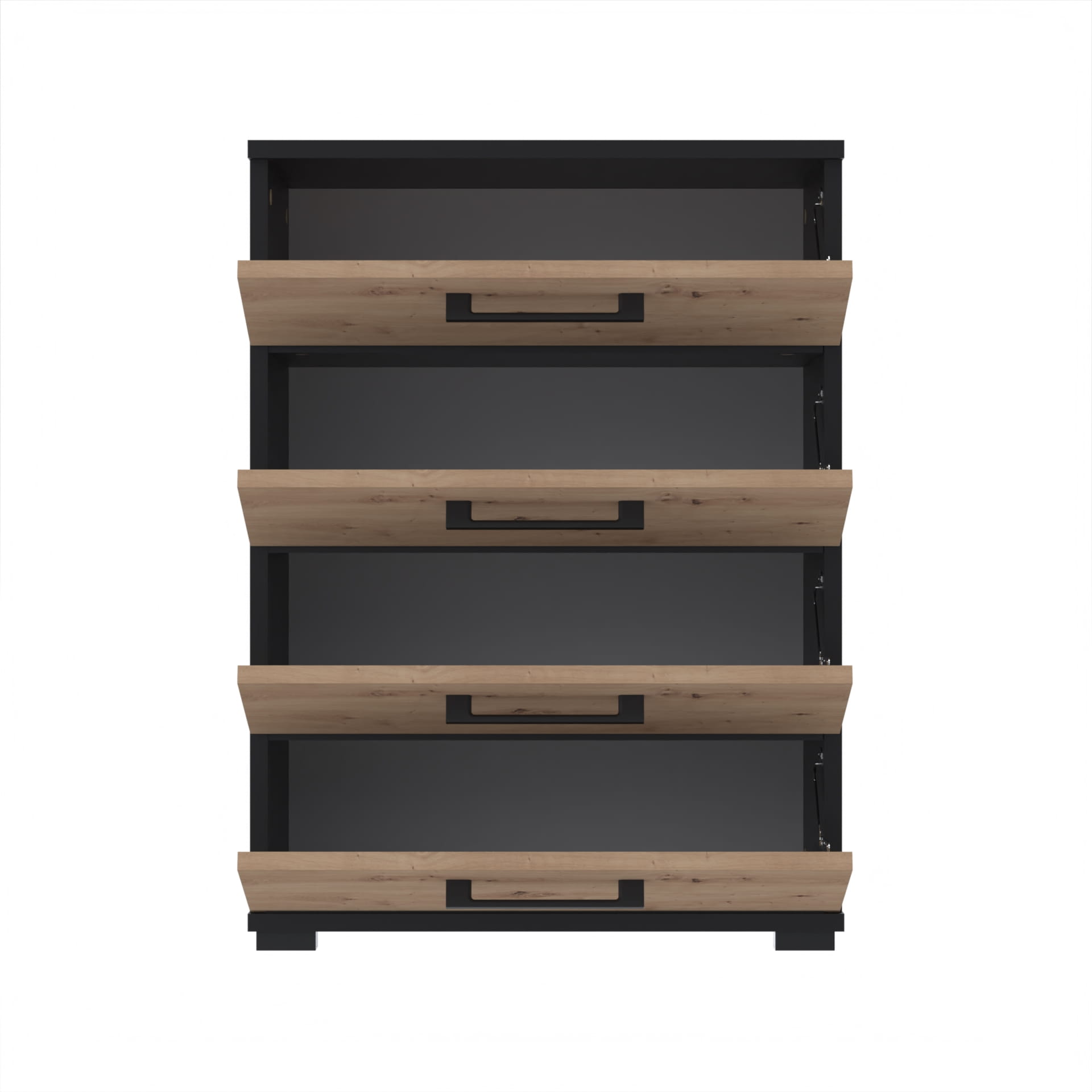 - Pojemność i Praktyczność: Wyposażona w cztery przestronne półki, szafka pomieści dużą liczbę par butów, utrzymując porządek i łatwy dostęp.