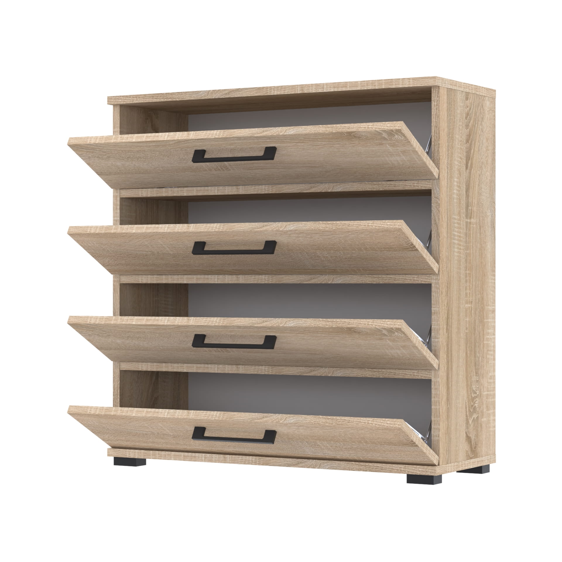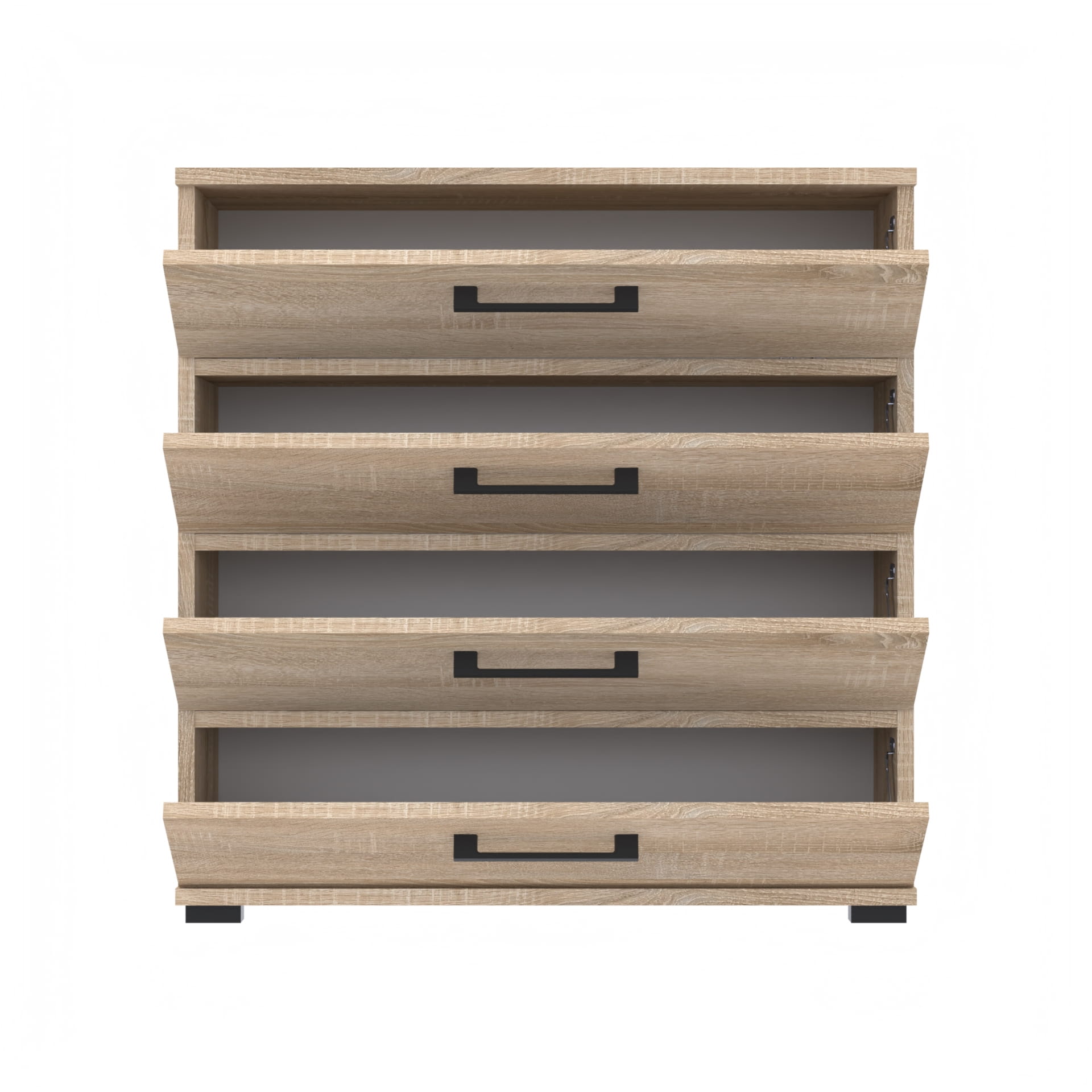 - Pojemność i Praktyczność: Wyposażona w cztery przestronne półki, szafka pomieści dużą liczbę par butów, utrzymując porządek i łatwy dostęp.