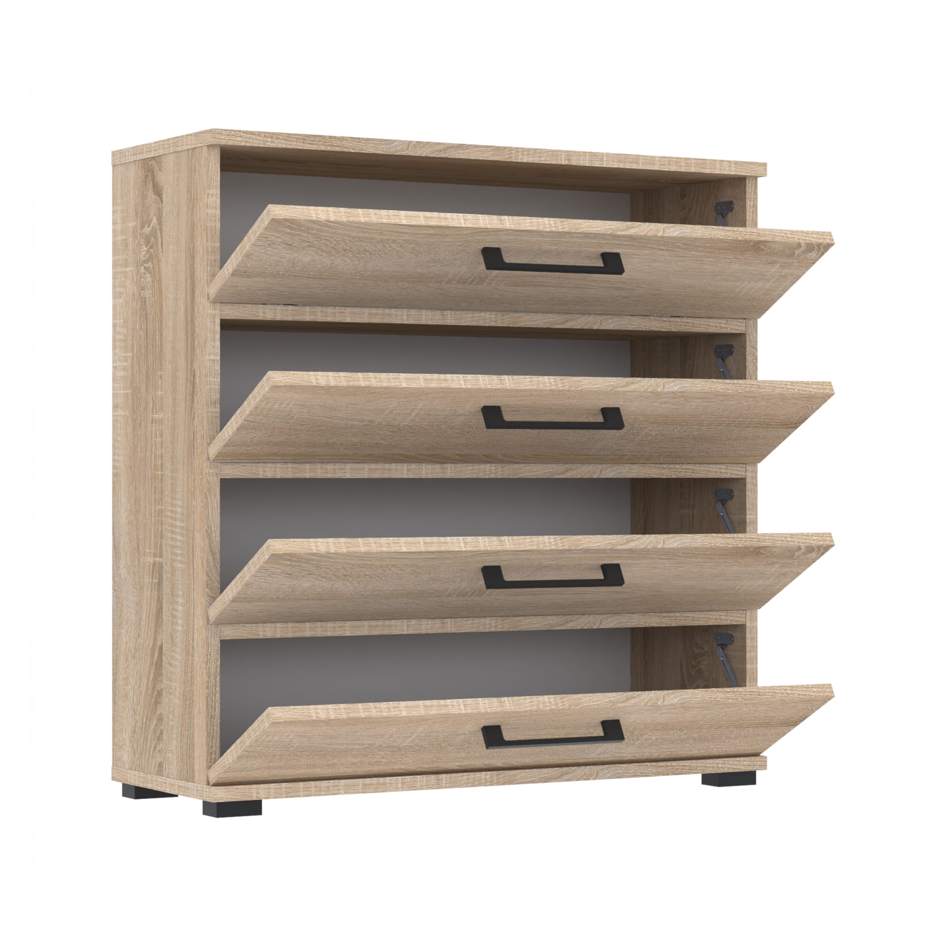 - Pojemność i Praktyczność: Wyposażona w cztery przestronne półki, szafka pomieści dużą liczbę par butów, utrzymując porządek i łatwy dostęp.