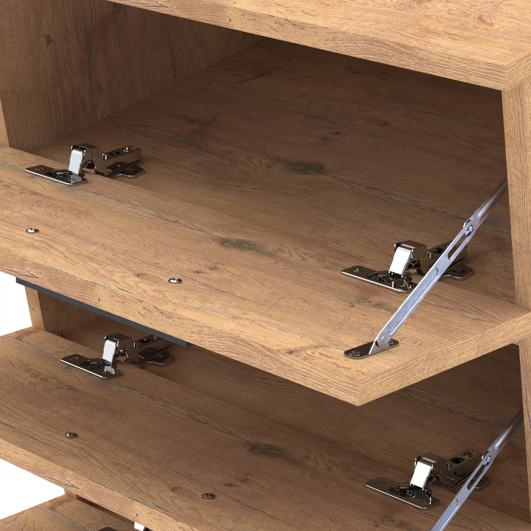 Szafka na buty "Altus" to praktyczny i stylowy element wyposażenia, doskonały do przechowywania obuwia. Wykonana z 18mm płyty meblowej, co zapewnia jej solidność i trwałość. Twarde obrzeże ABS zwiększa odporność na codzienne użytkowanie, a metalowe uchwyty i zawiasy, w tym zawiasy nożycowe, dodają szafce eleganckiego wyglądu, jednocześnie gwarantując jej bezproblemowe działanie.