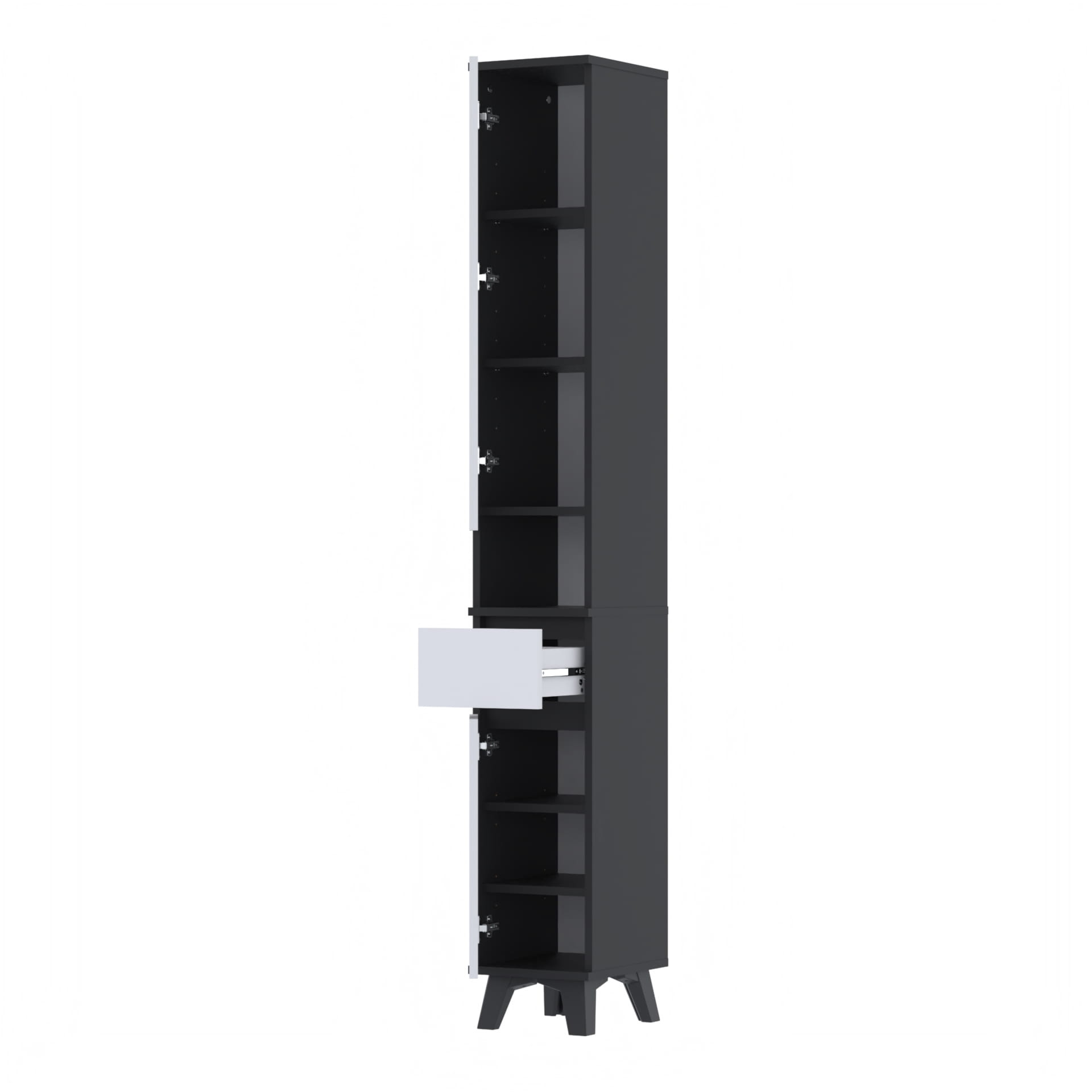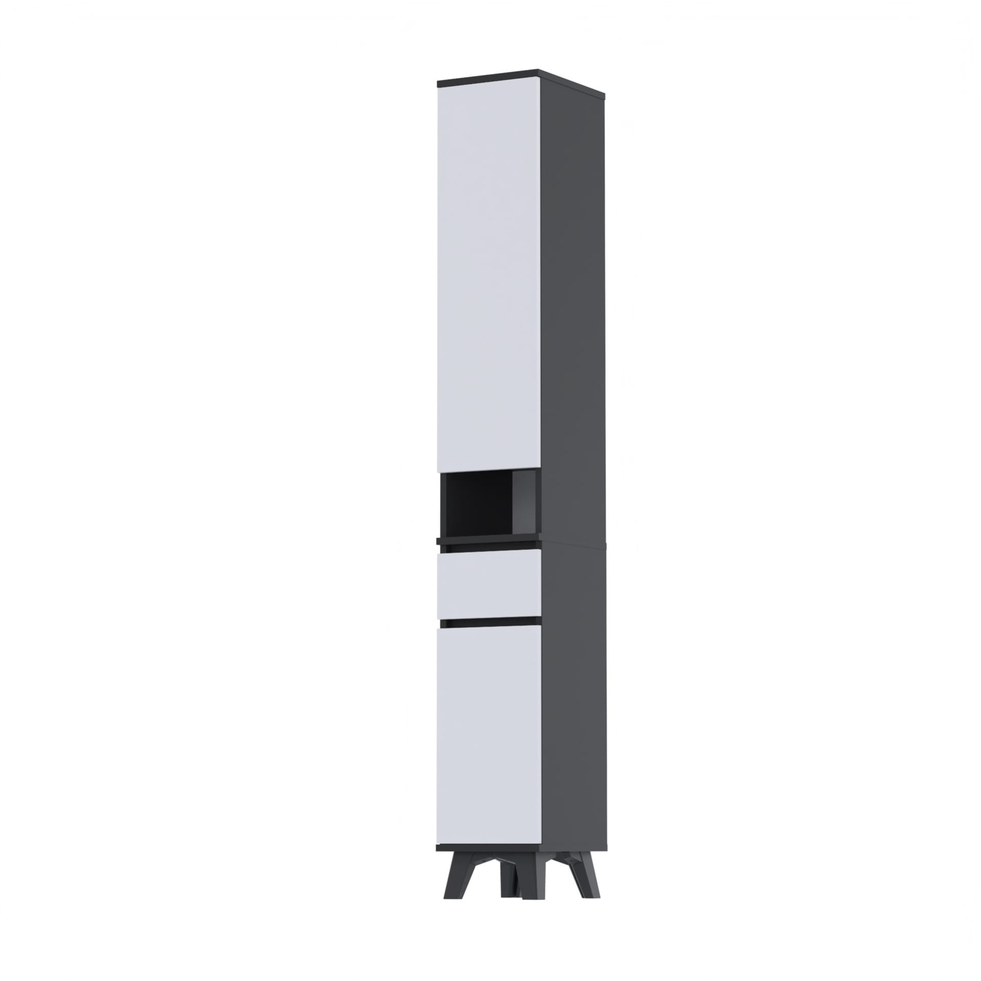 Szafa składa się z dwóch części. W dolnej części znajduje się szafka z 3 poziomami oraz szuflada TRES. Górna część - nadstawka posiada szafkę z czterema poziomami oraz otwartą półkę. Górna część nakłada się na dolną, tak by stanowiły całość.