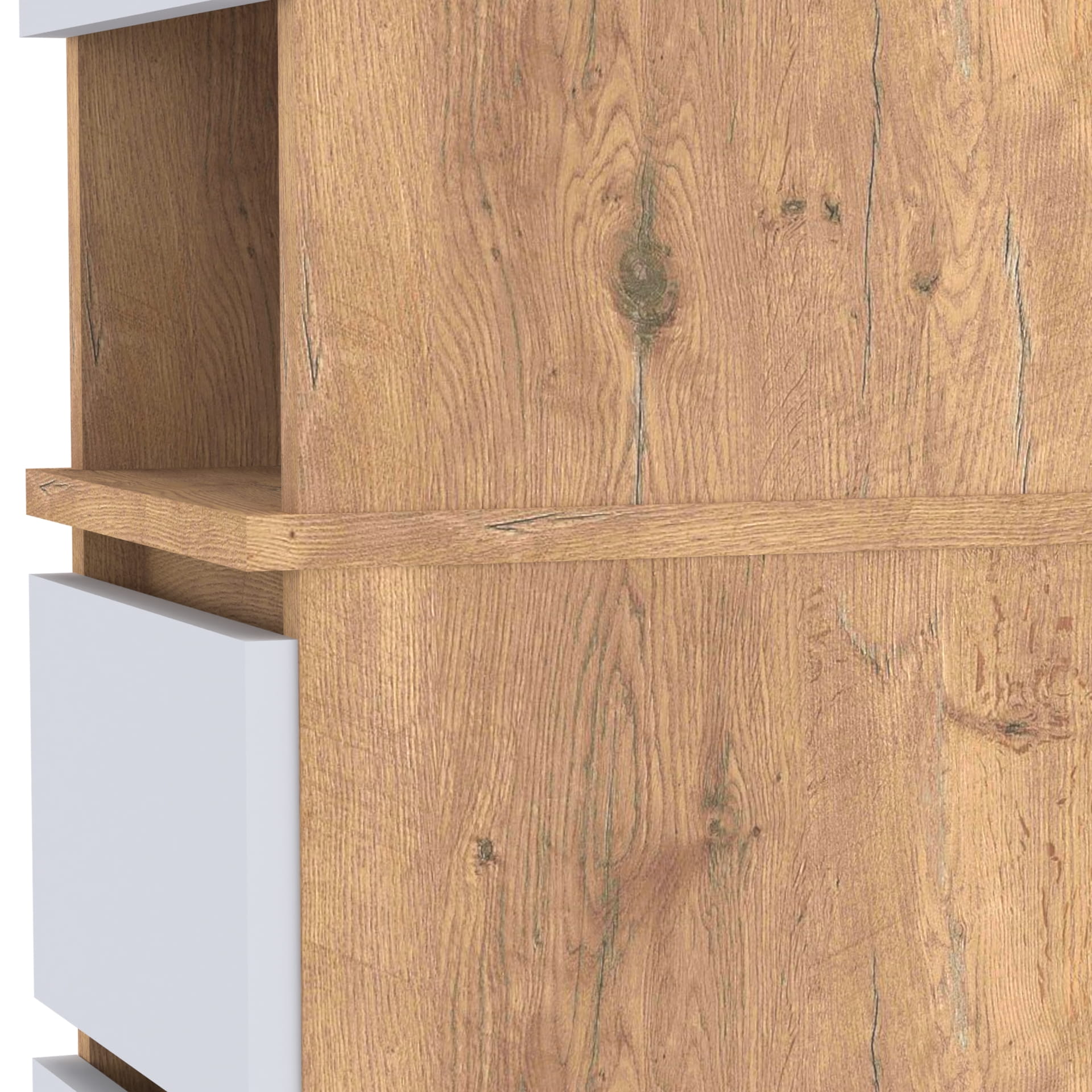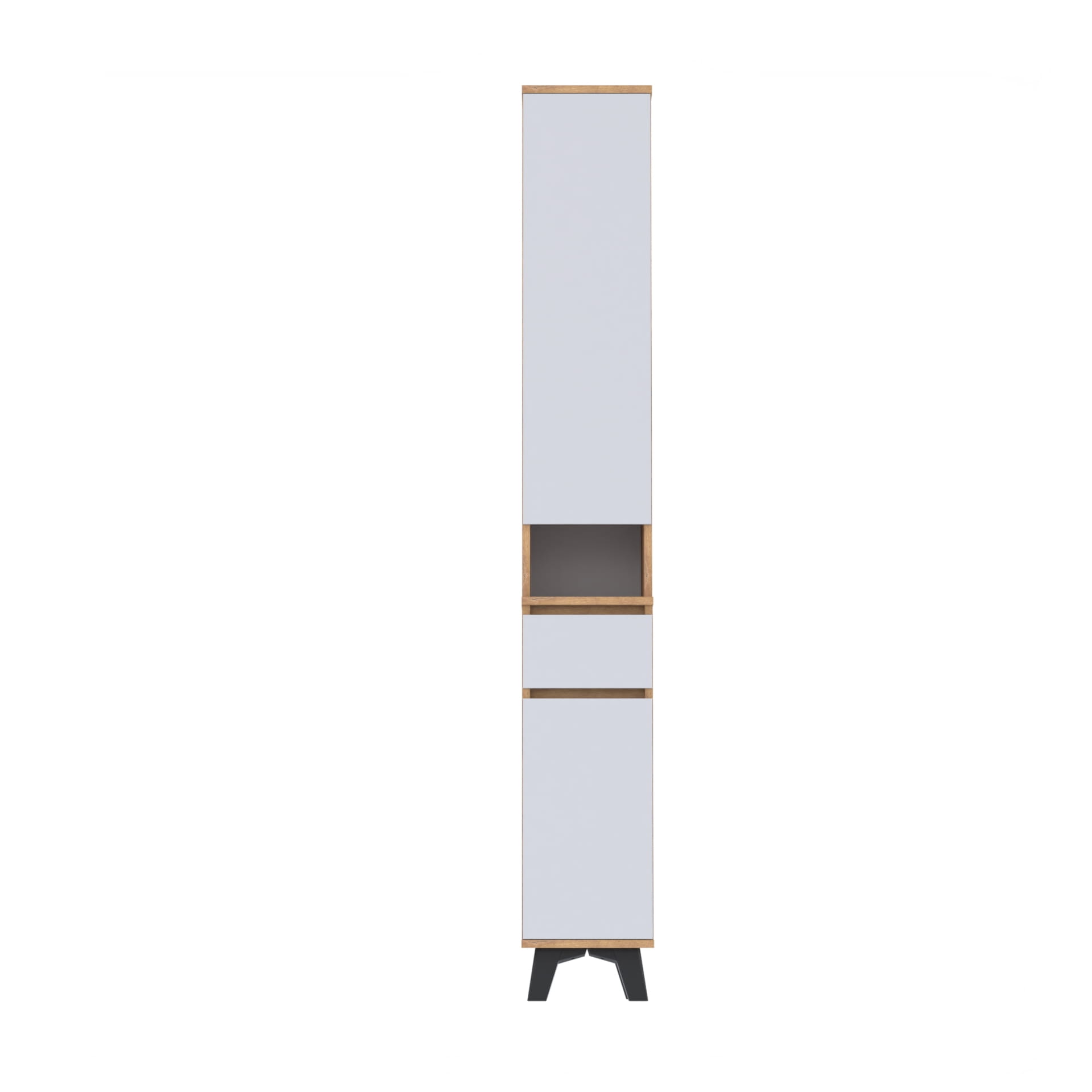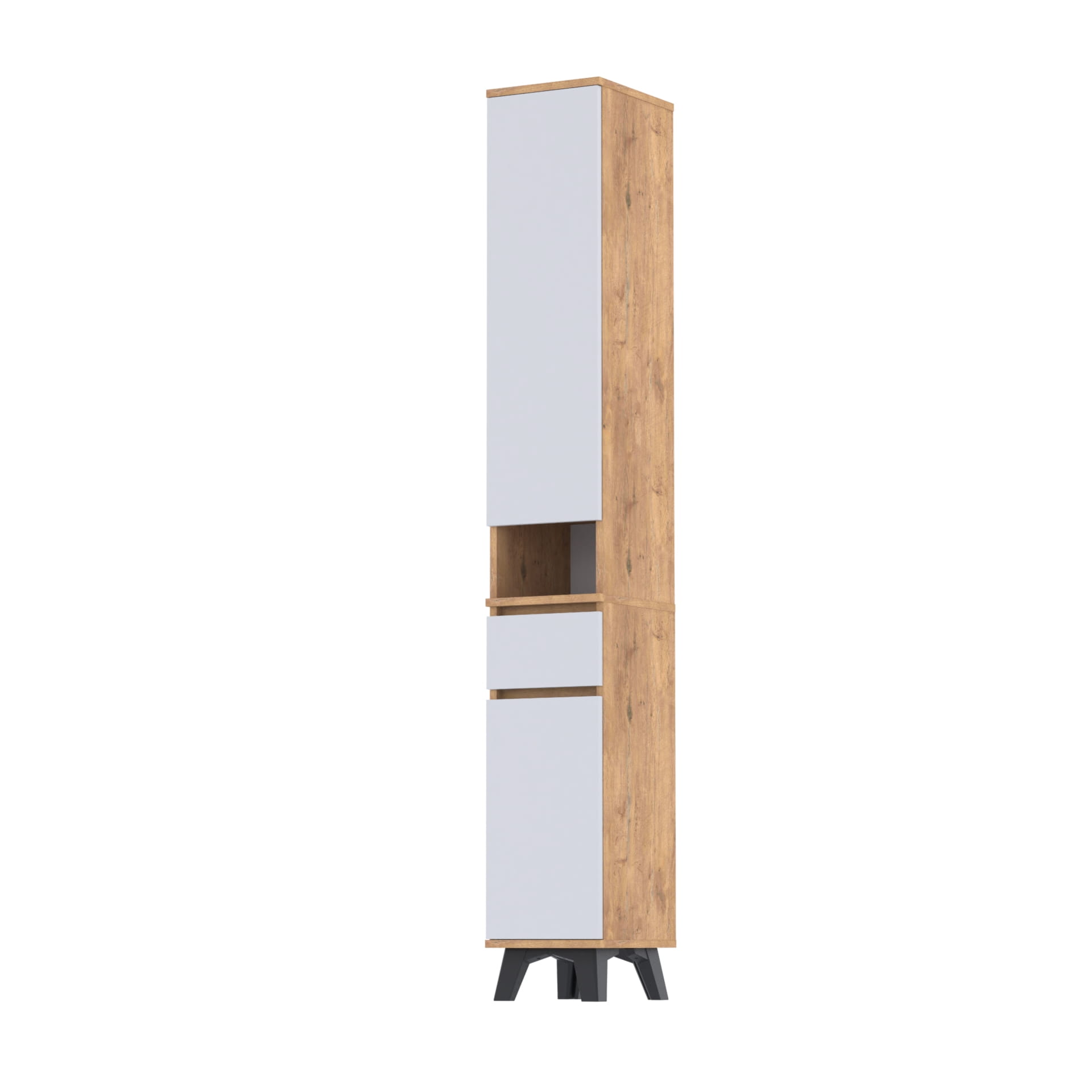 Szafa składa się z dwóch części. W dolnej części znajduje się szafka z 3 poziomami oraz szuflada TRES. Górna część - nadstawka posiada szafkę z czterema poziomami oraz otwartą półkę. Górna część nakłada się na dolną, tak by stanowiły całość.
